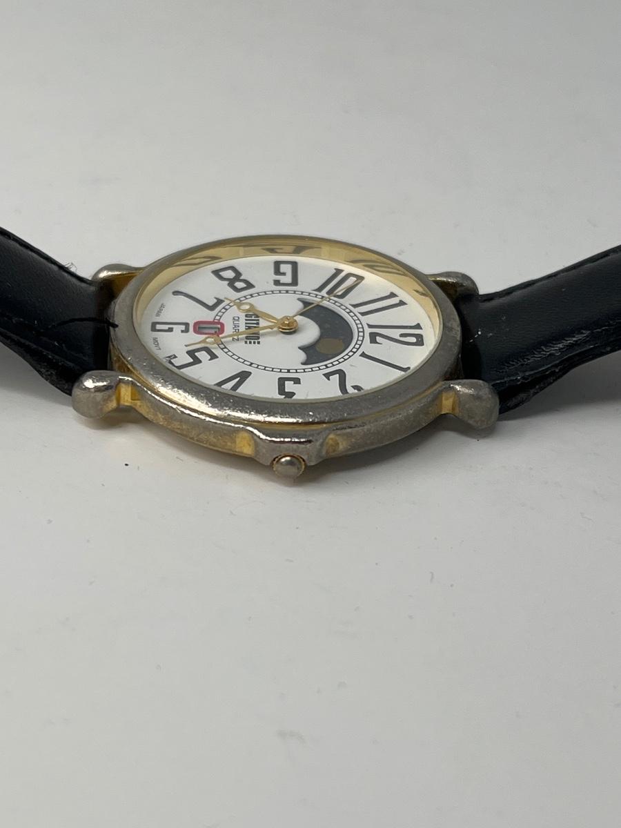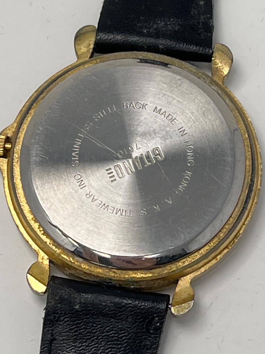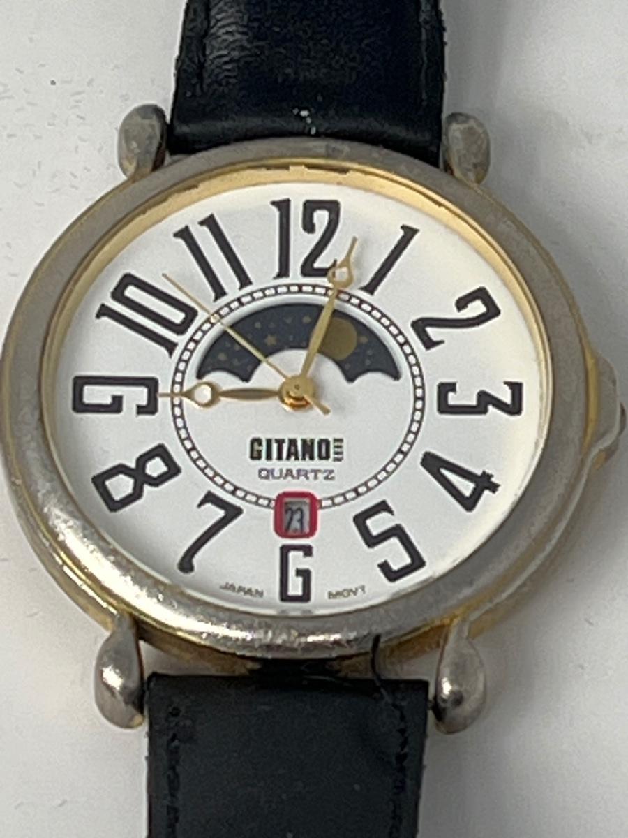 Gitano watch made in Hong Kong. Has Japanese movement. Quartz - needs new battery. Hands and date adjustment function properly. Has a second hand. Bezel is worn. Genuine leather strap.
