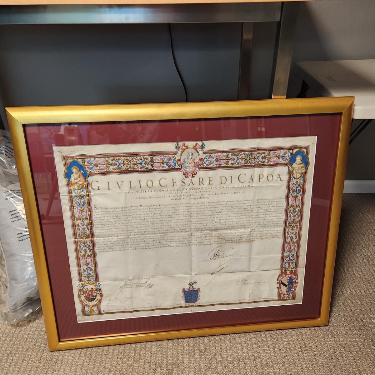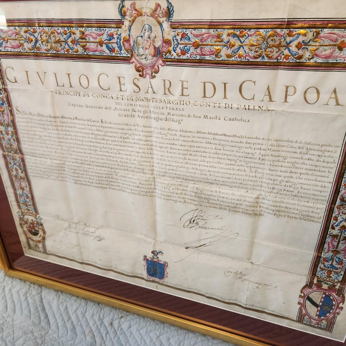 Manuscript Illuminated 1513 Elaborately Framed Giulio Cesare DiCapoa 37x31
