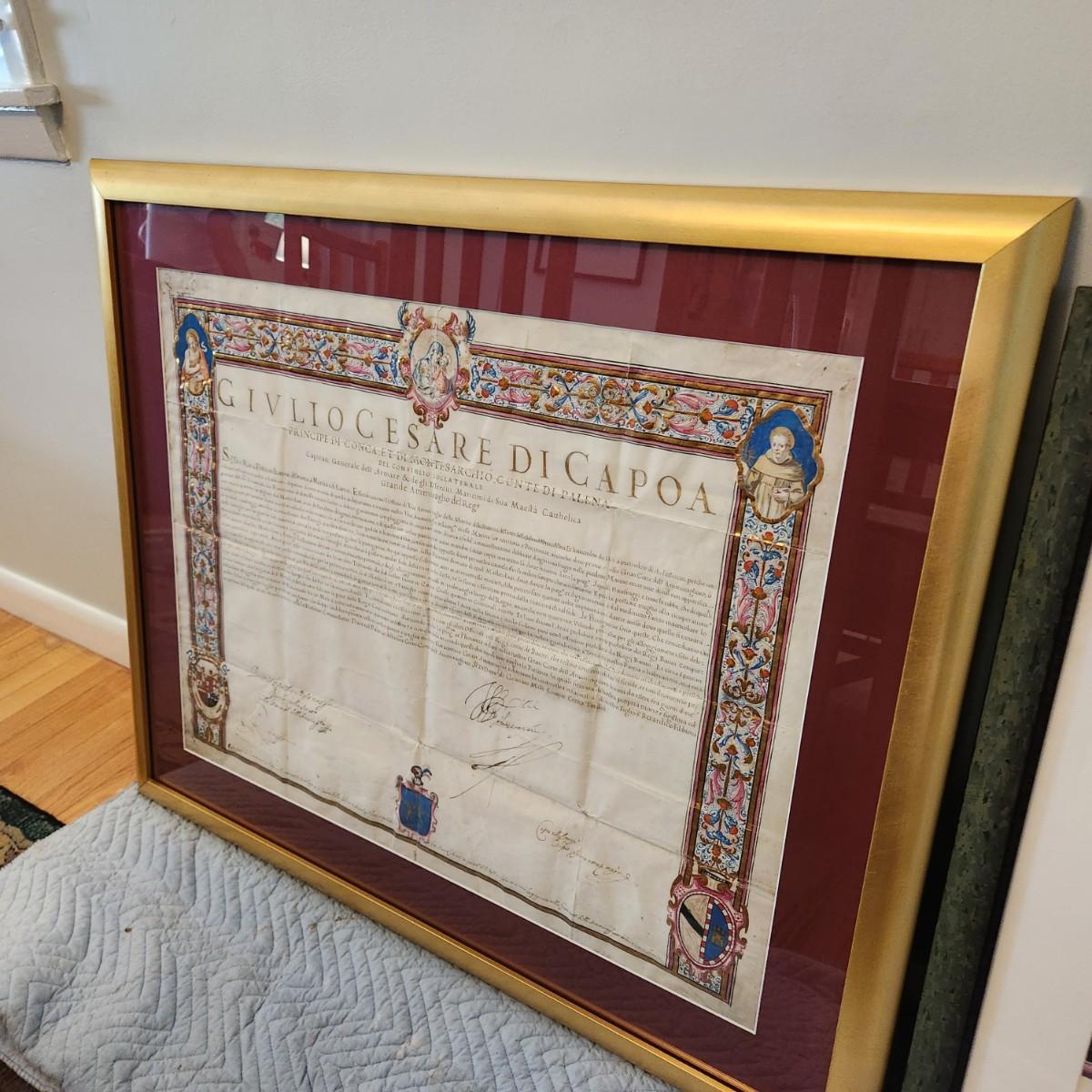 Manuscript Illuminated 1513  Elaborately Framed Giulio Cesare DiCapoa  37x31