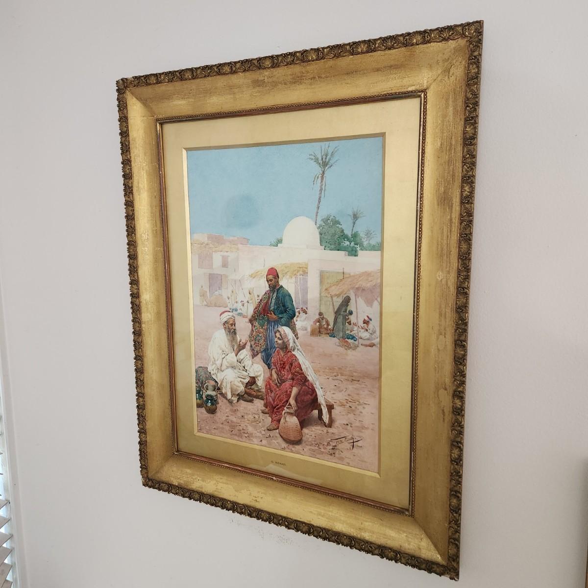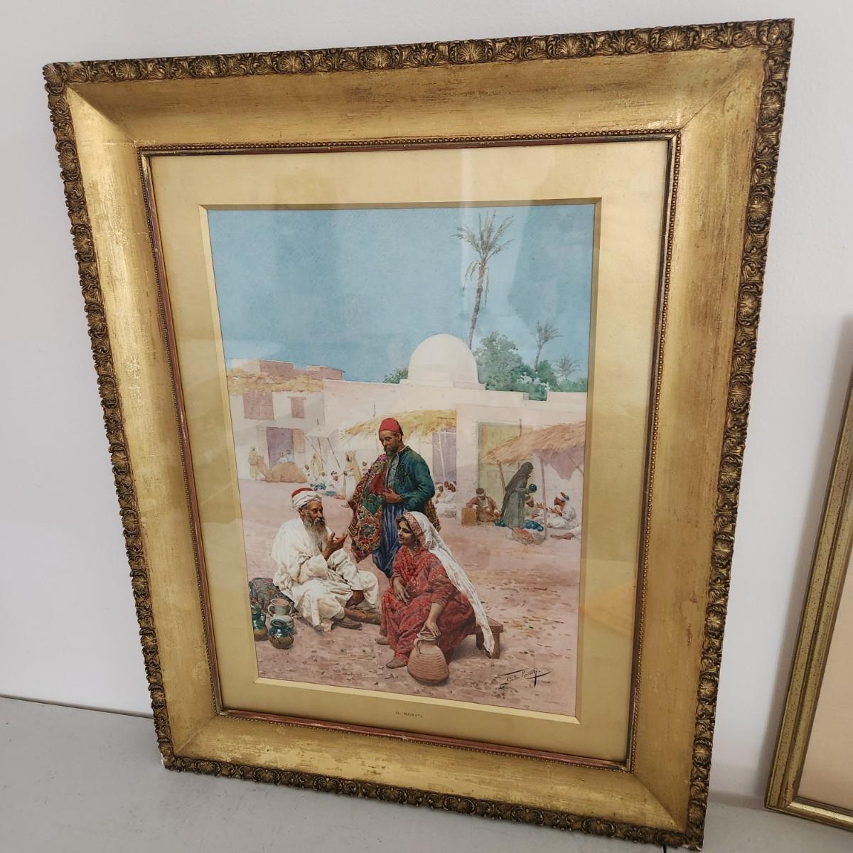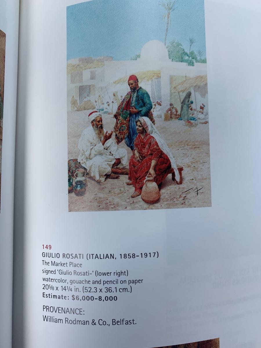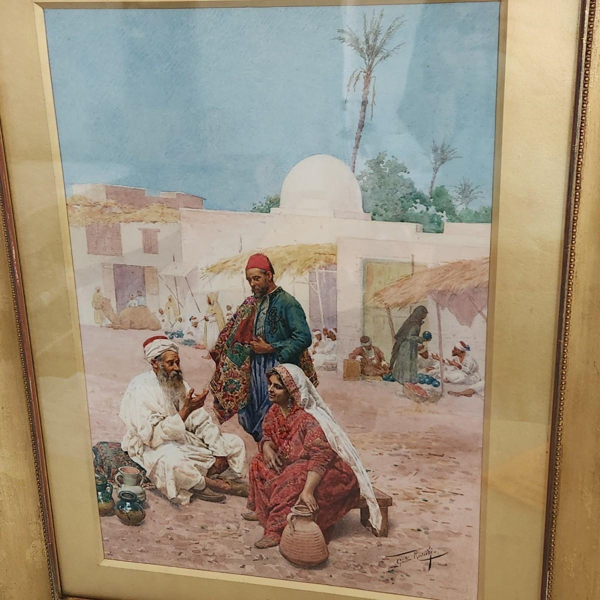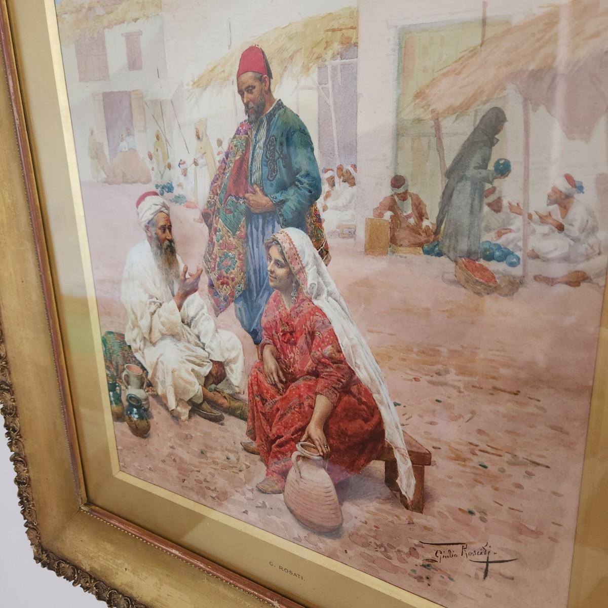 Signed Giulio Rosati 1858-1917 The Market Place Watercolor Gouache & Pencil on Paper