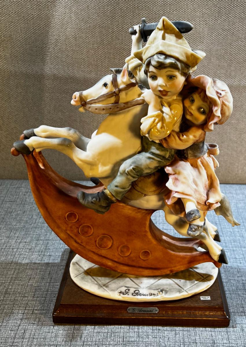 Giuseppe Armani Sculpture of Children on a Rocking Horse