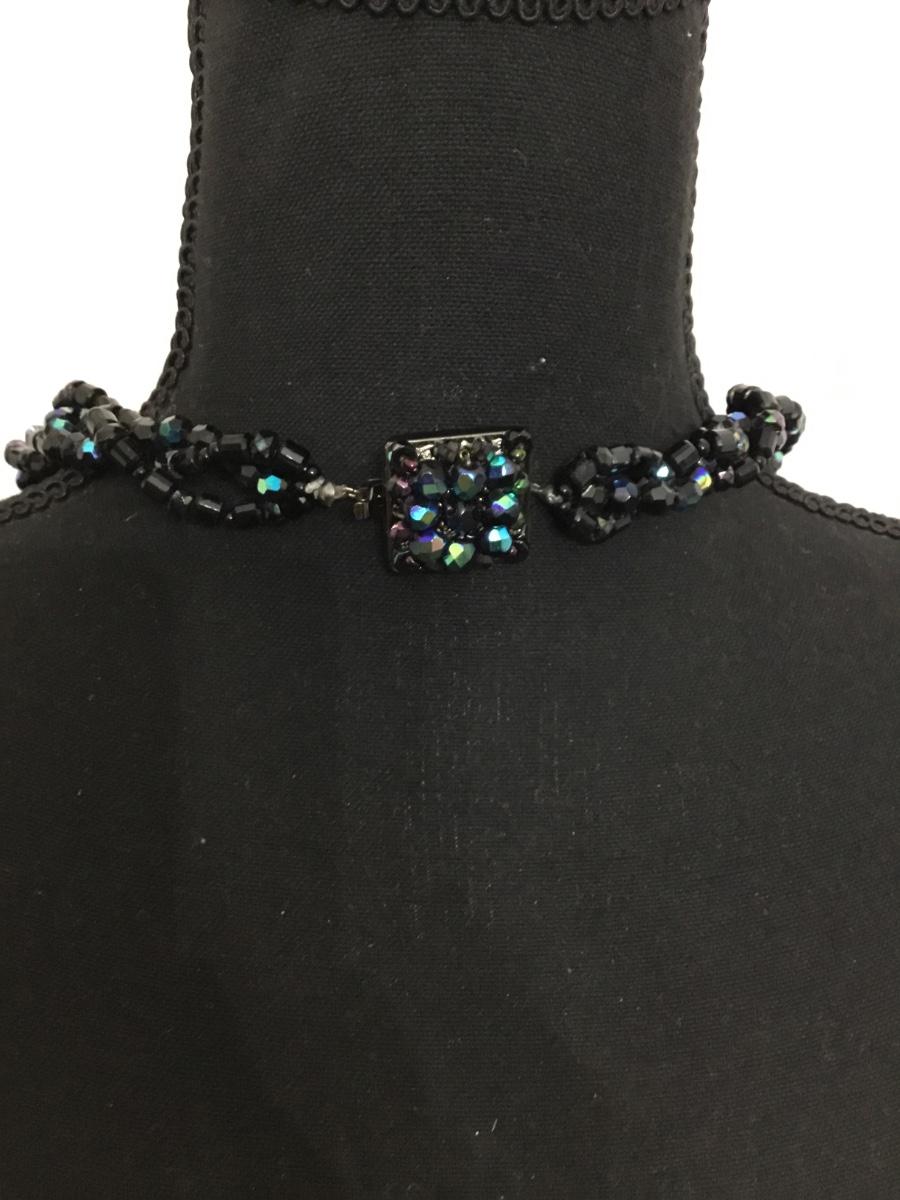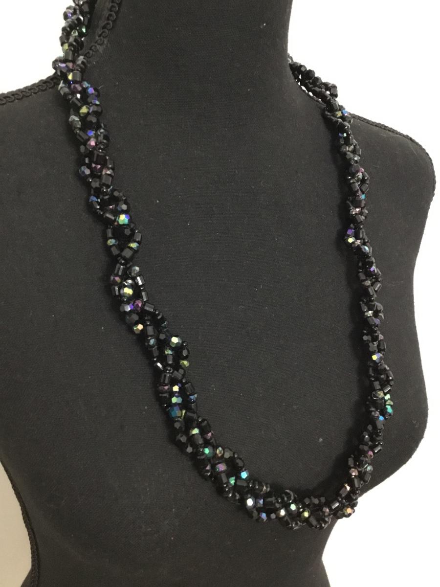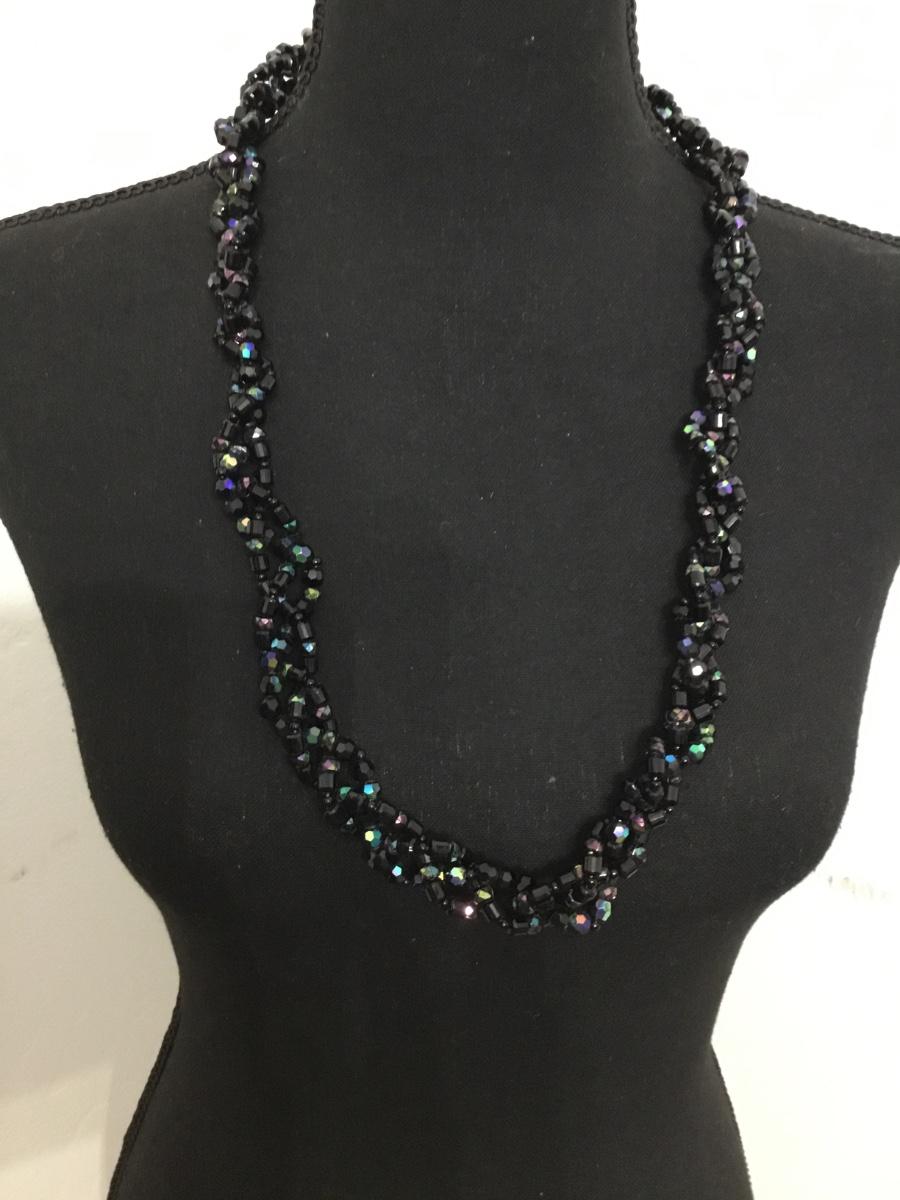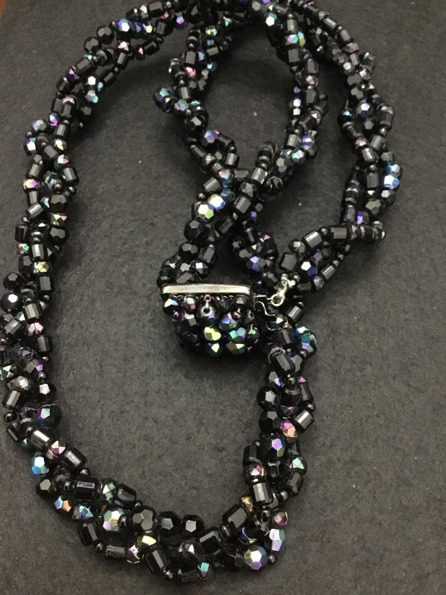 Givenchy vintage, black glass, multi strand, braided statement, necklace