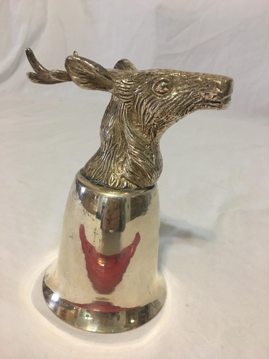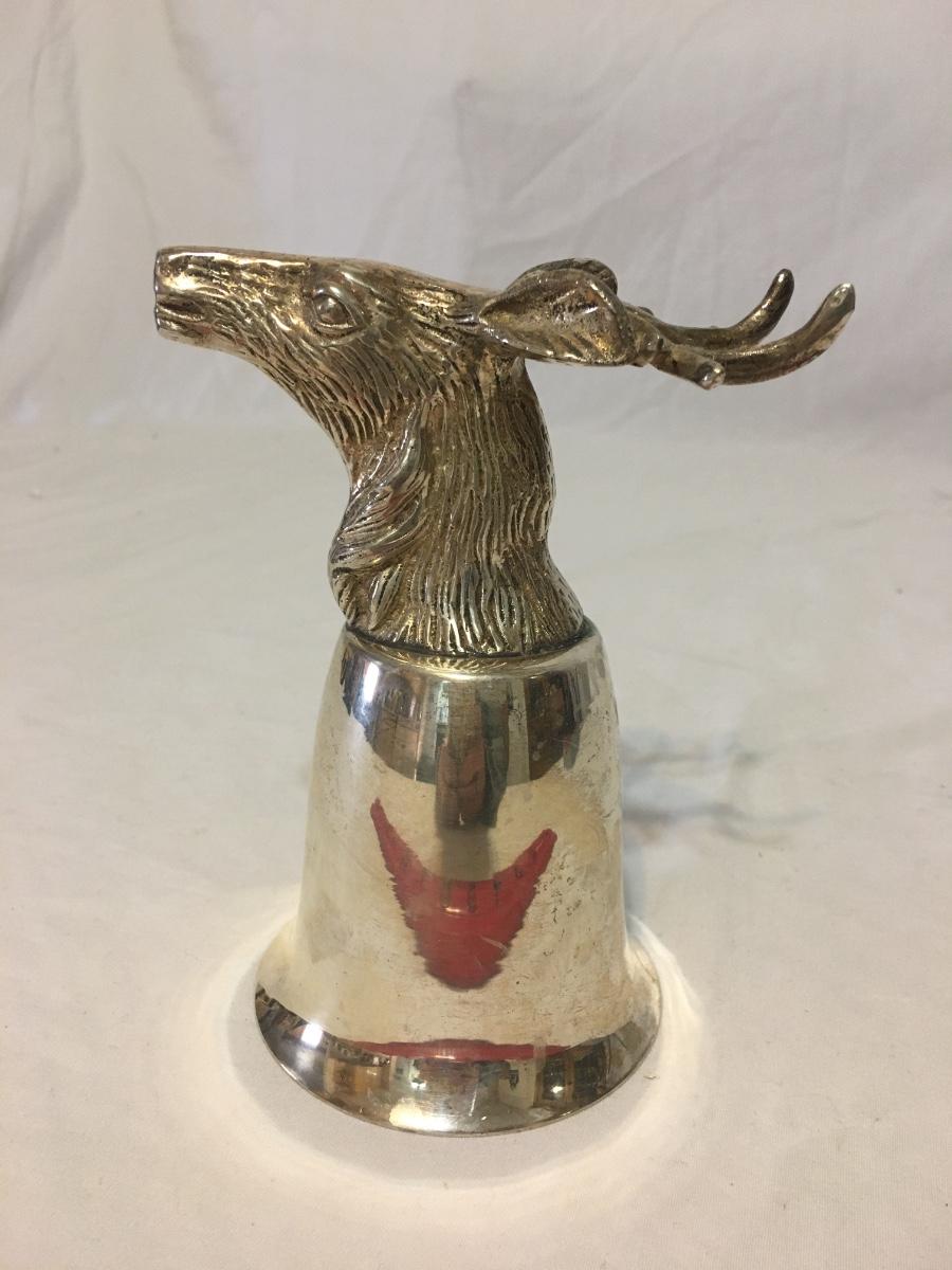 VINTAGE silver/BRASS DEER ELK STAG HEAD STIRRUP CUP GOBLET, 5 3/4"H, head 4" rim 3 1/4"