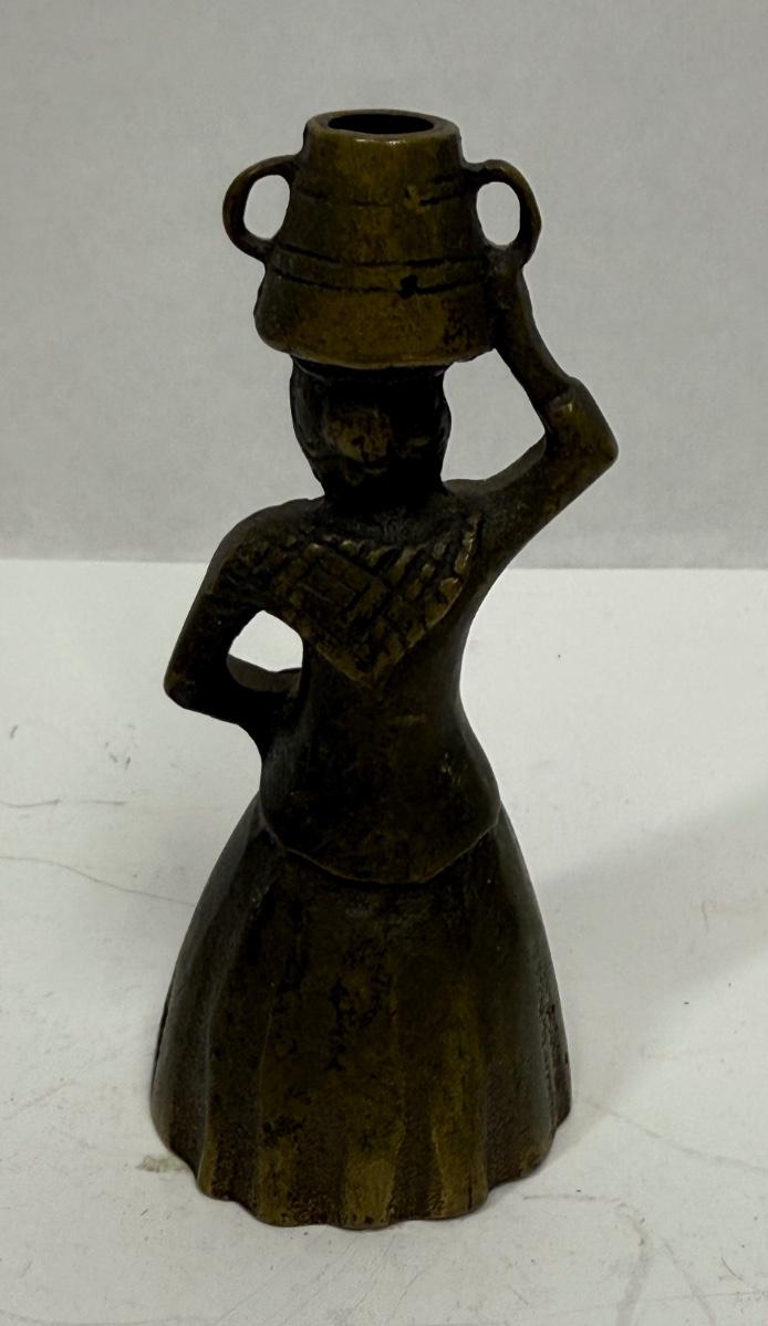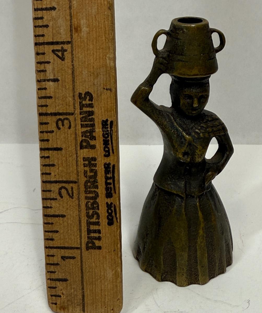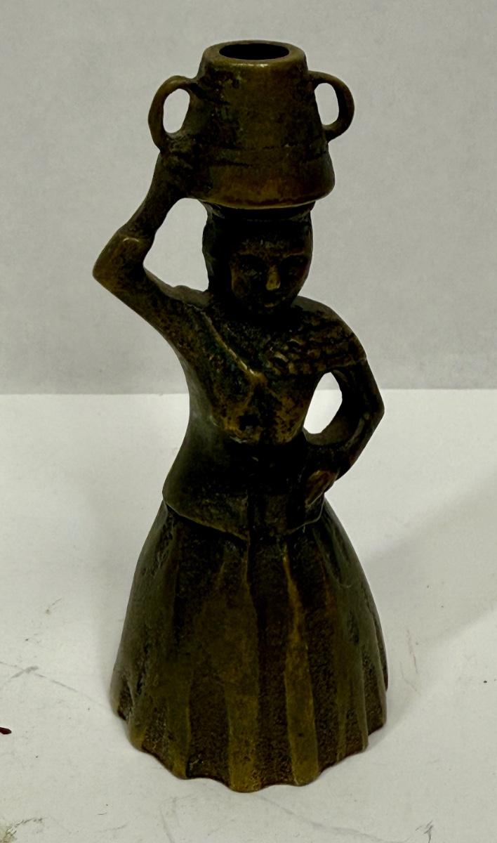Heavy Brass or Bronze Bell Lady with Pail or Bucket on her head.
