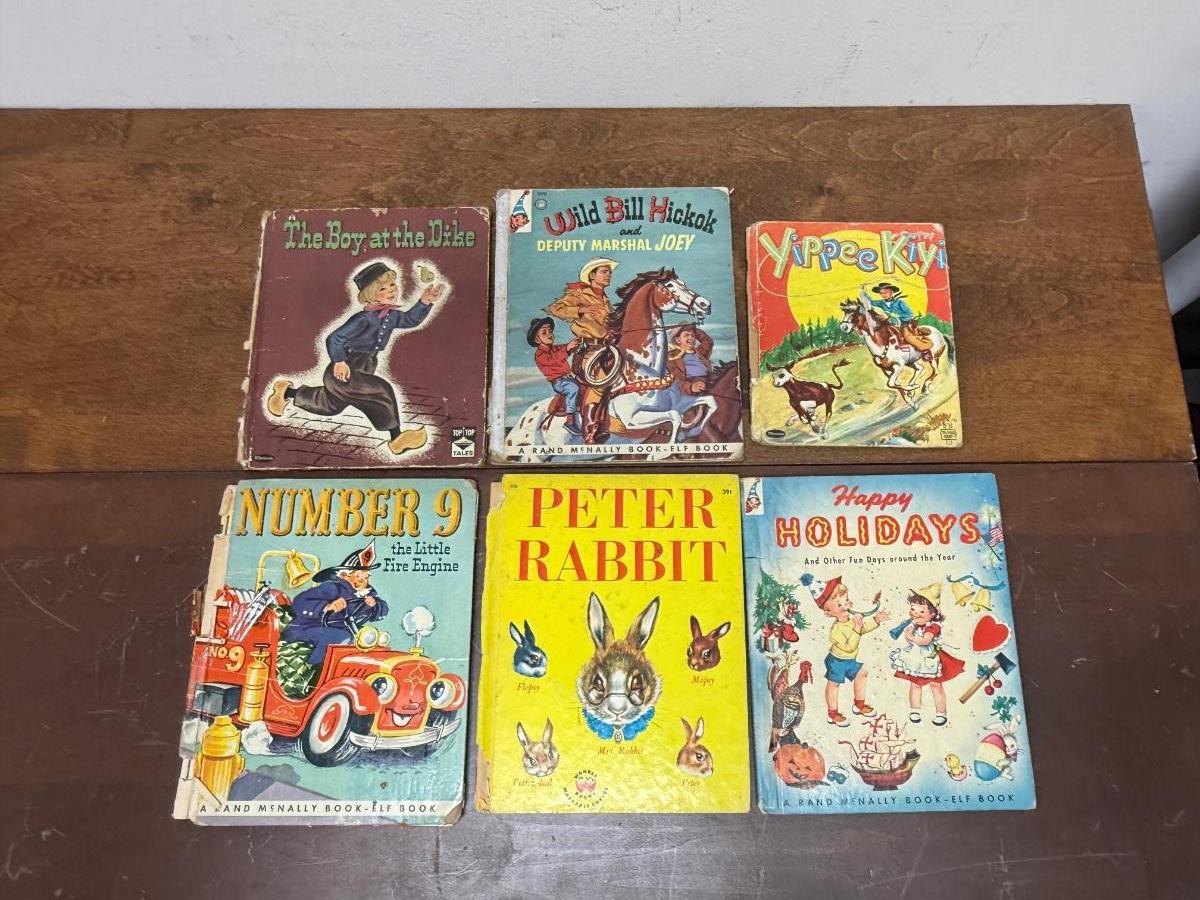 LOT OF 6 VINTAGE CHILDREN'S STORYBOOKS: The Boy at the Dike, Wild Bill Hickok, Yipee Kiyi, Number 0, Petter Rabbit, Happy Holidays