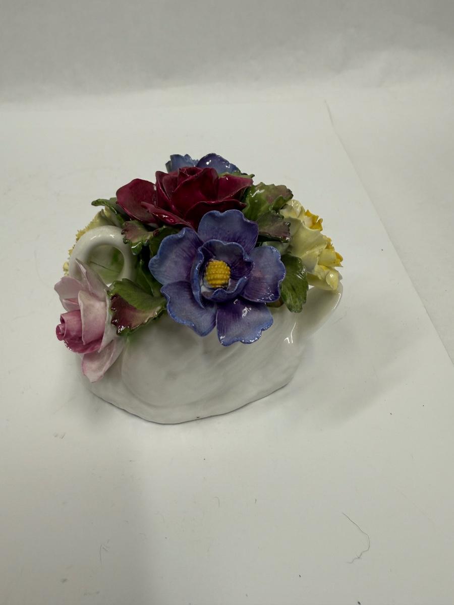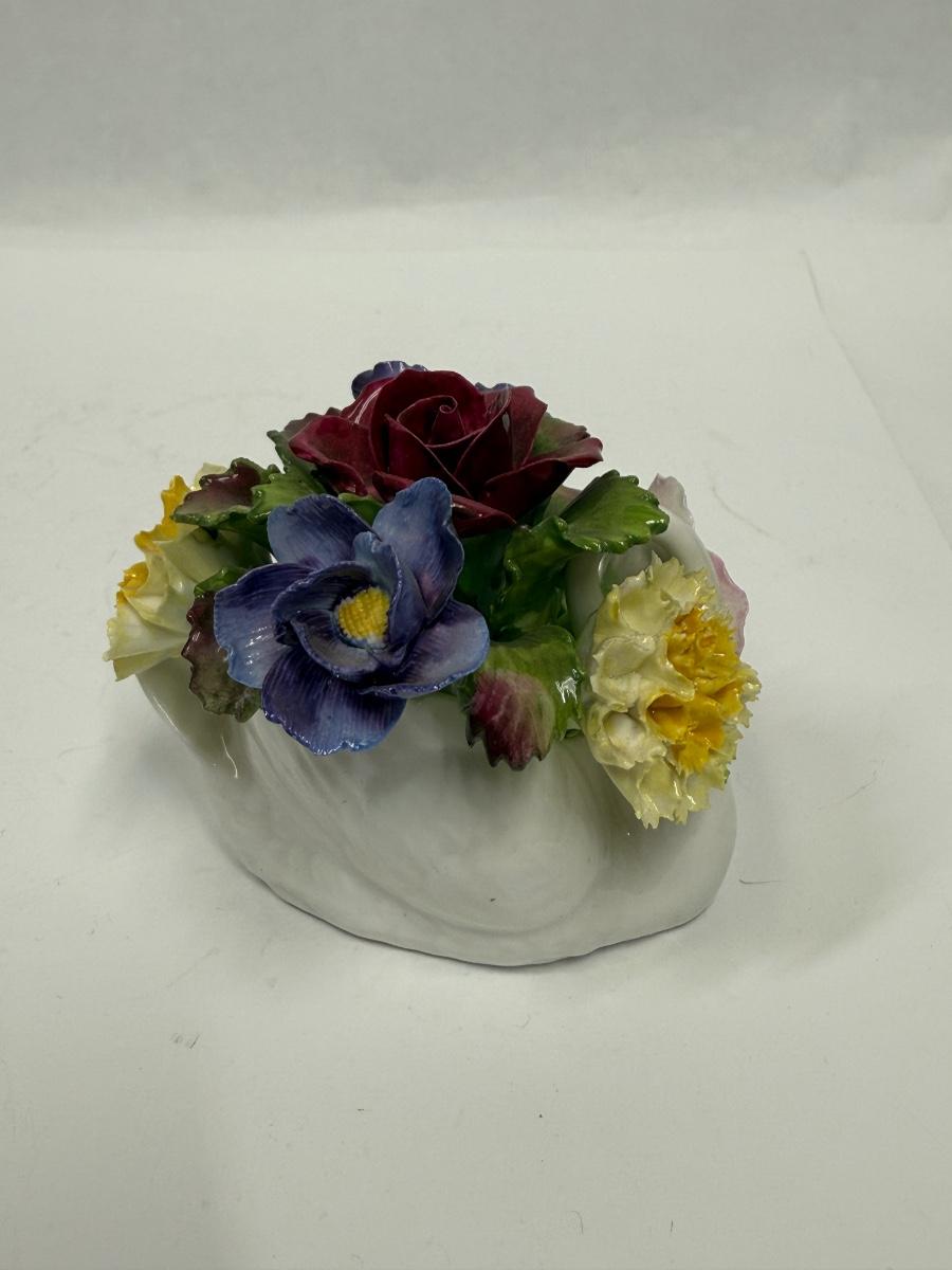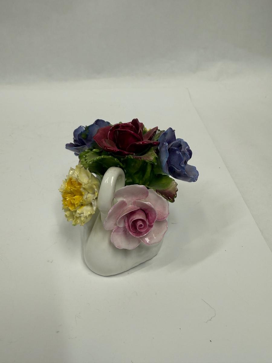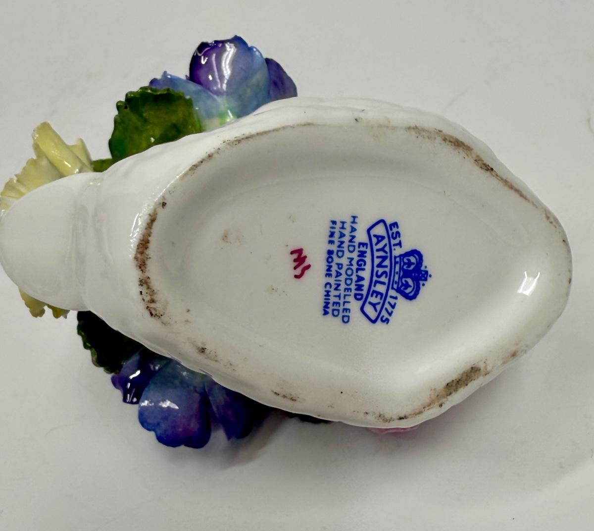 Vintage Aynsley Hand Modeled And Painted Fine Bone China Floral Swan Figurine