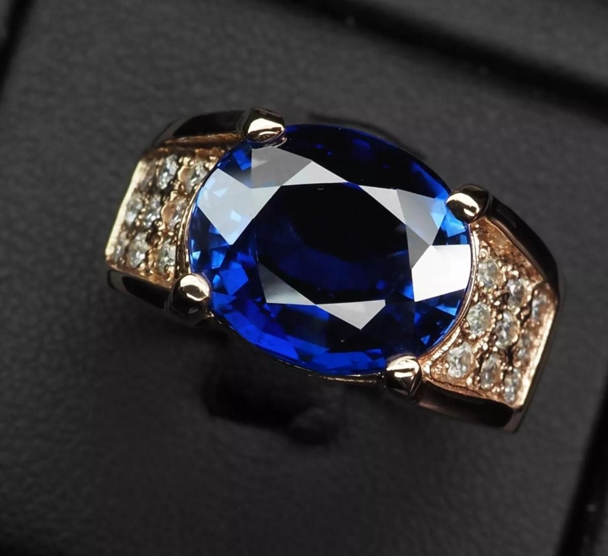 Glamorous Royal Blue Sapphire 9.70Ct 925 Sterling Silver Rose Gold Plated Ring