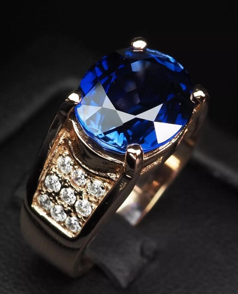 Glamorous Royal Blue Sapphire 9.70Ct 925 Sterling Silver Rose Gold Plated Ring