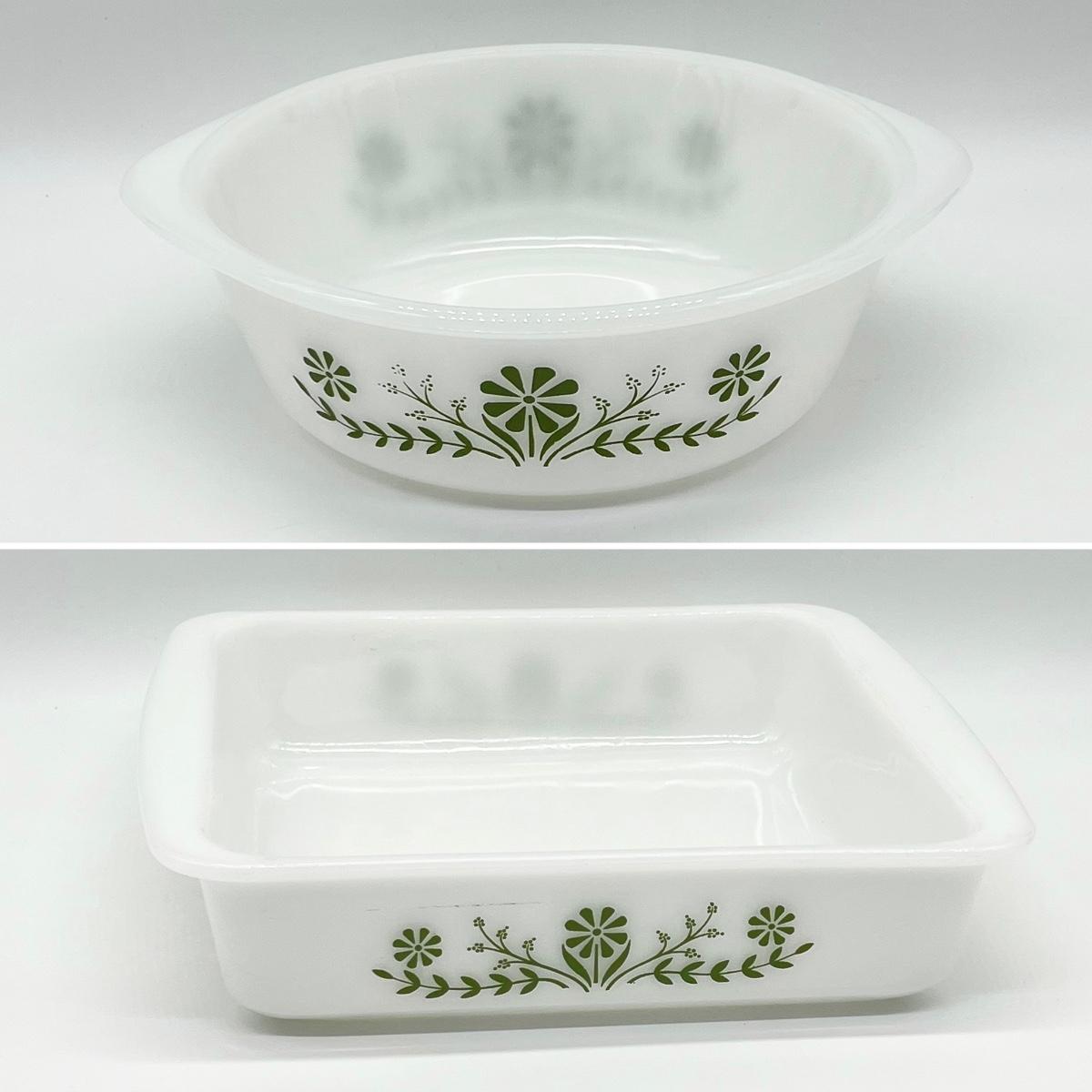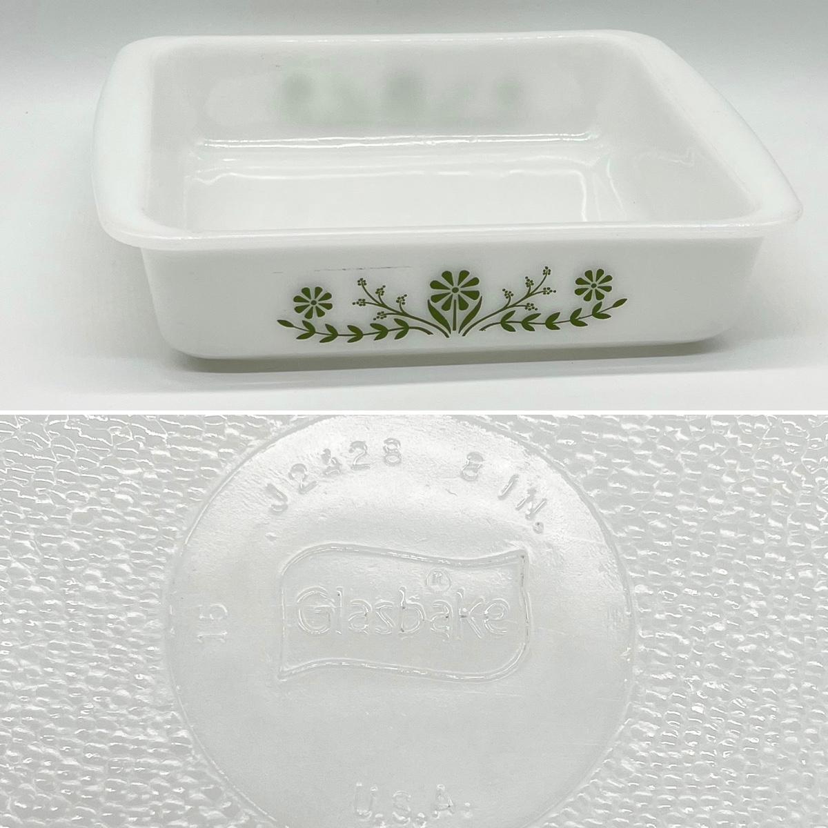 GLASBAKE ~ Green Daisy ~ Pair (2) ~ Casserole Dishes