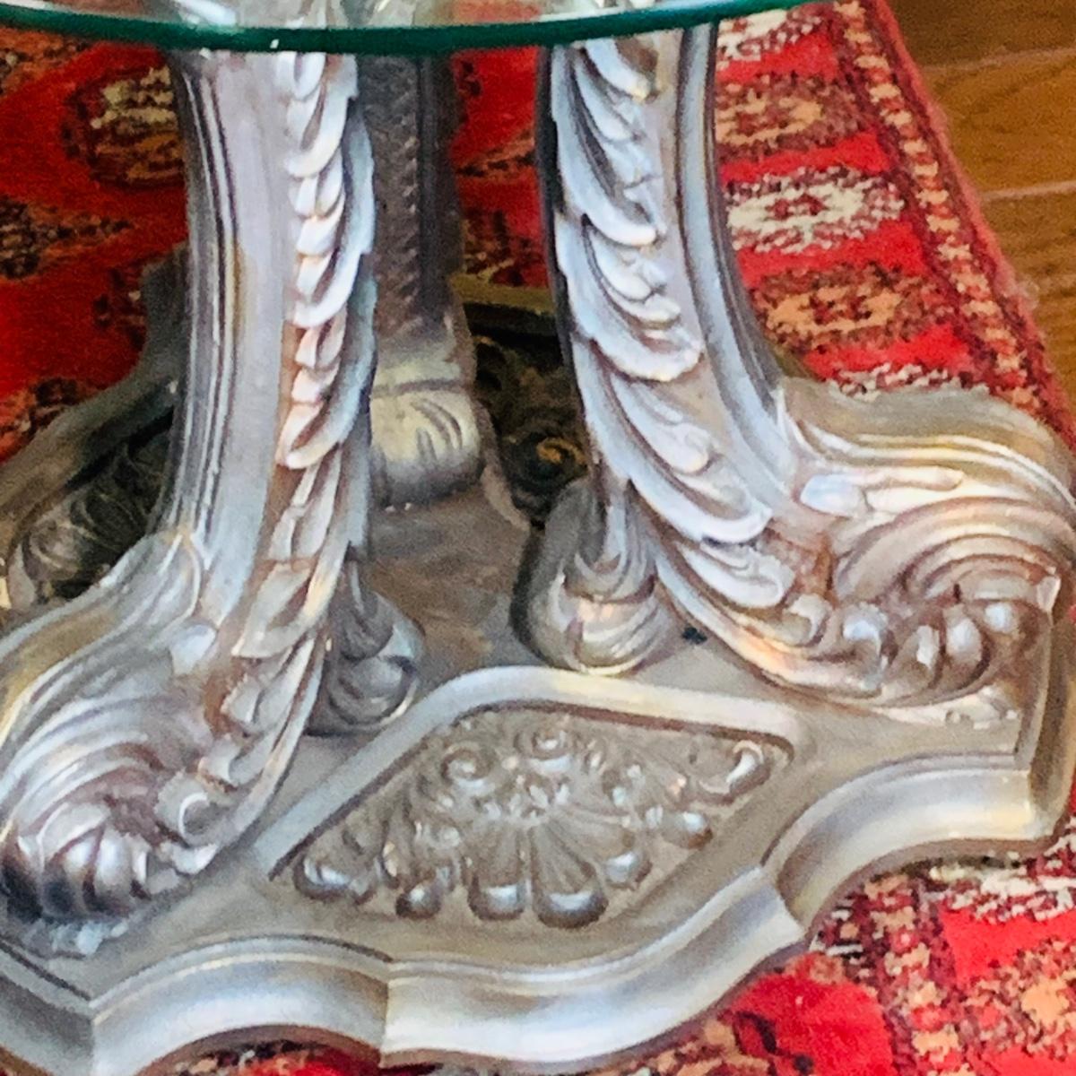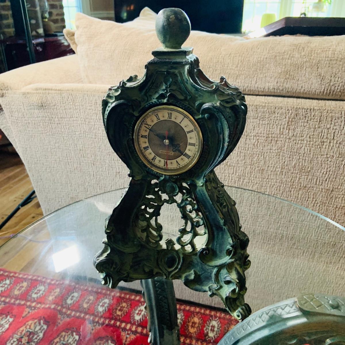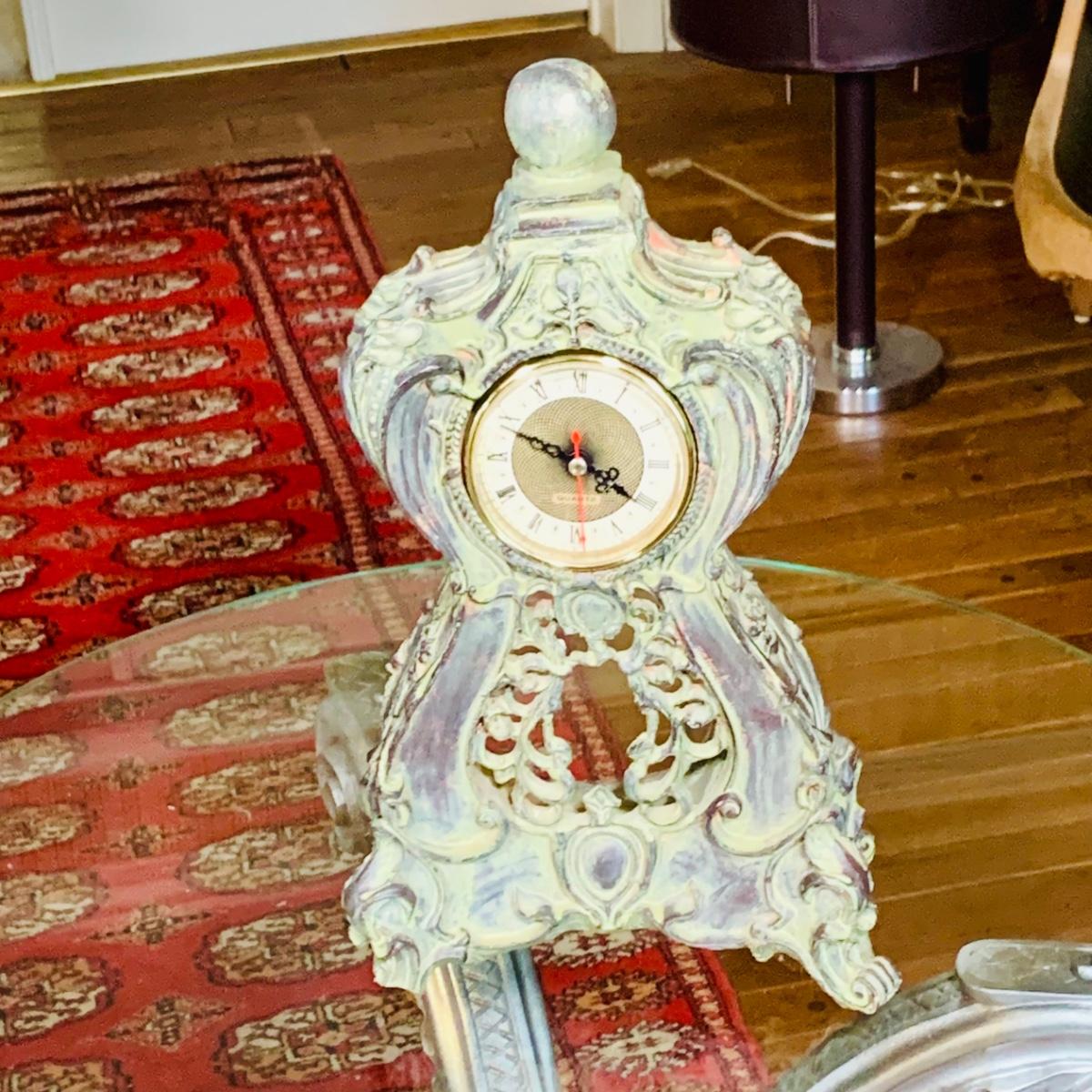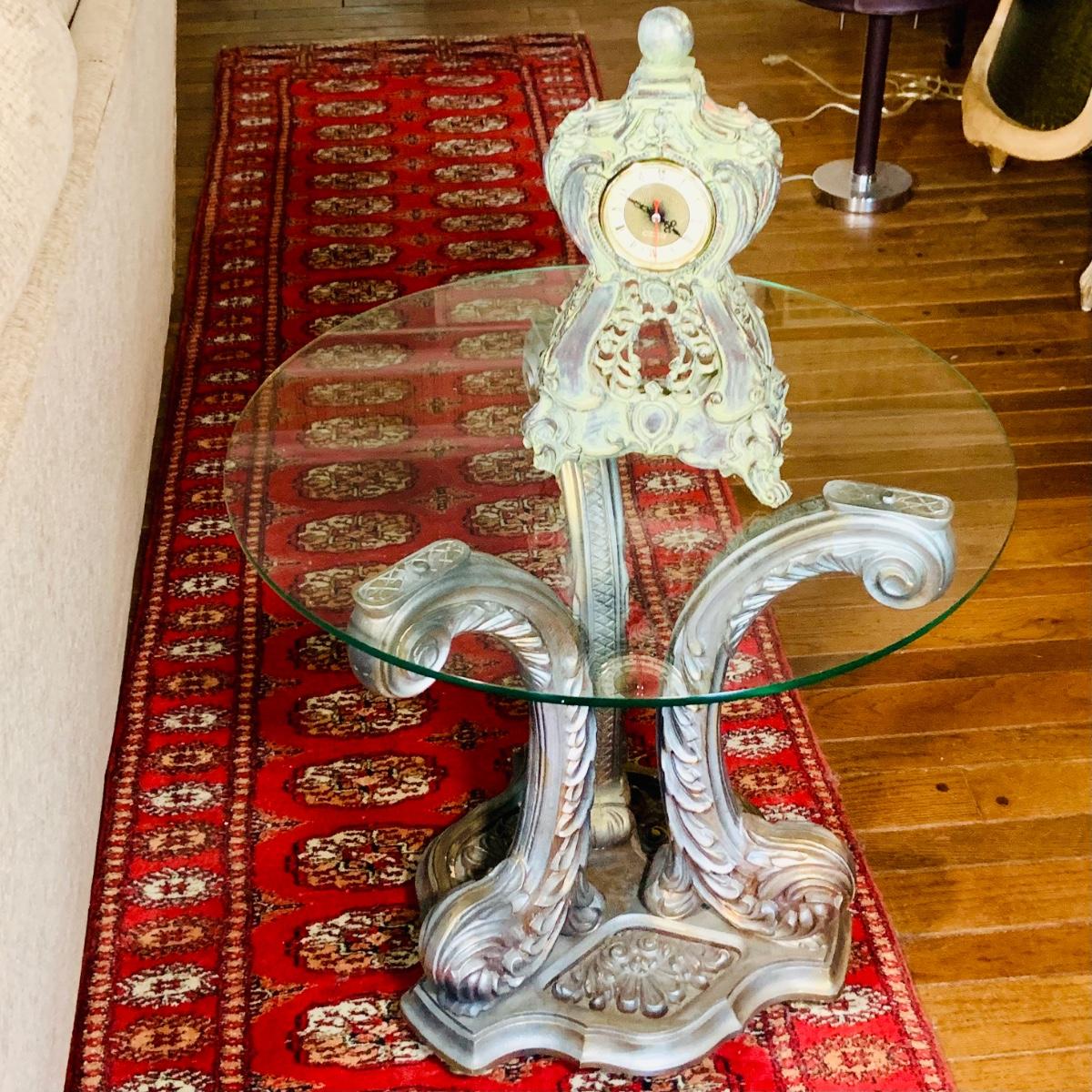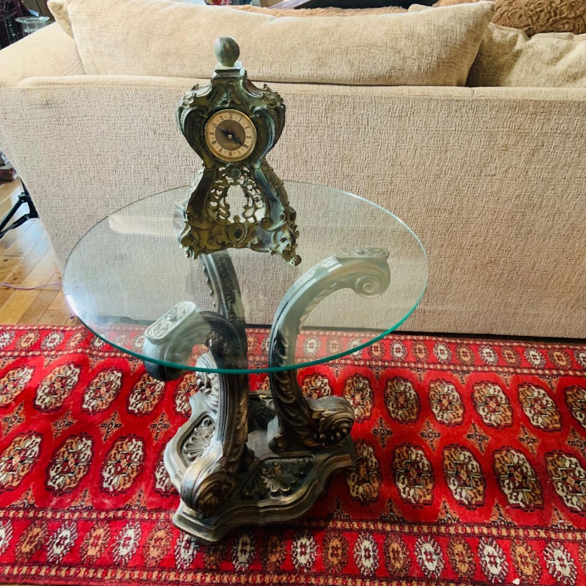 Lot :277" Glass Topped Pedestal Side Table and Mantle Clock