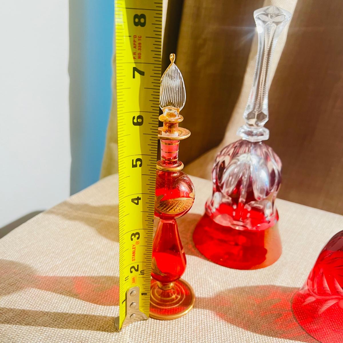 Vintage Ruby Red Collection Crystal Set 2 Dinner Bells 1 Perfume Decanter