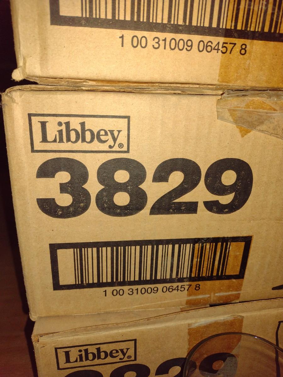 5 Boxes of Libbey Drinking Glasses #3829 5 Doz Total Shipping option via freight or local mover is Buyer's responsibility and expense. Buyer must have all shipping scheduled within the stated dates and times of pickup. Recommended local movers are Beaty Bros. Moving 828-201-2982 and Carolina Pack n Go 828-489-9773.