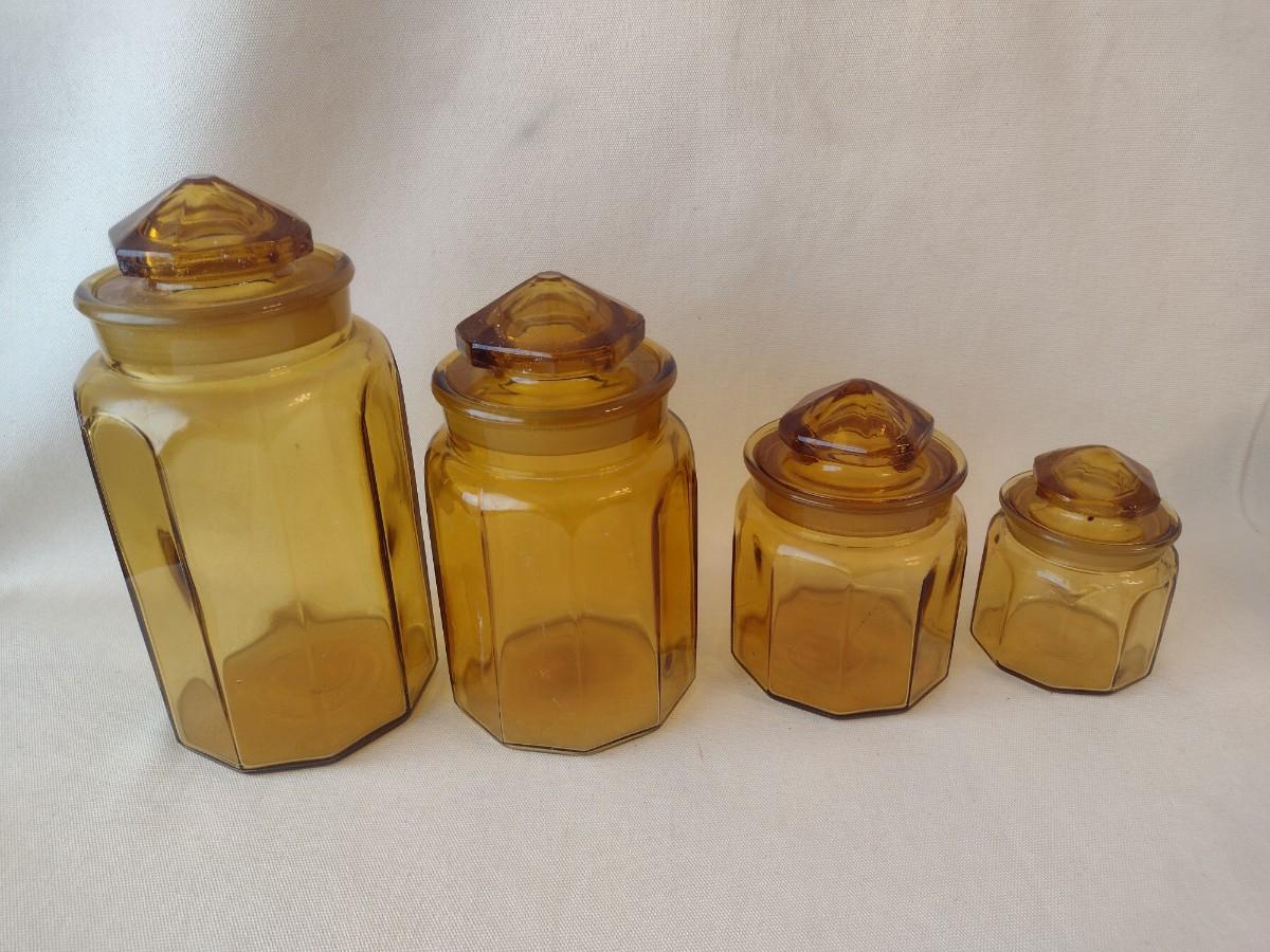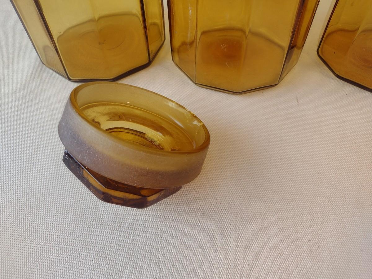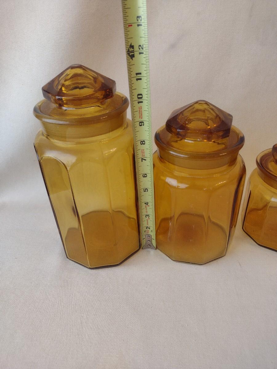 Vintage Amber Glass Canister Set rims may have minor chips as shown