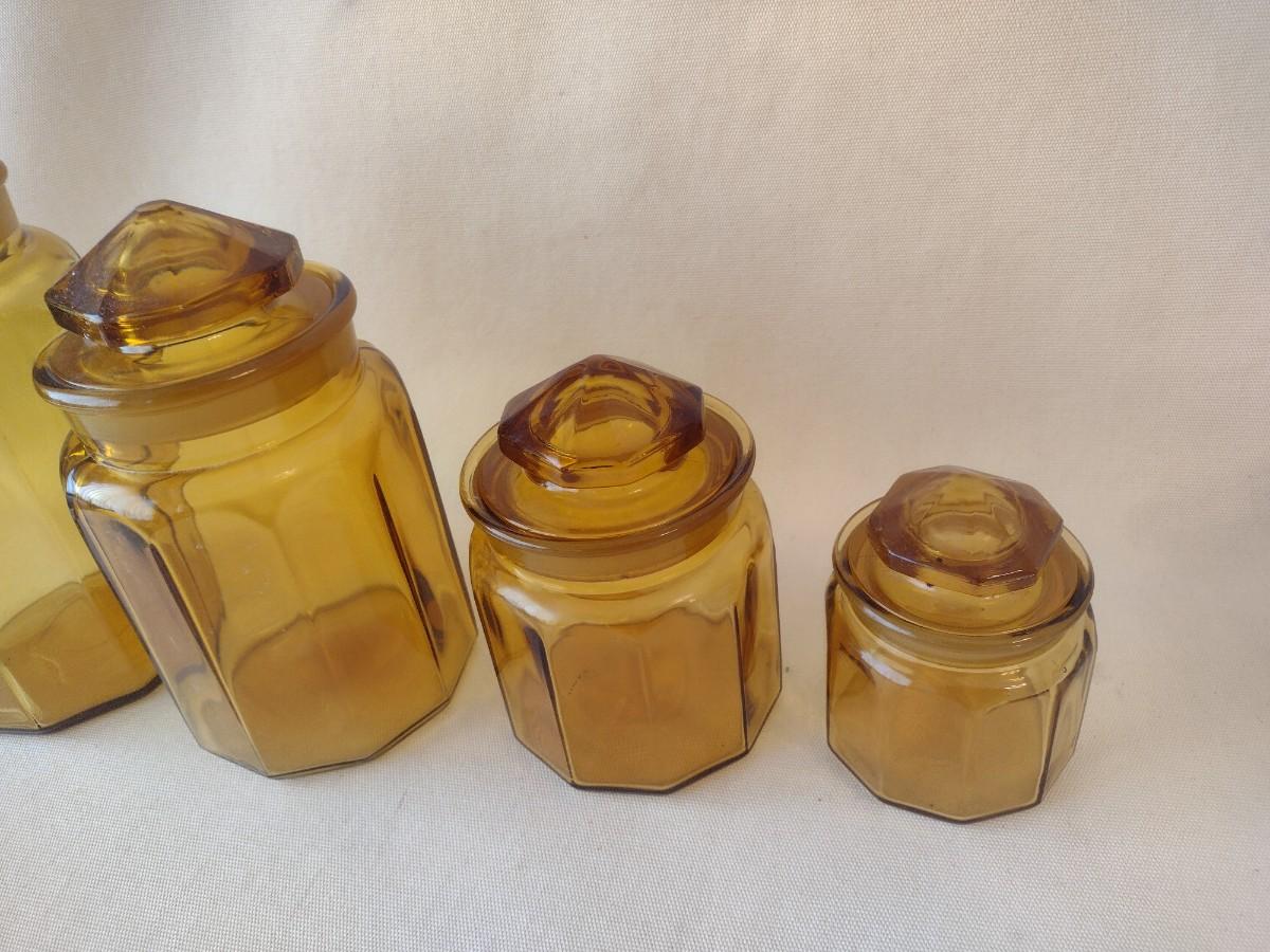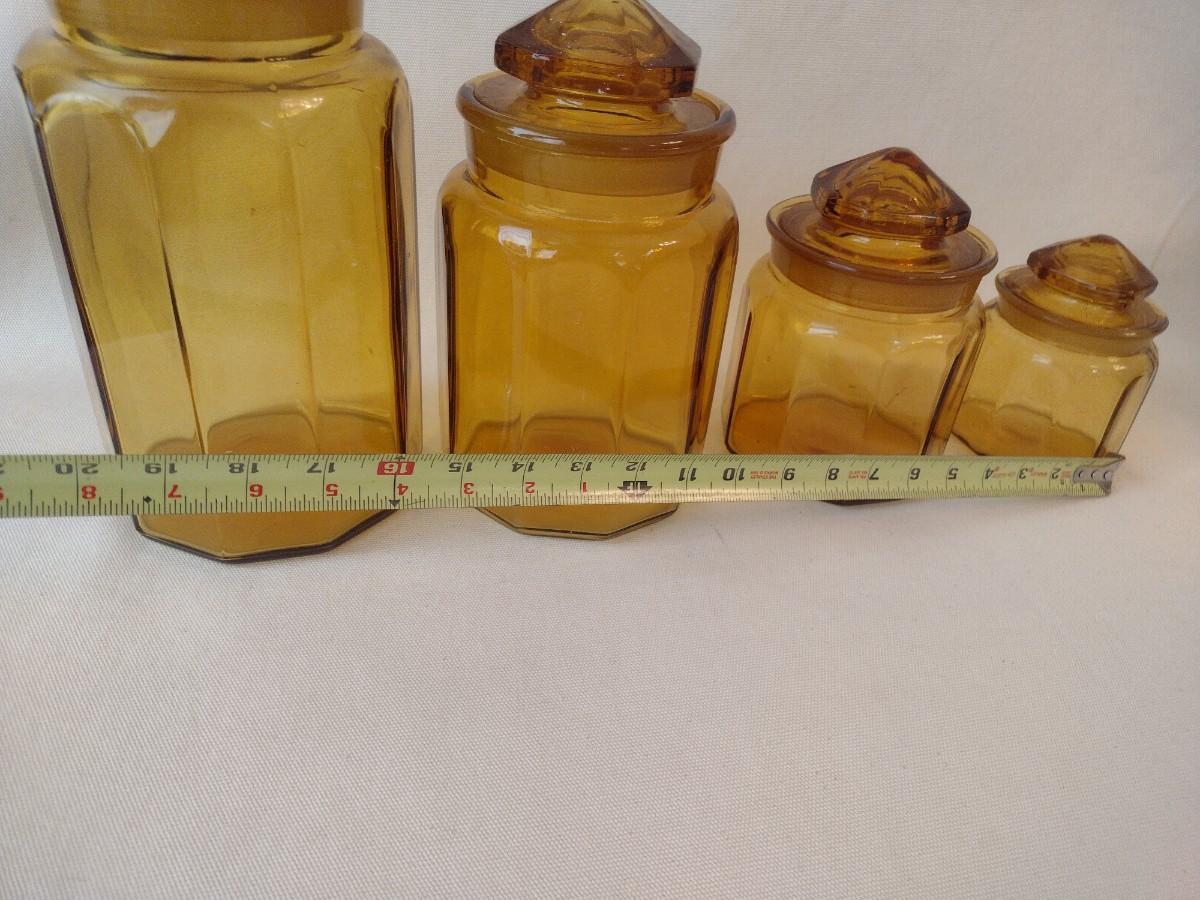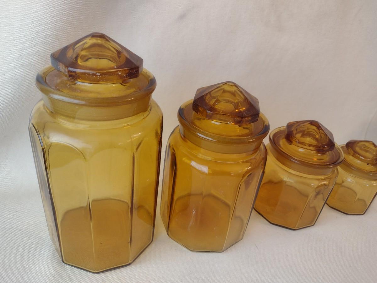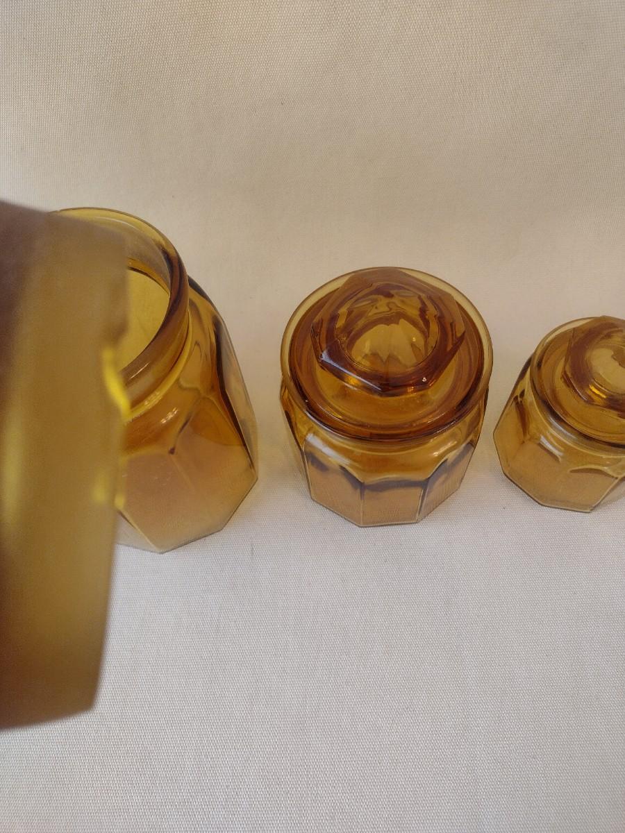 Vintage Amber Glass Canister Set rims may have minor chips as shown