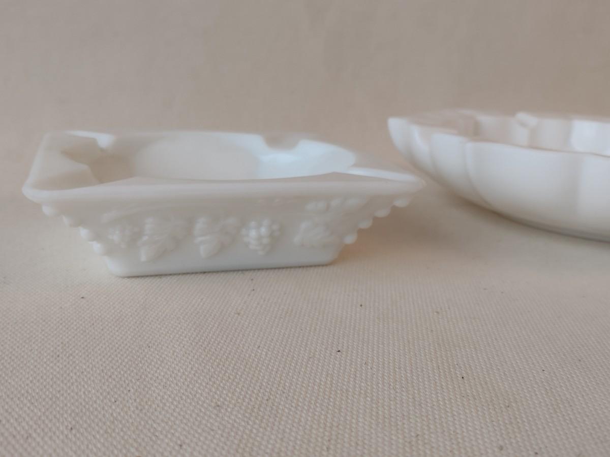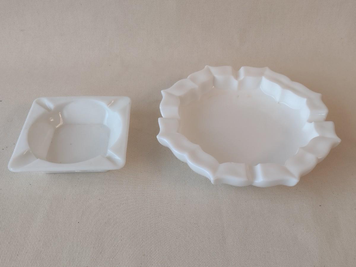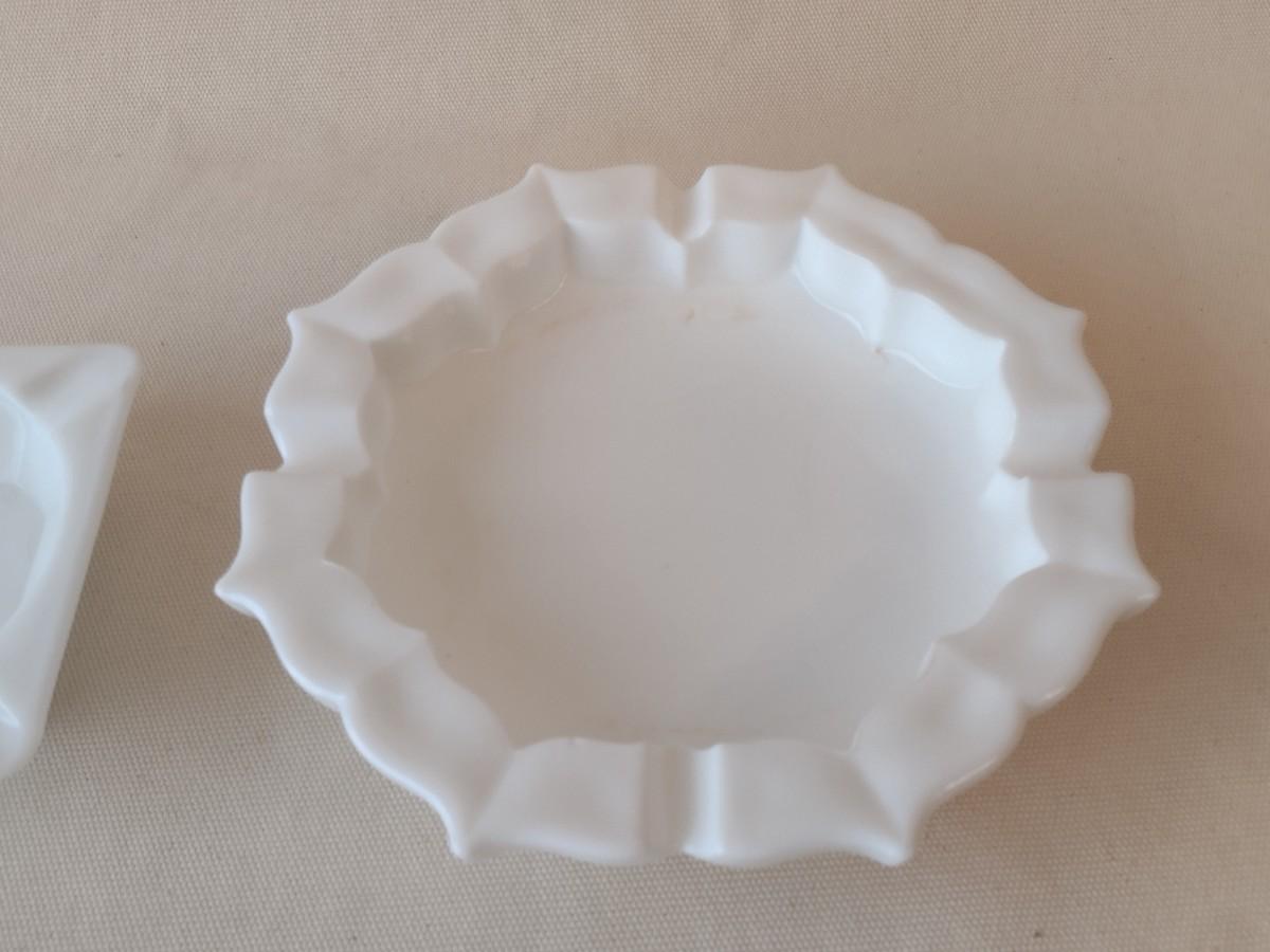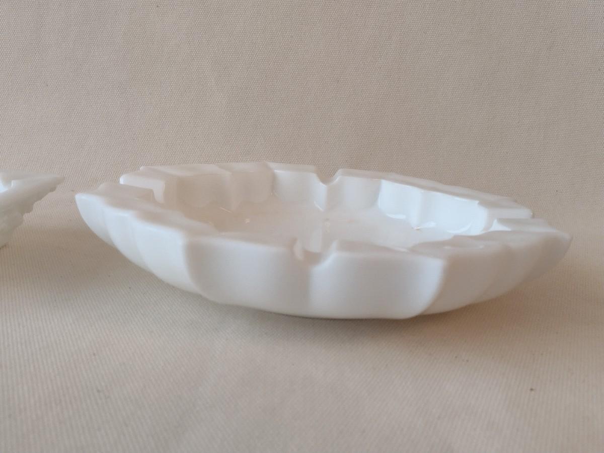Pair of Vintage Solid Form Milk Glass Ashtrays