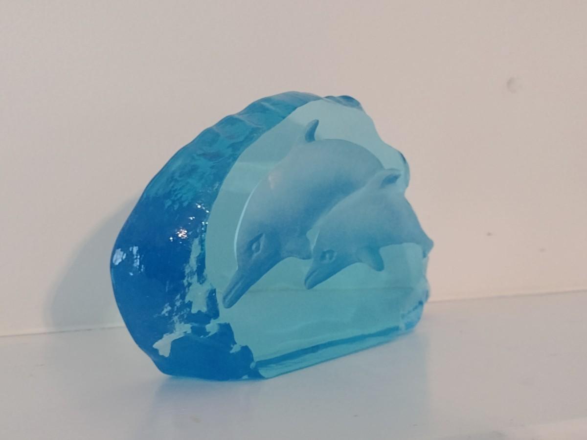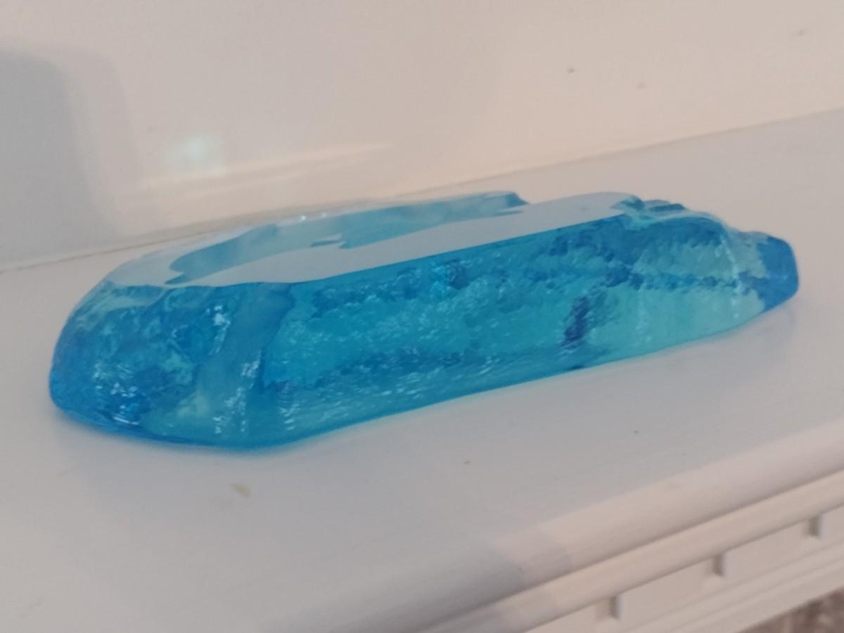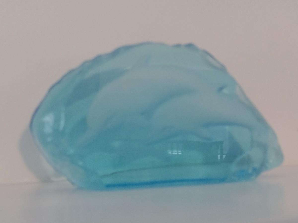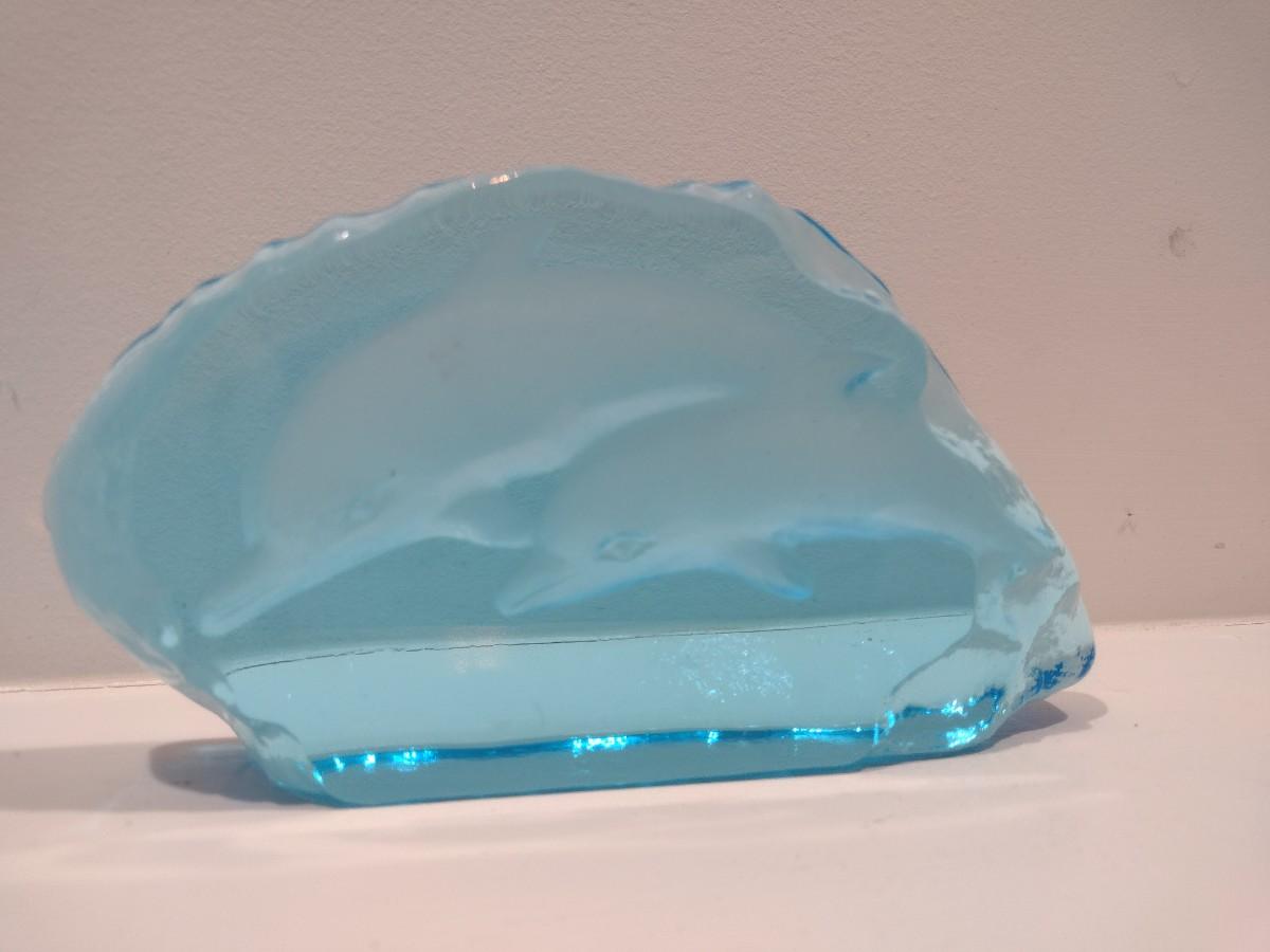 Aqua Blue Art Glass Slab with Impressed Dolphins