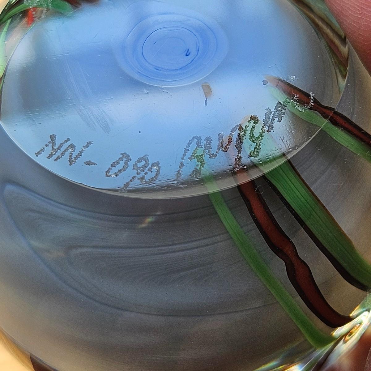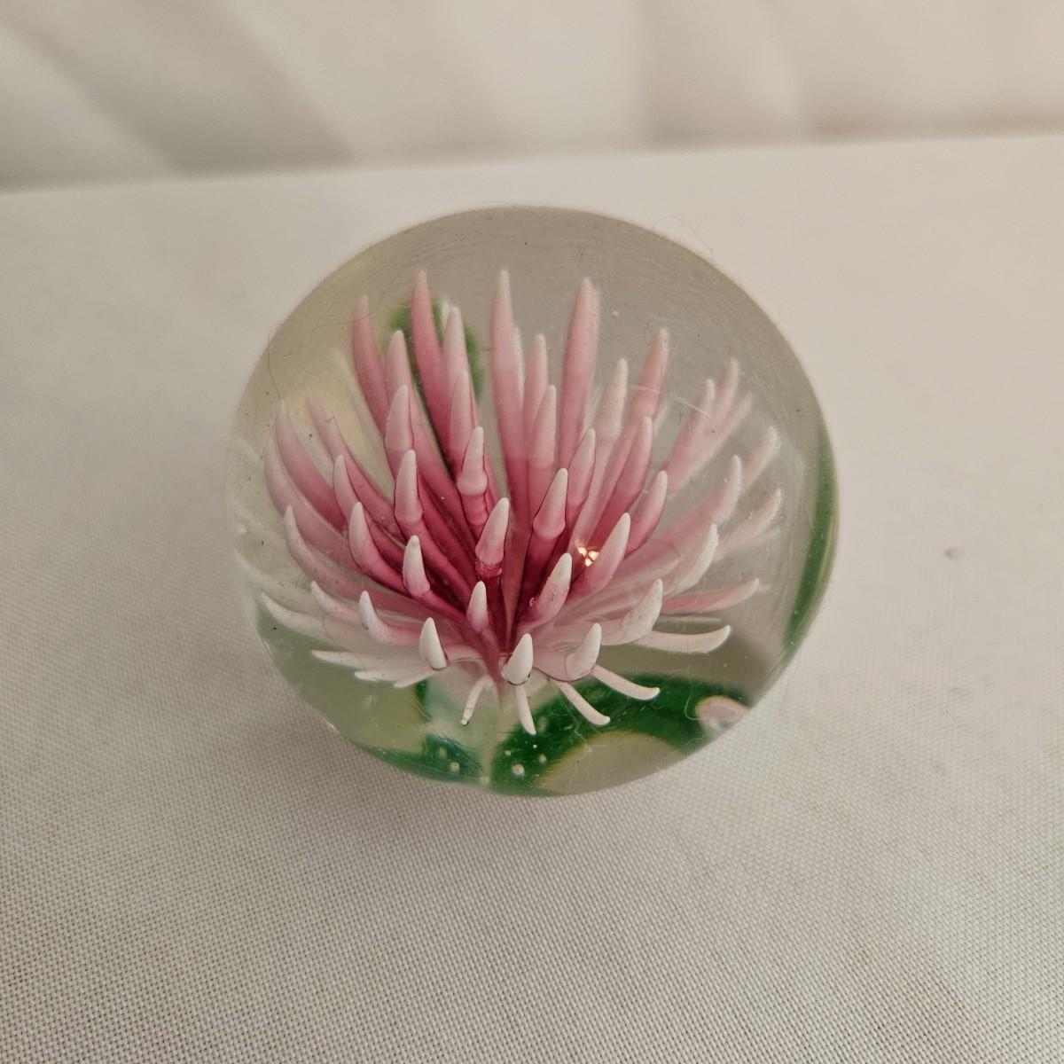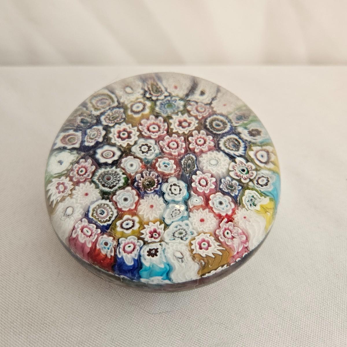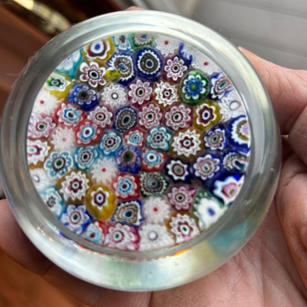 An assortment nine paperweights, seven made of glass and the last two pictured that appear to be epoxy pours and measure approximately 3.5"D x 2"H. Shipping available