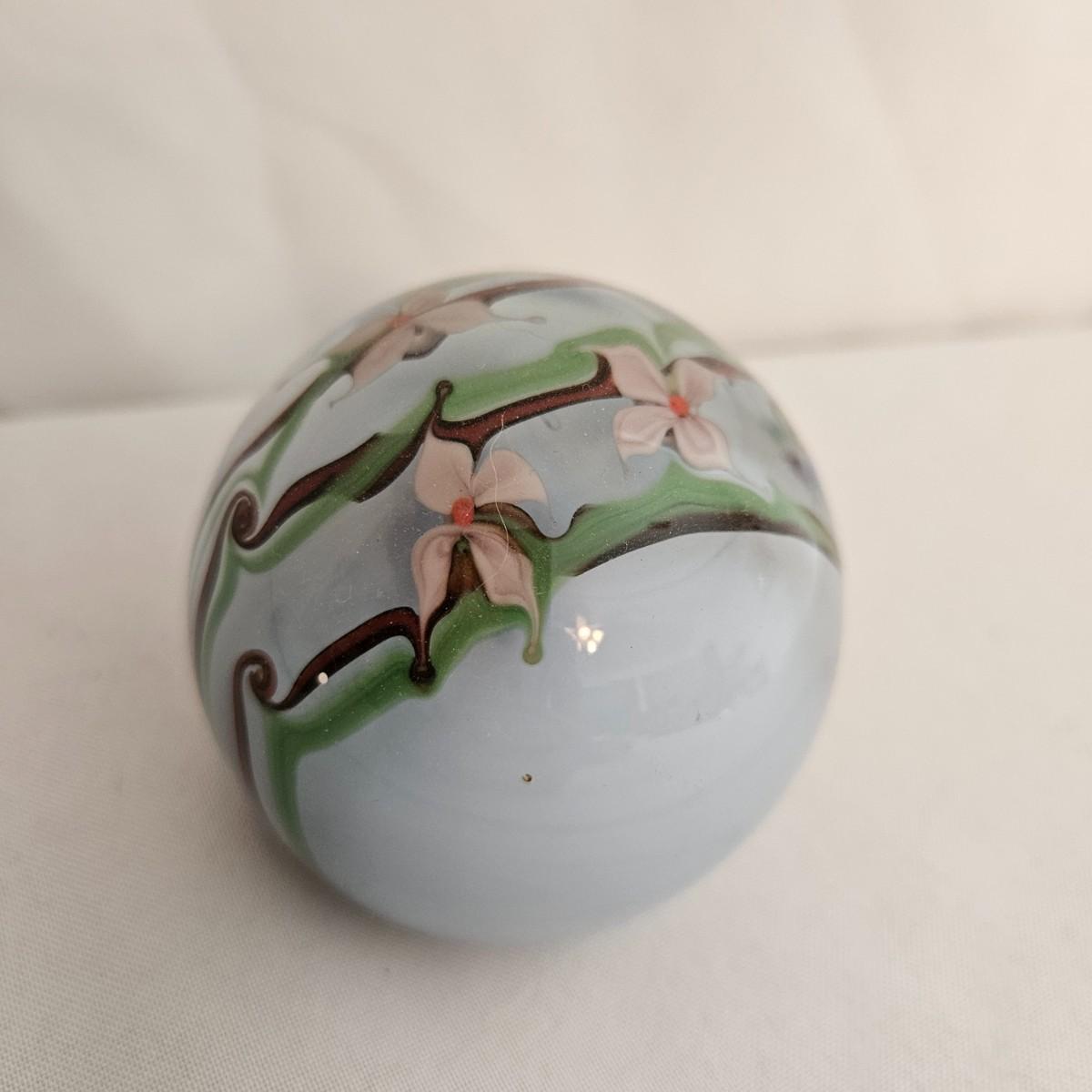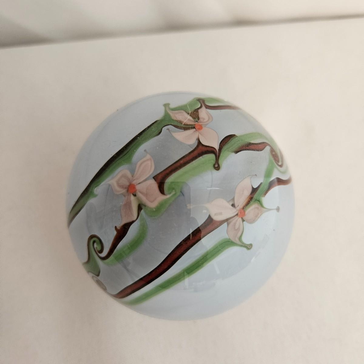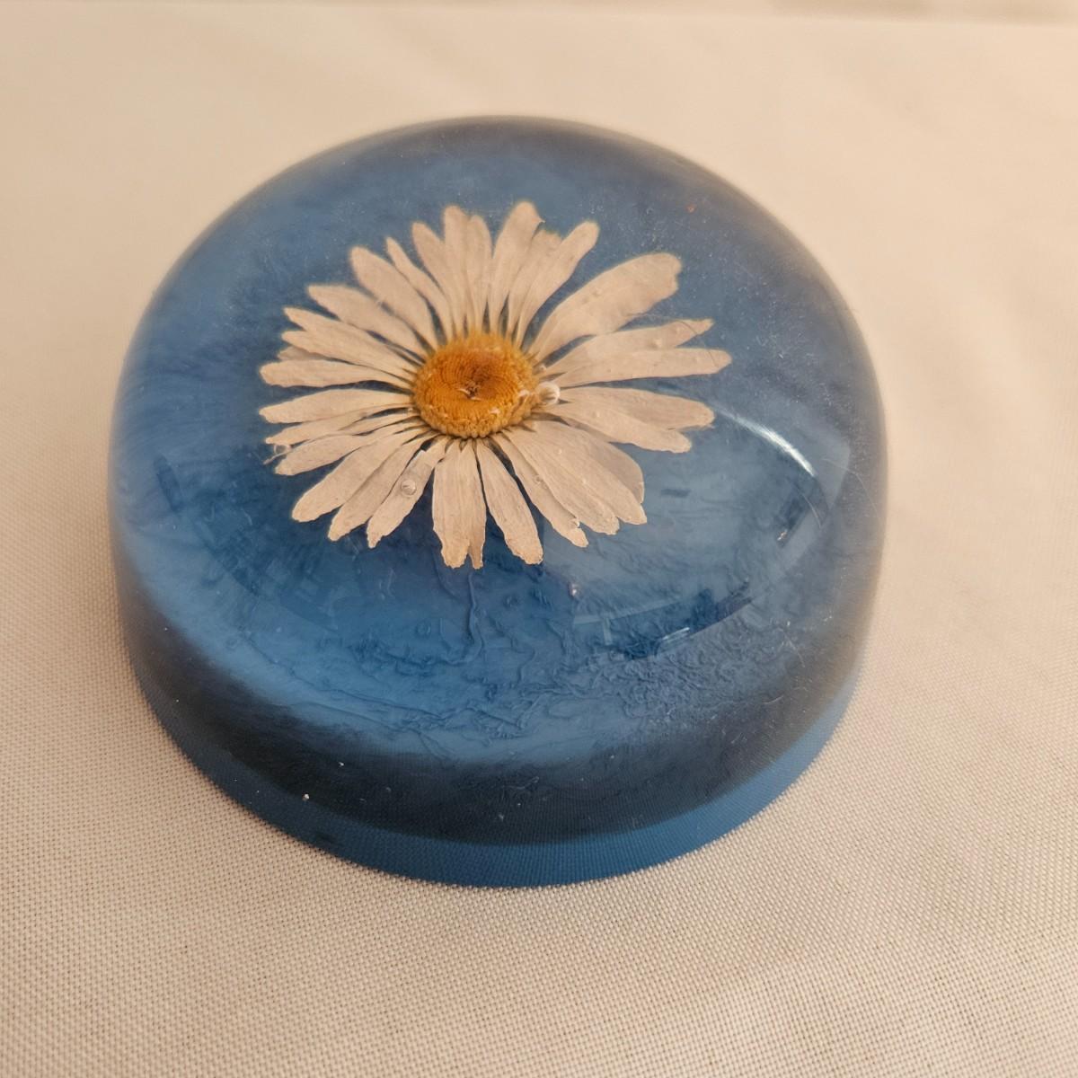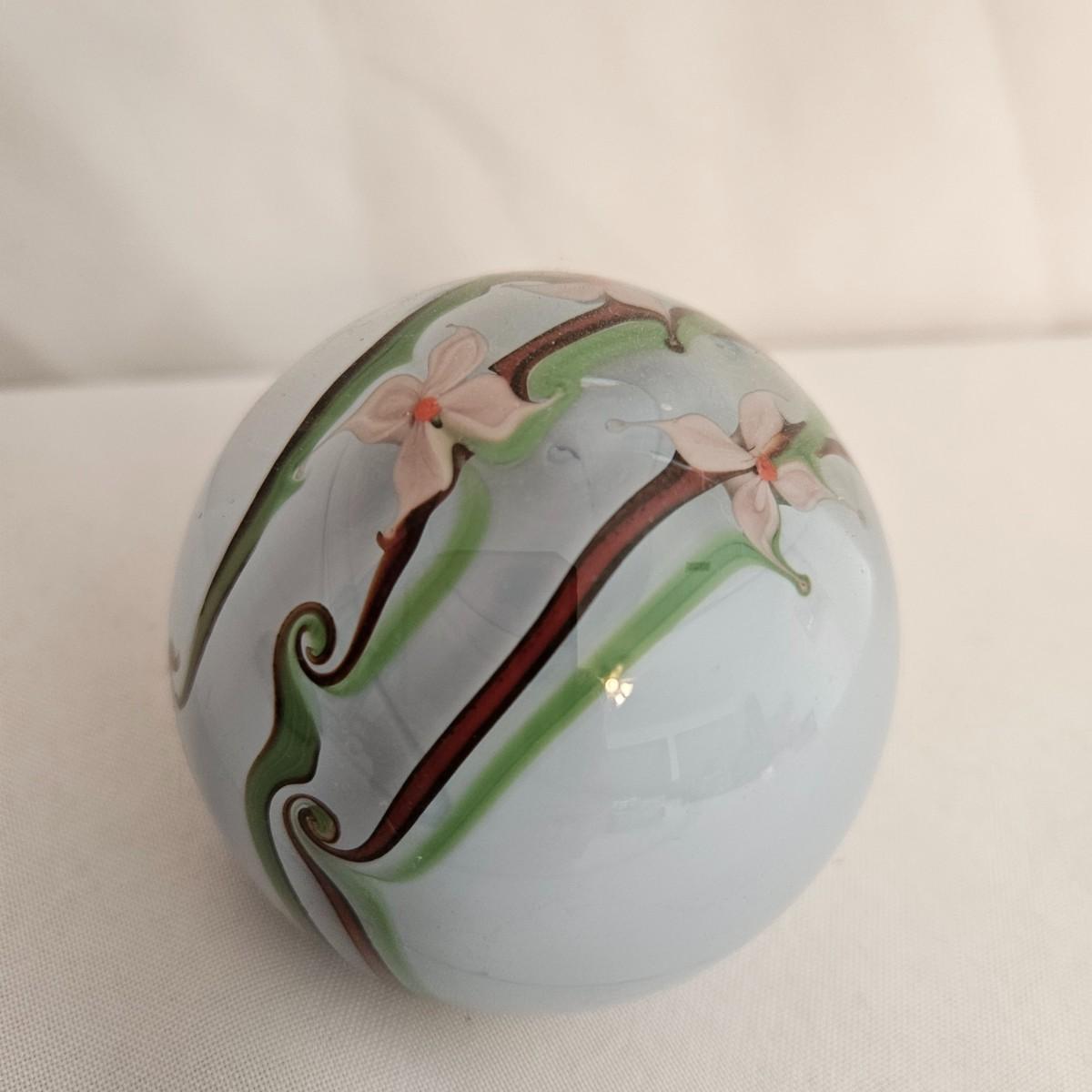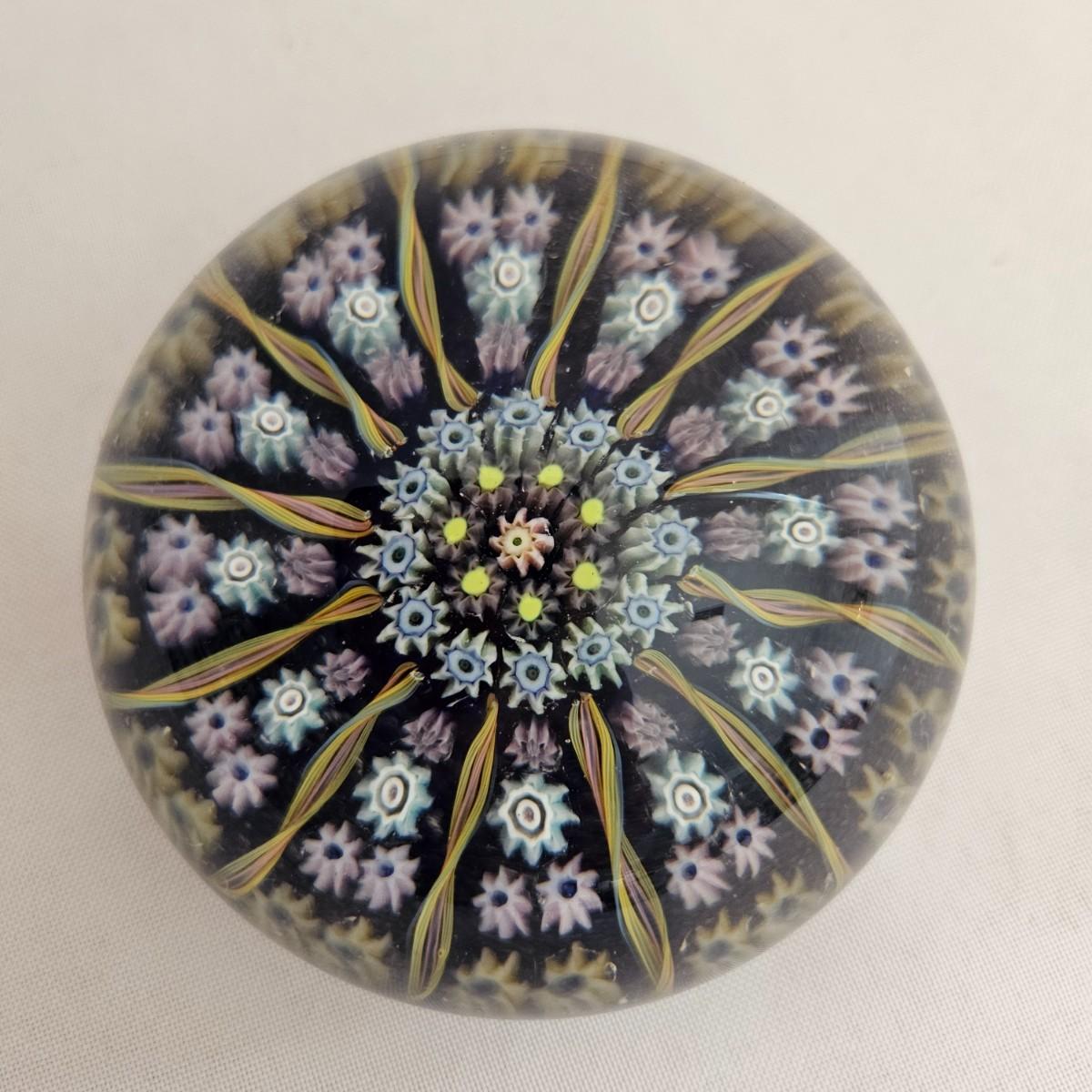 An assortment nine paperweights, seven made of glass and the last two pictured that appear to be epoxy pours and measure approximately 3.5"D x 2"H. Shipping available