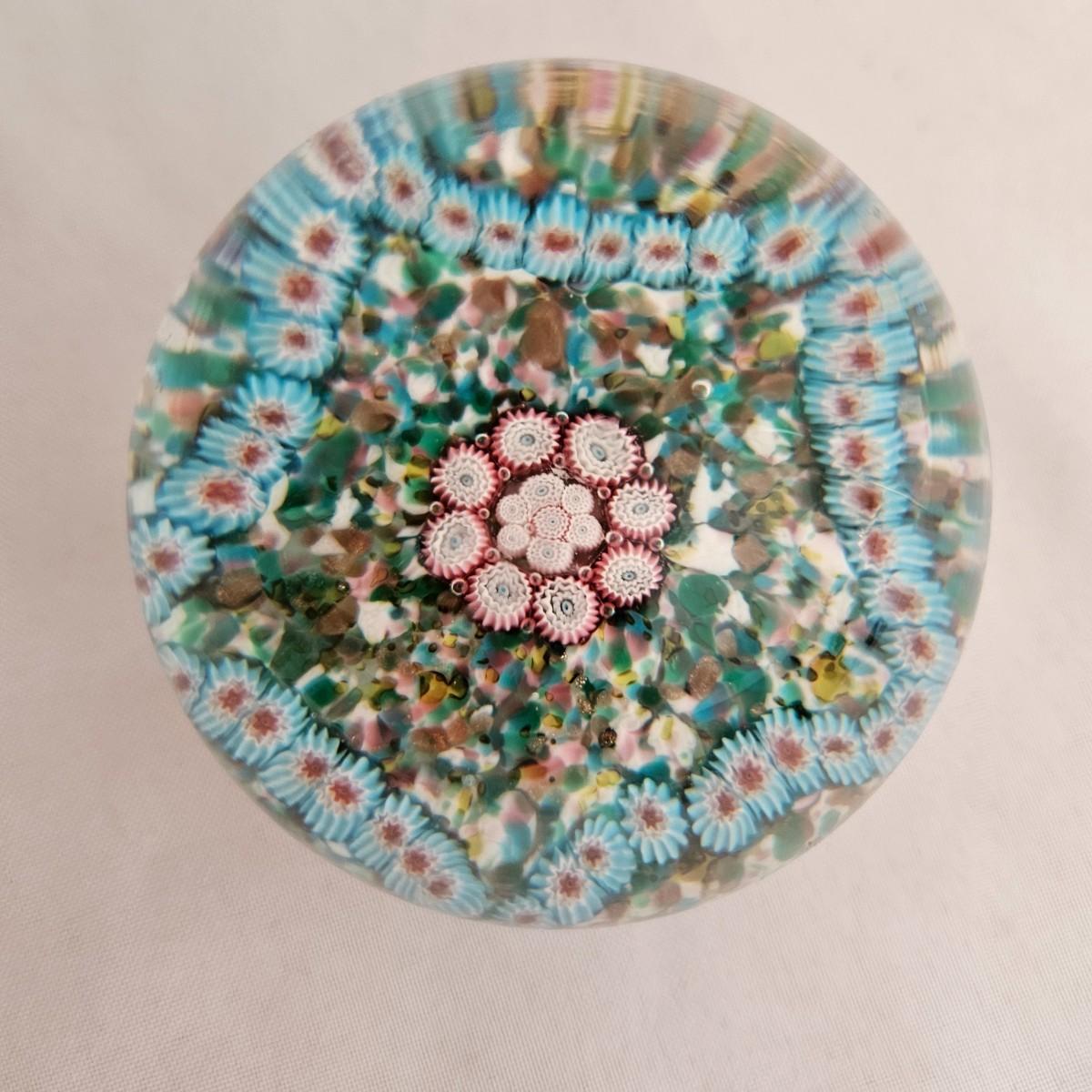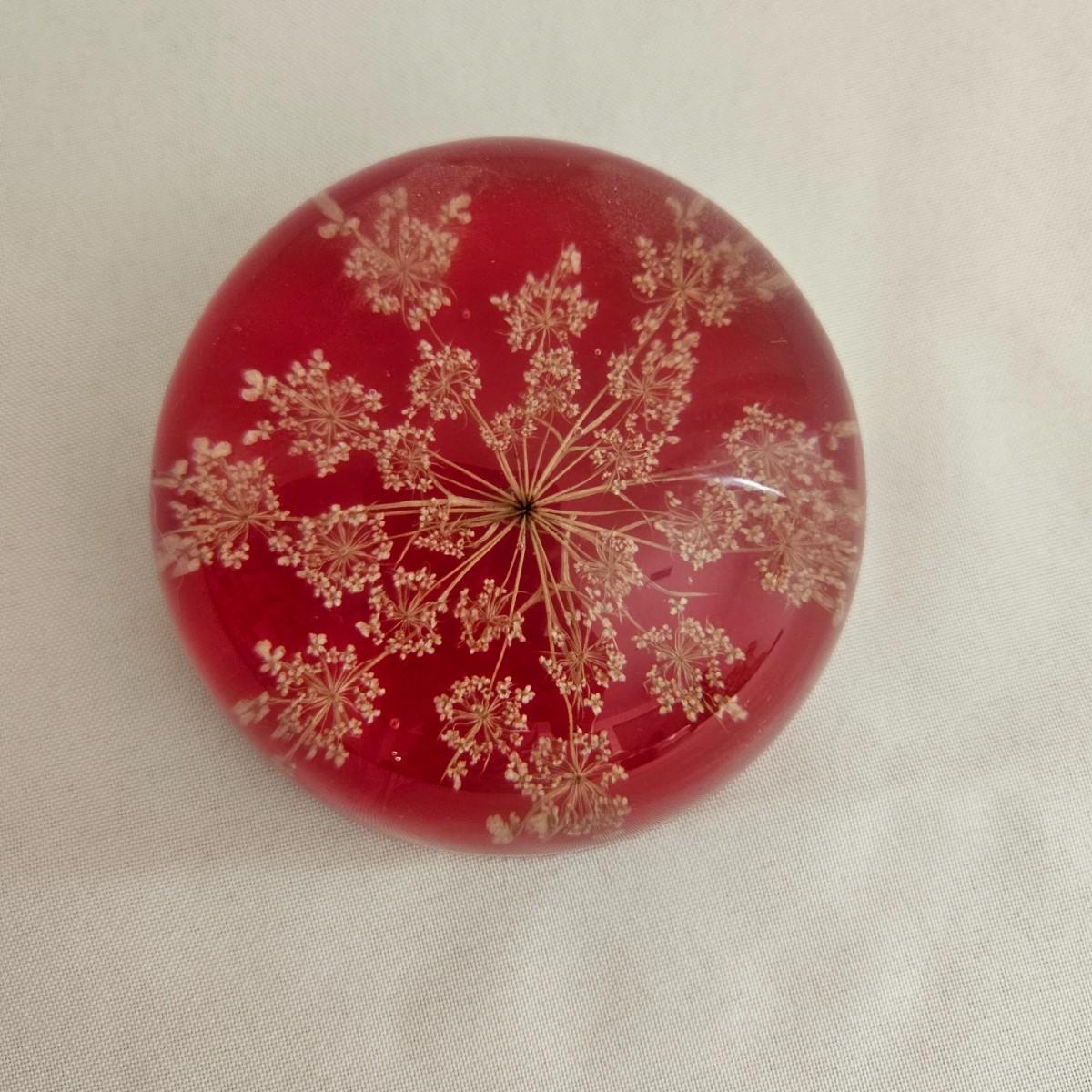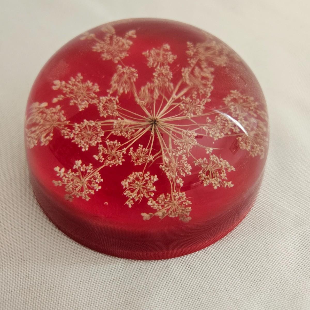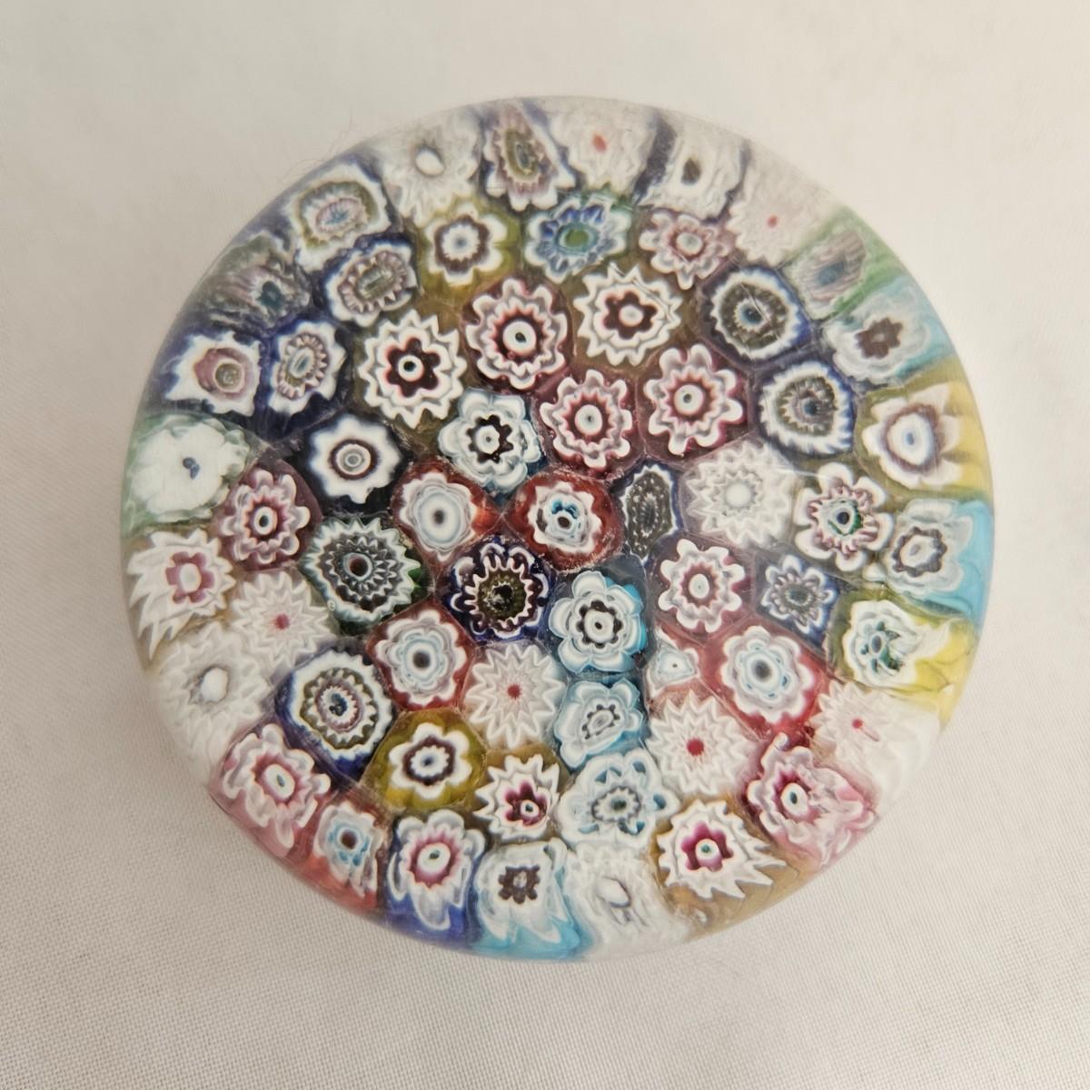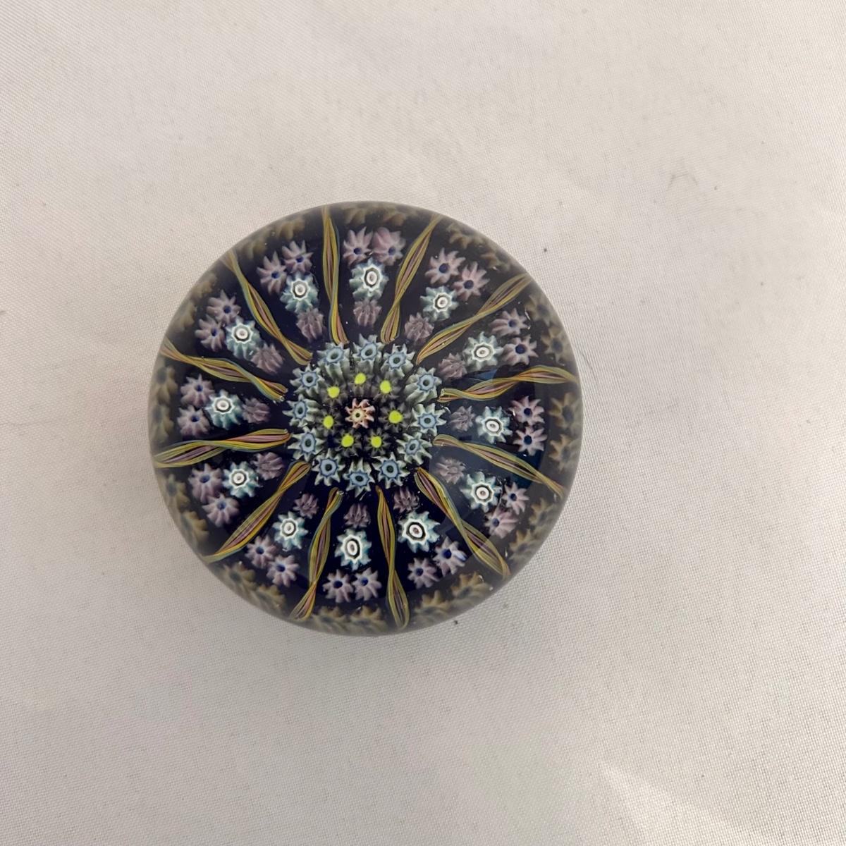 An assortment nine paperweights, seven made of glass and the last two pictured that appear to be epoxy pours and measure approximately 3.5"D x 2"H. Shipping available