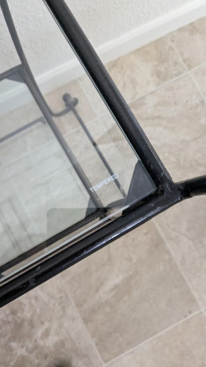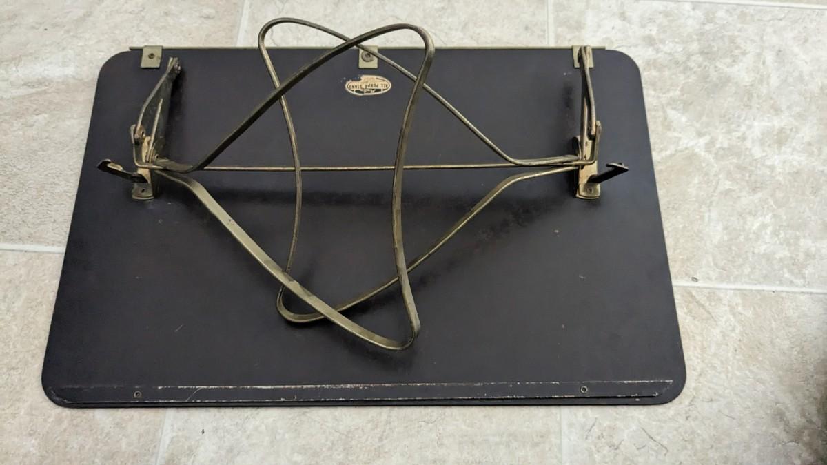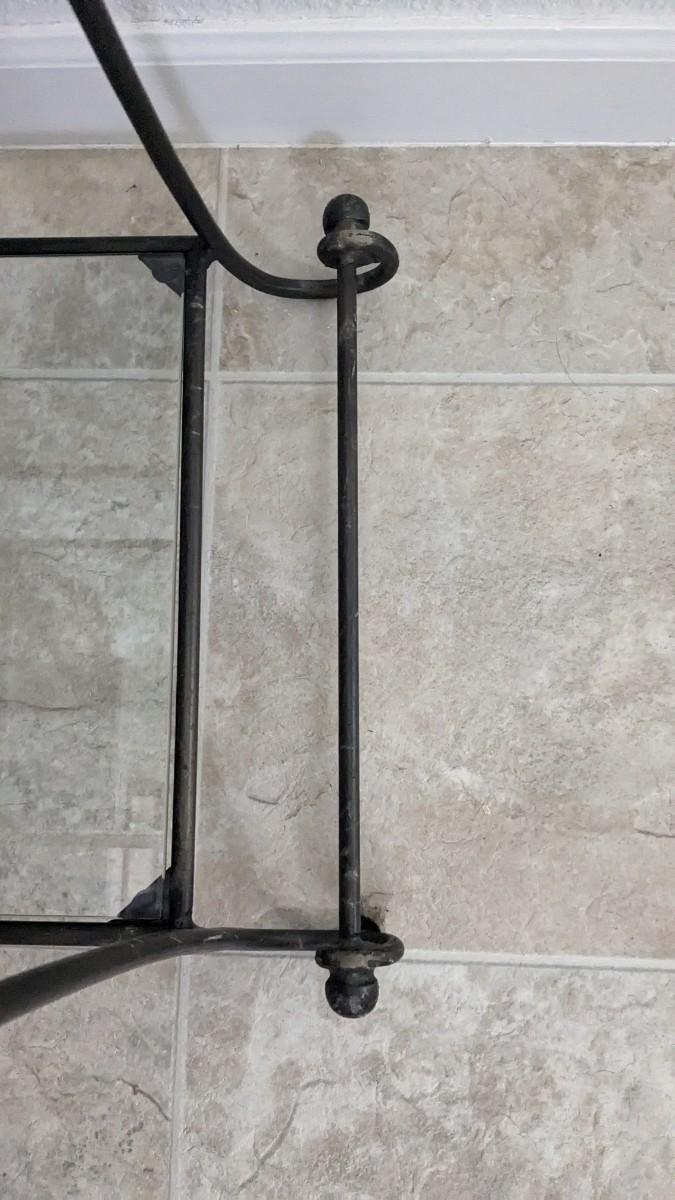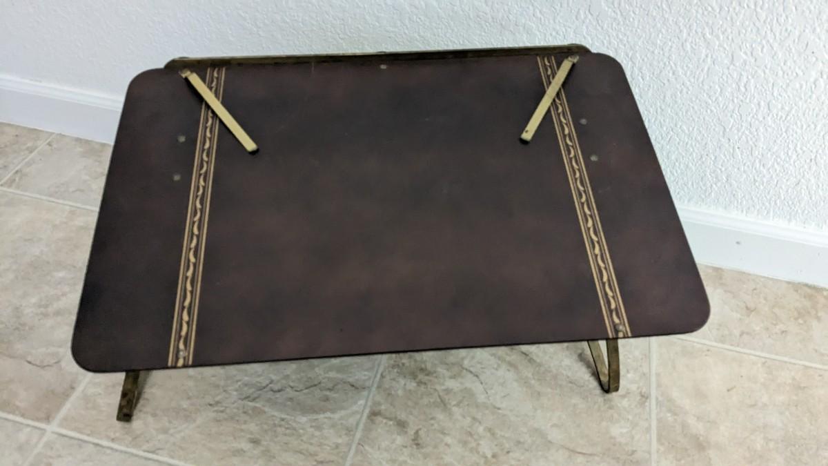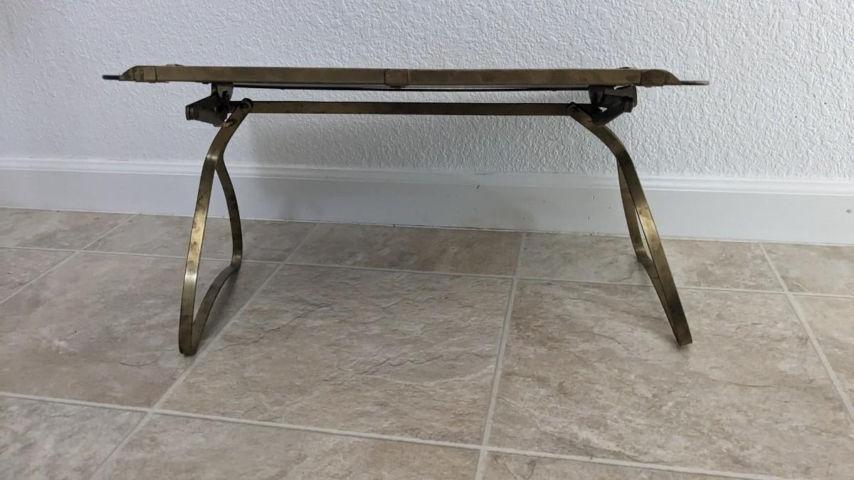 21.75"x 16"x 32"bent iron 3 tier glass shelf. Also includes 2 lap trays, one for everyday use and the other a lovely older art board with folding arms . All pieces in great condition. No shipping