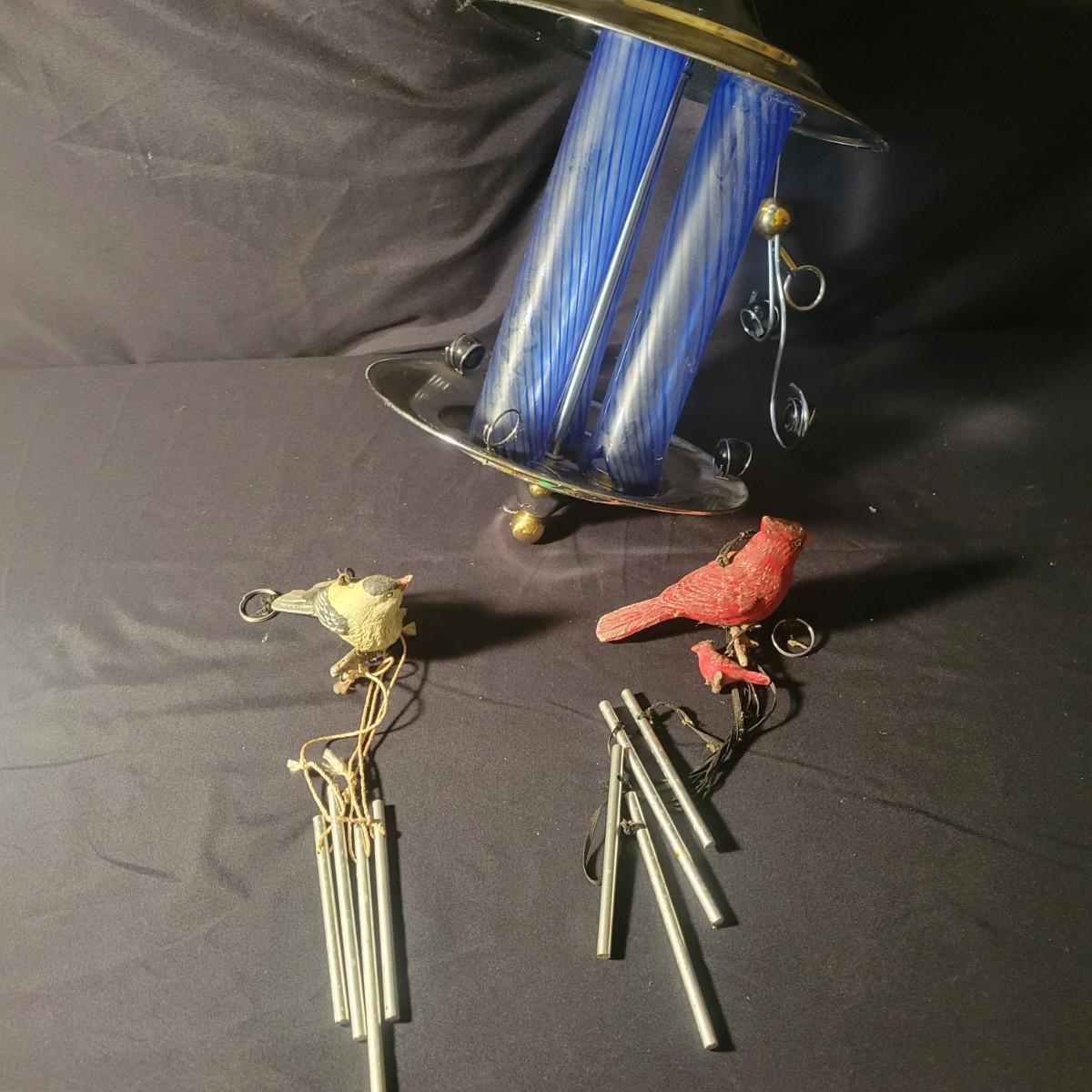 Glass and Metal Bird Feeder and Two Windchimes (DR-DW)
