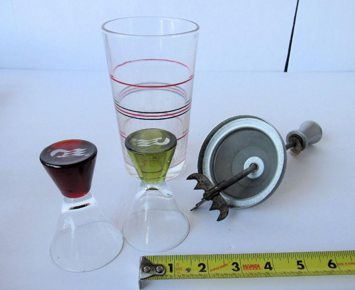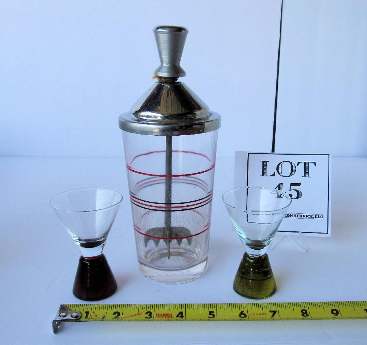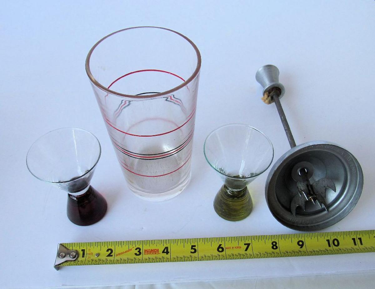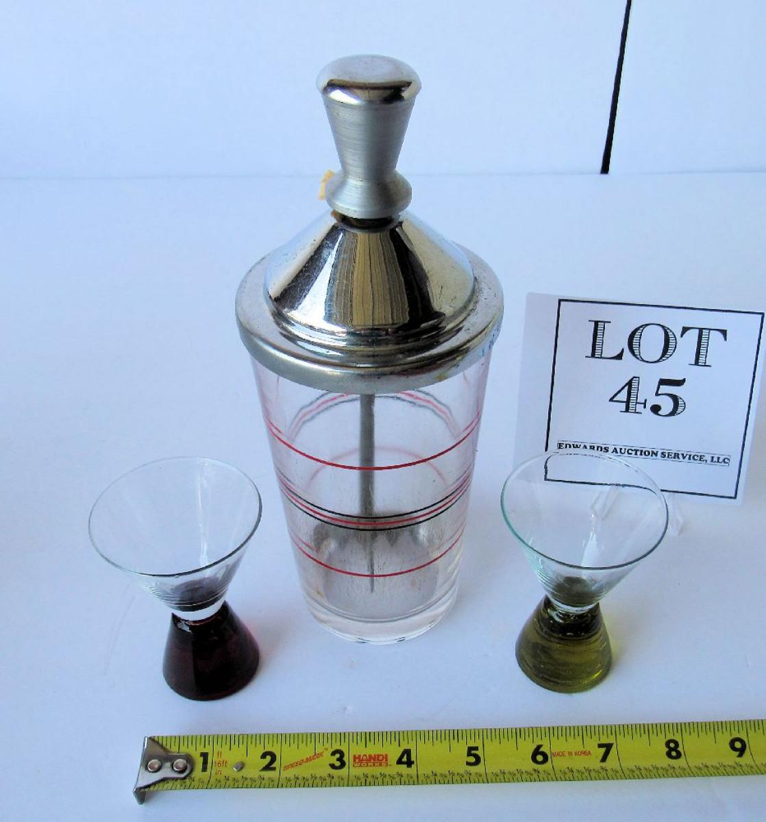 Glass and Metal Mixed Drink Cocktail Shaker/Ice Crusher Insert, 2 Shot Glasses