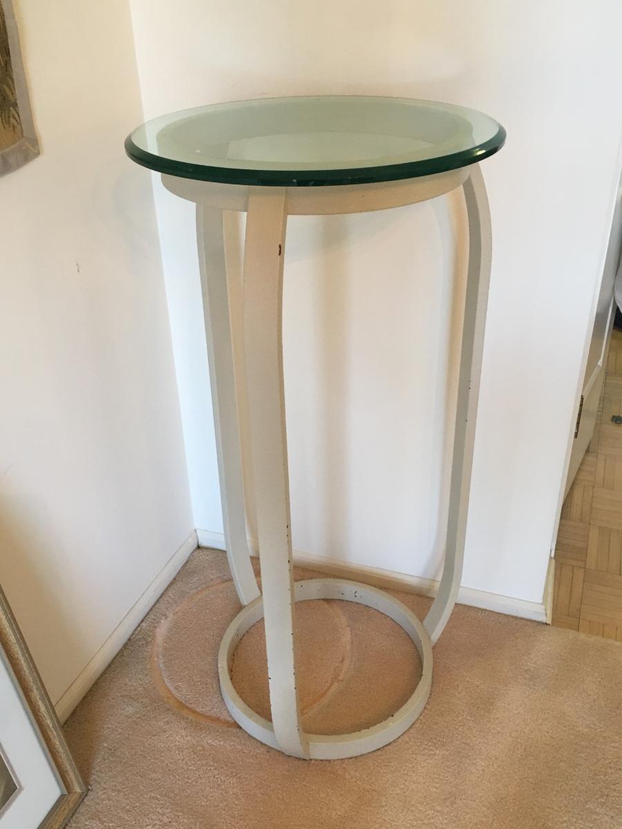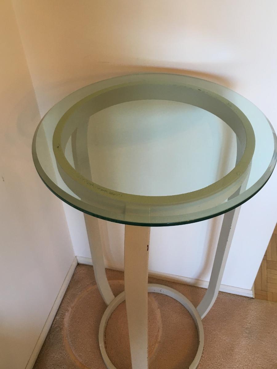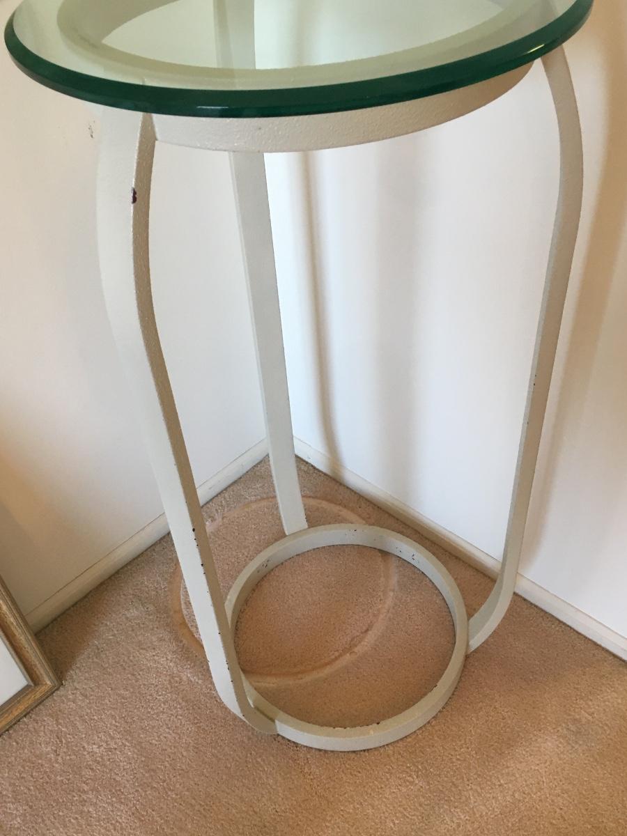 2 piece stand set. Signs of wear on metal but glass in excellent condition.
