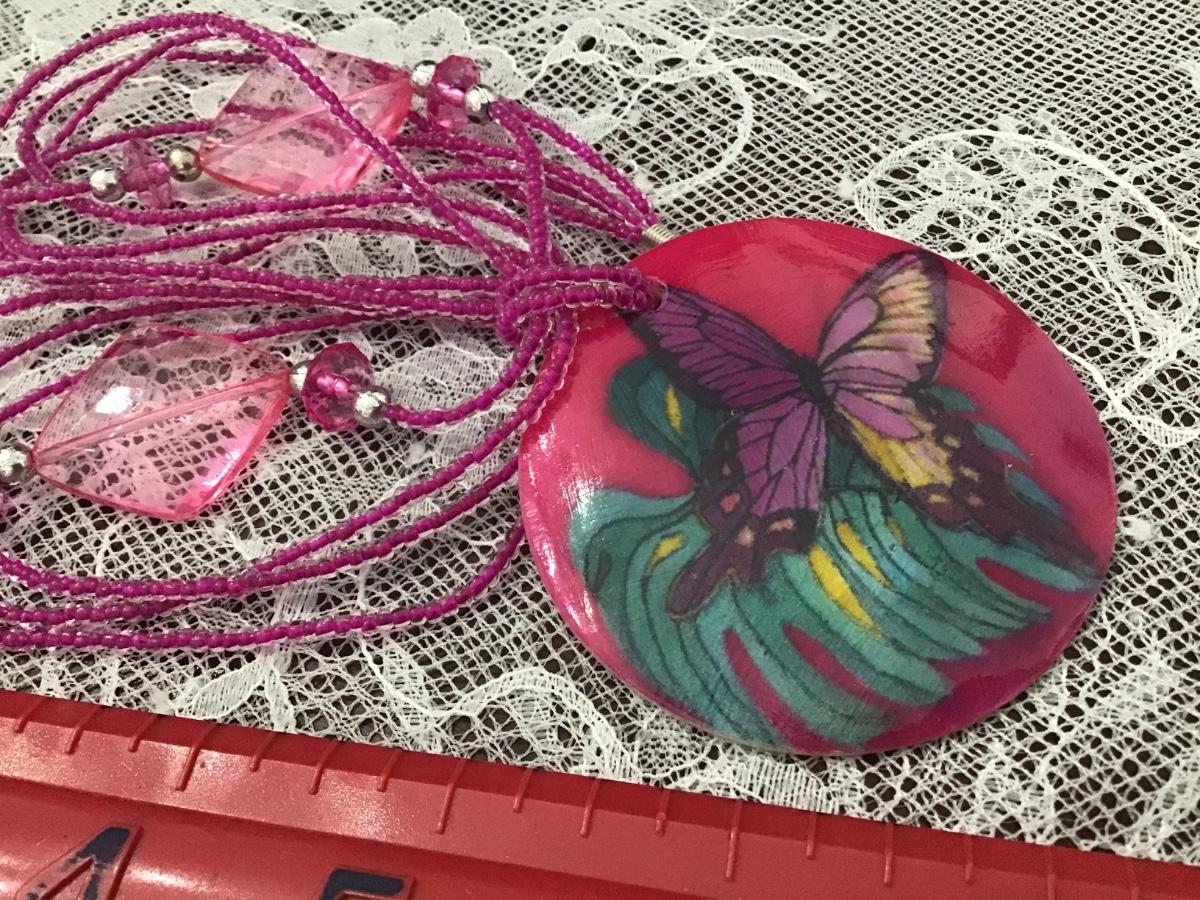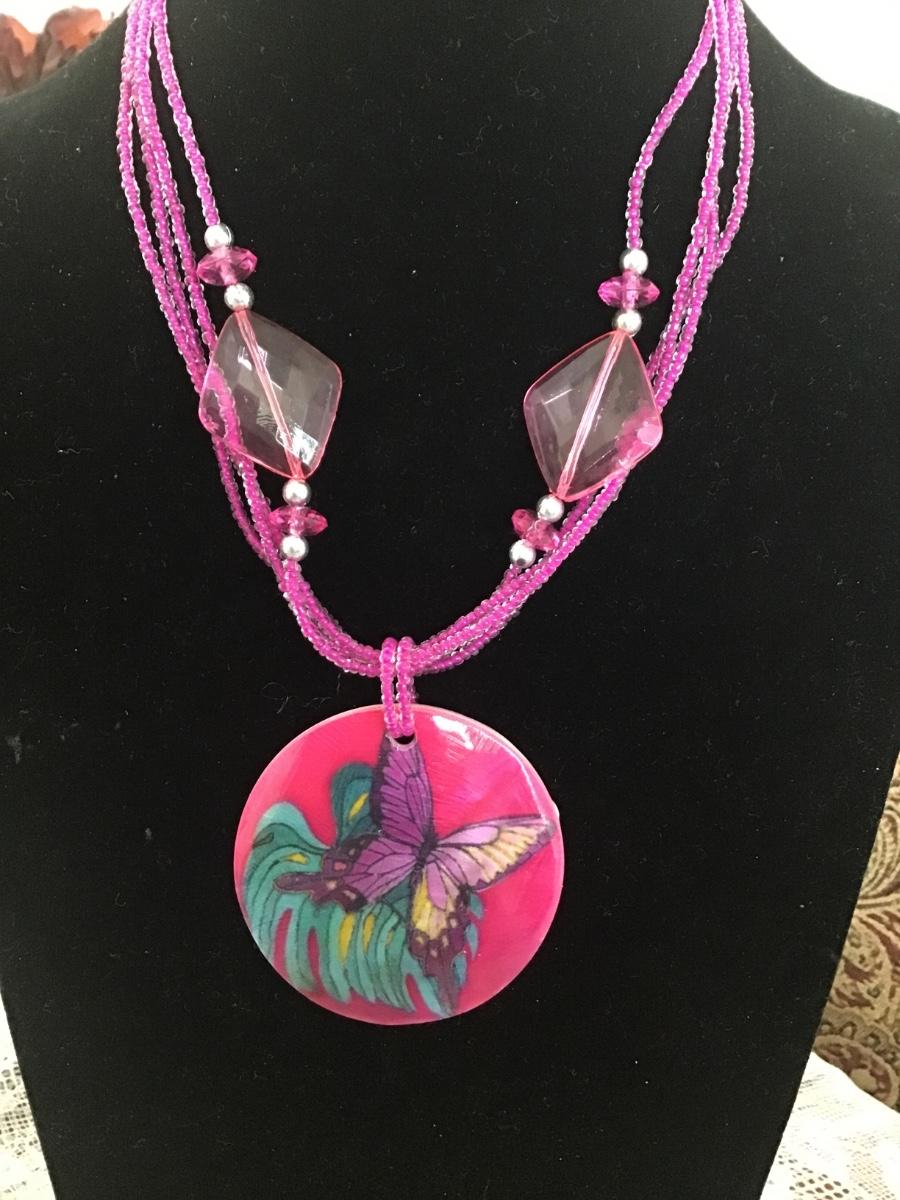 Glass and Shell Necklace Butterfly