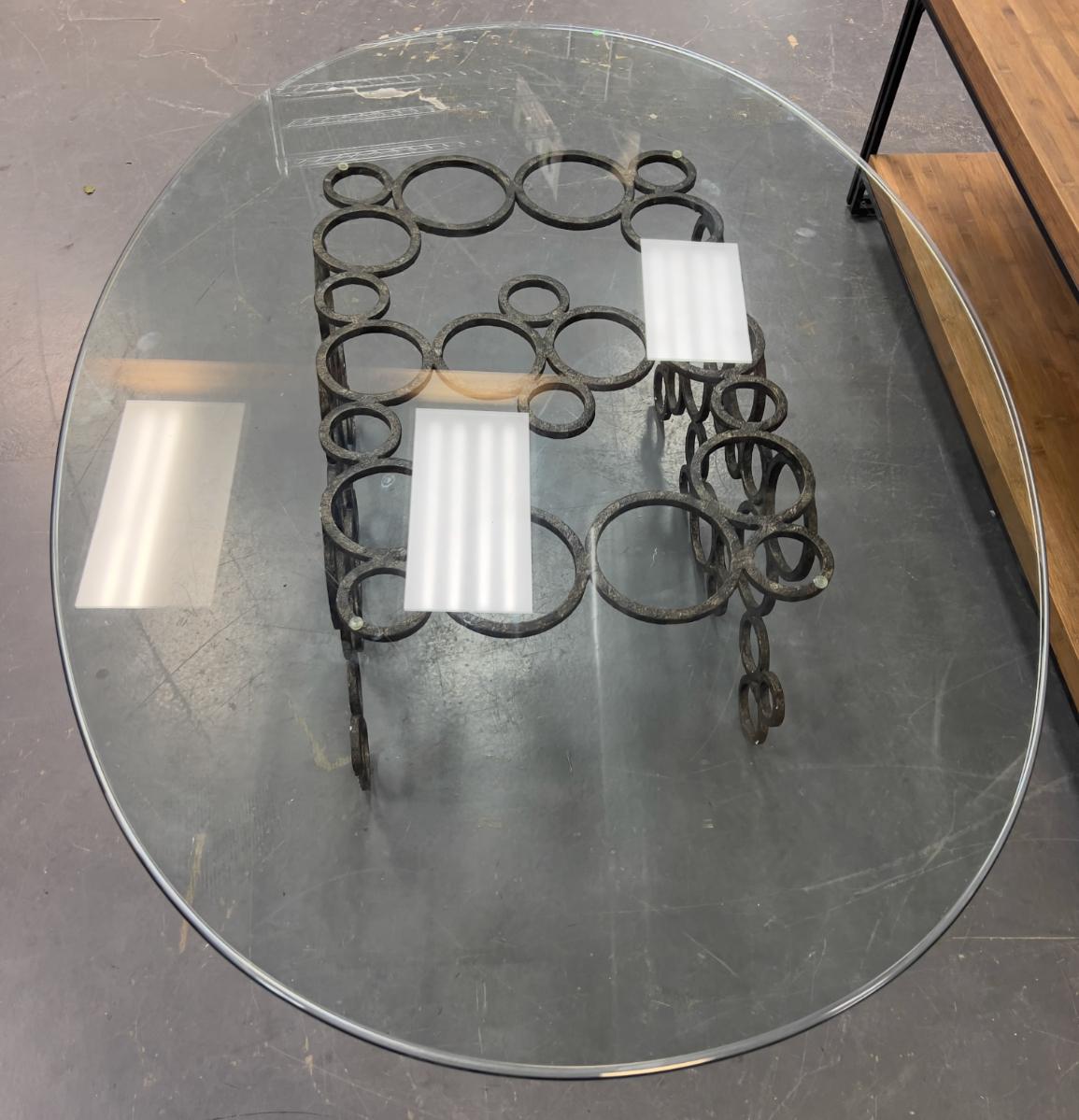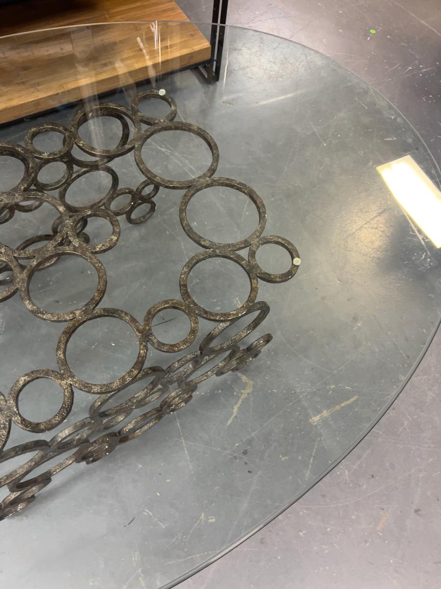 Used. Good Condition. Measures 58" X 38" X 16" Tall HEAVY!!! Bring 2 people to move the Glass.