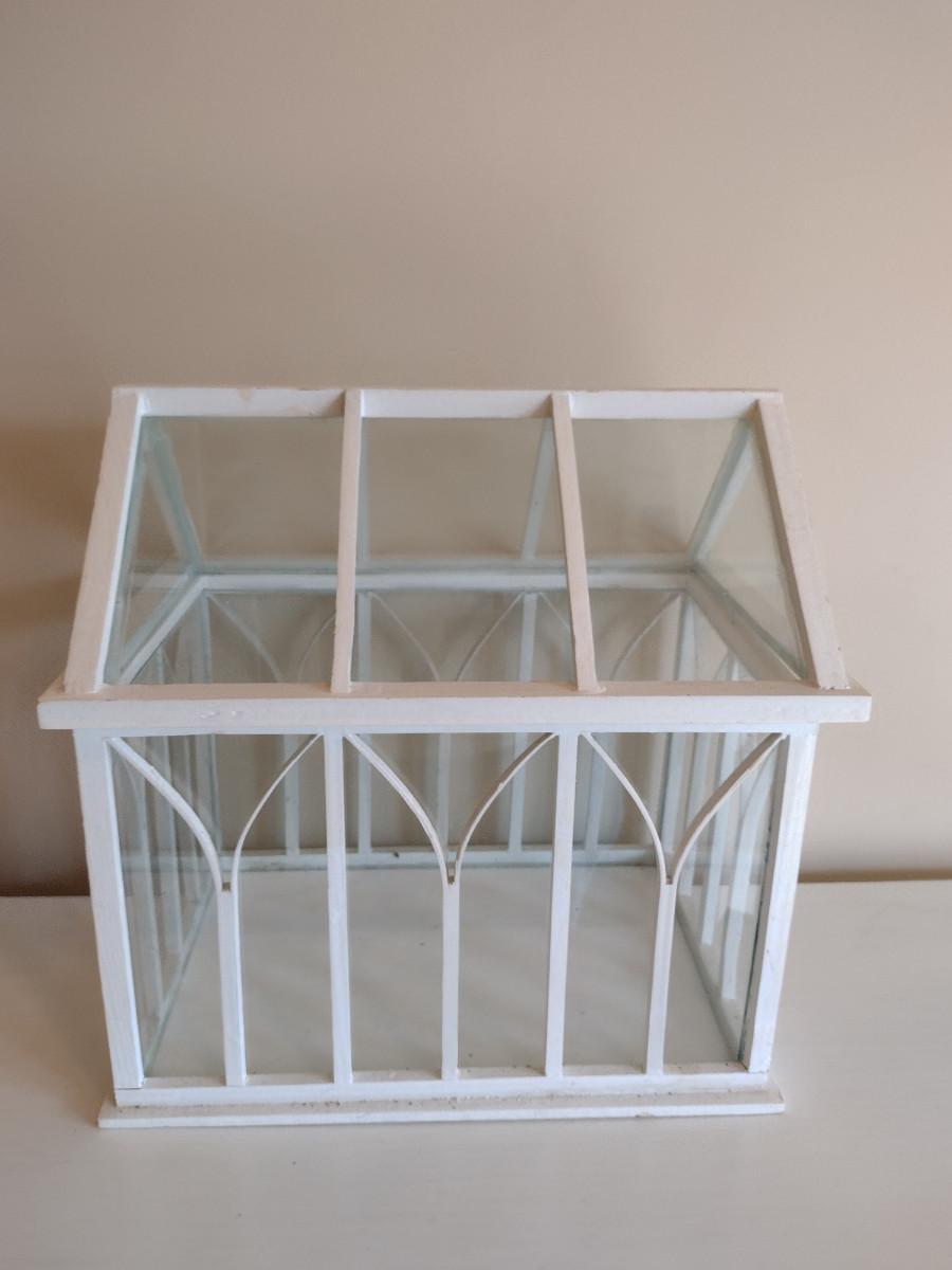 Glass and Wood Frame Terrarium- Approx 11 1/2" x 8" x 11 1/2" Tall (B)