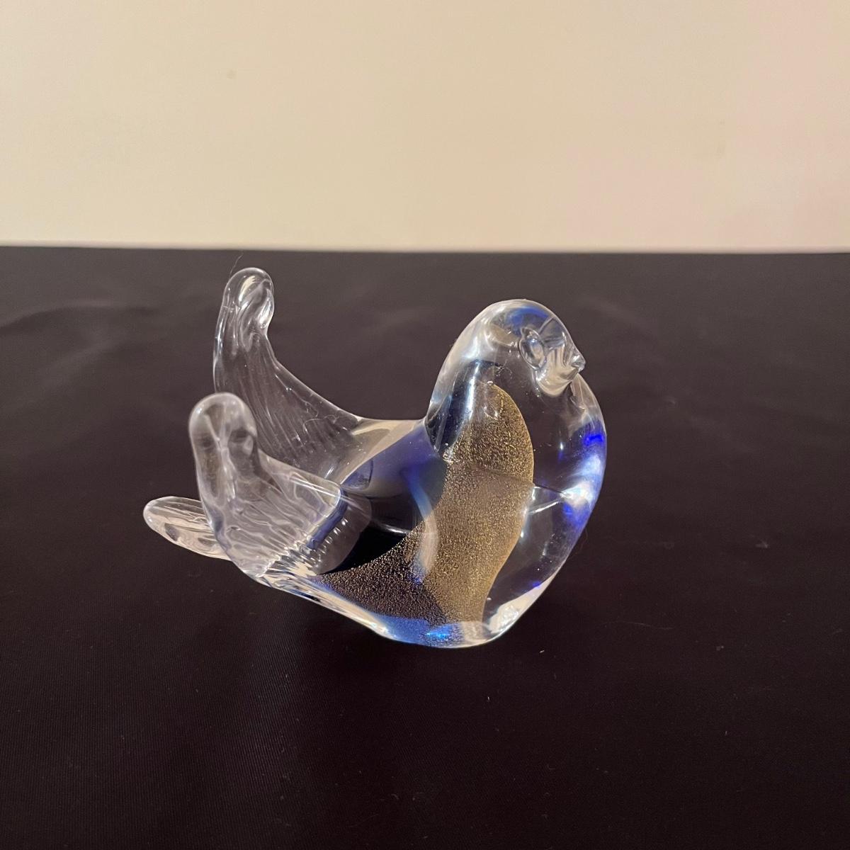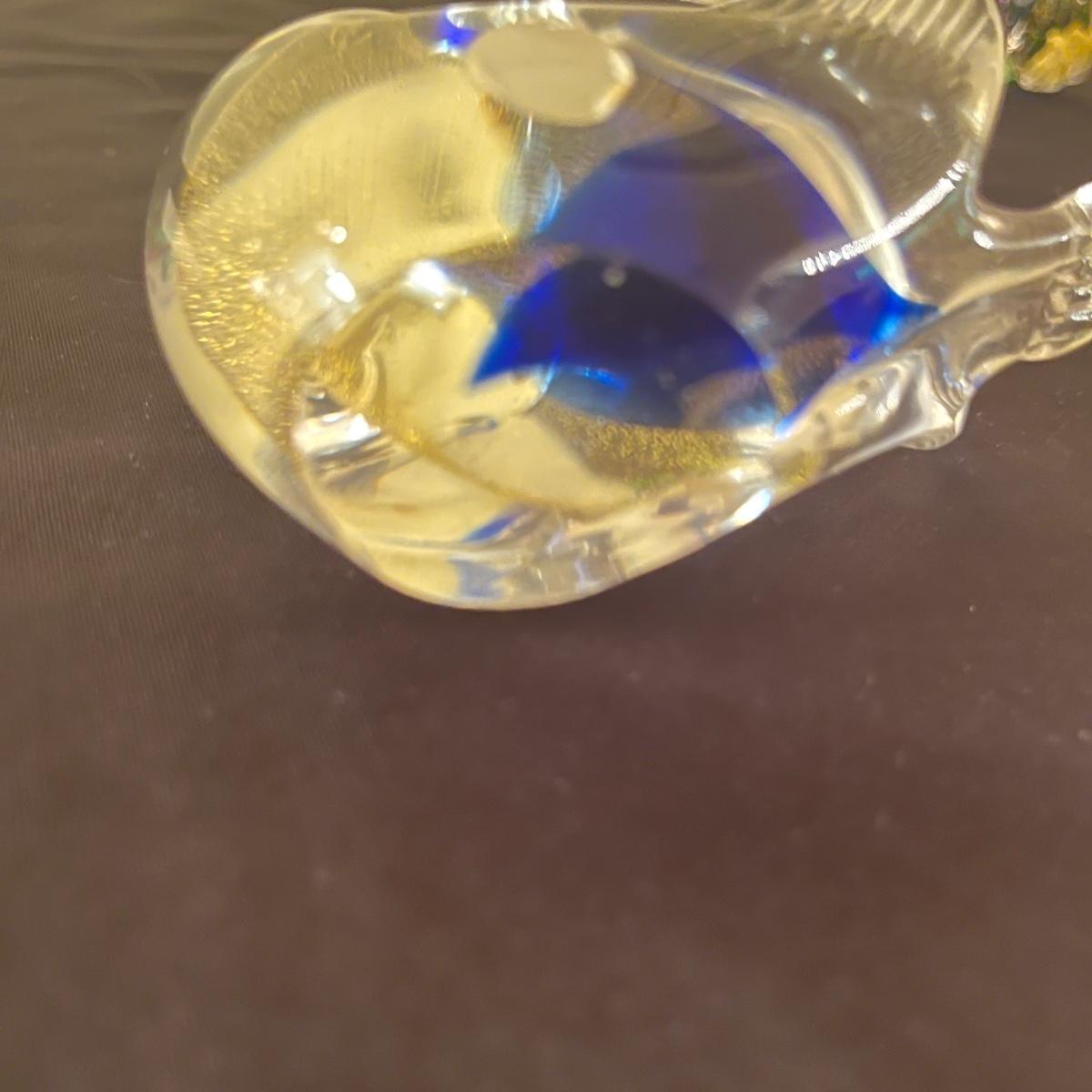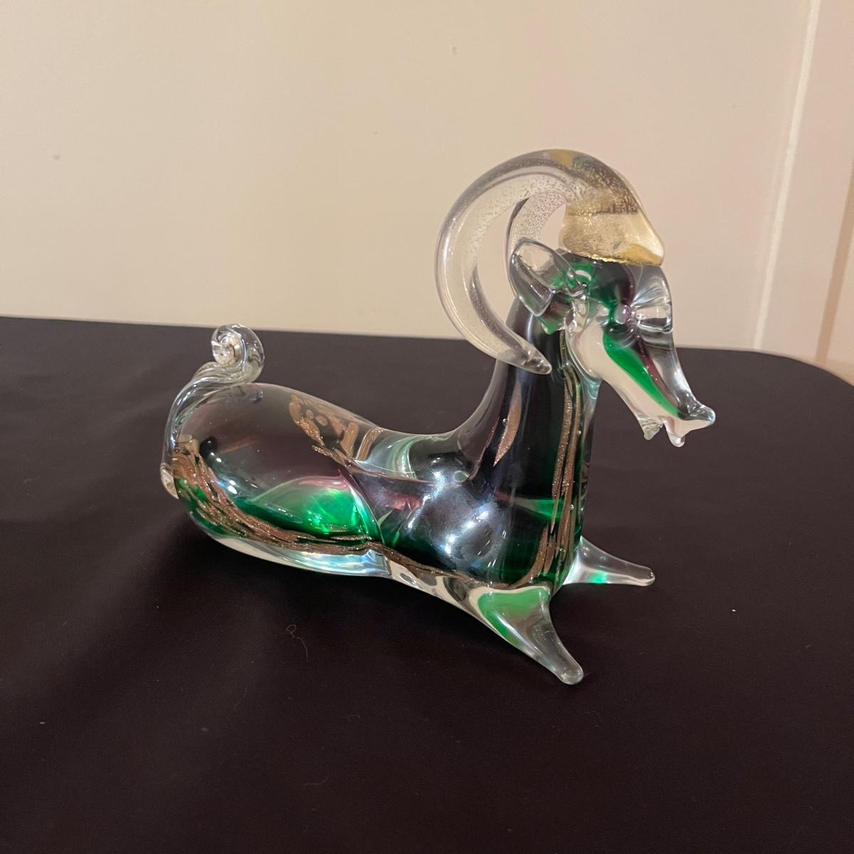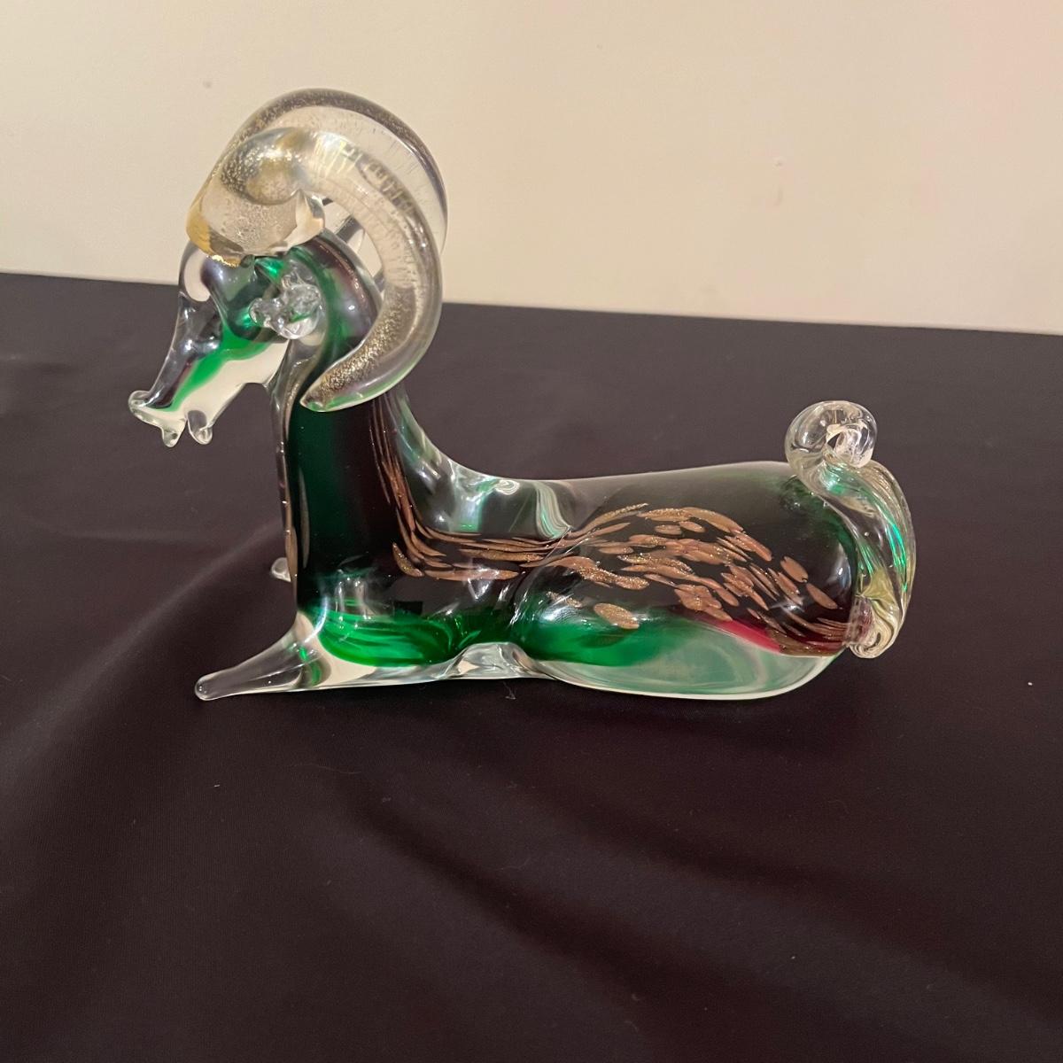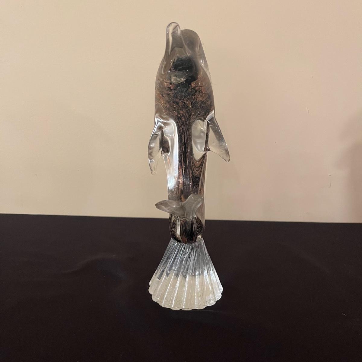 Lot includes a glass dolphin, glass goat and a glass bird. Animals have unique coloring inside. Dolphin measures 3” x 6.5” x 10”.