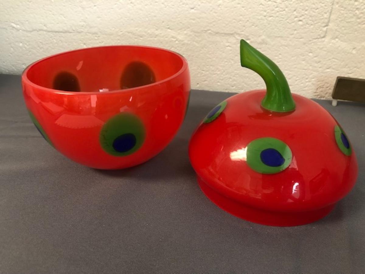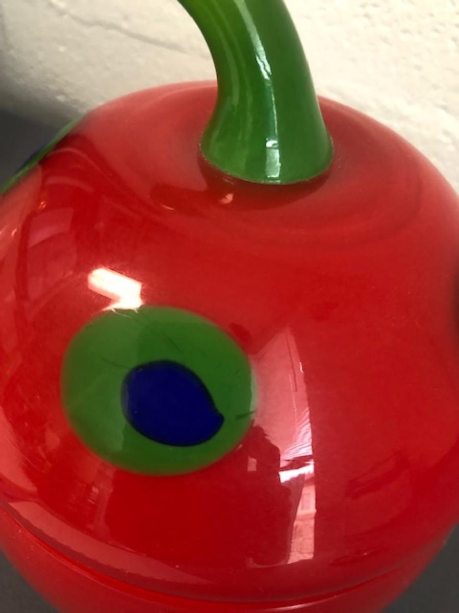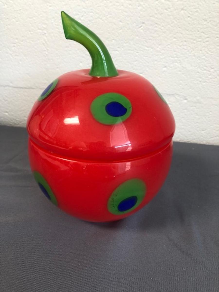 Large glass red apple with removable lid