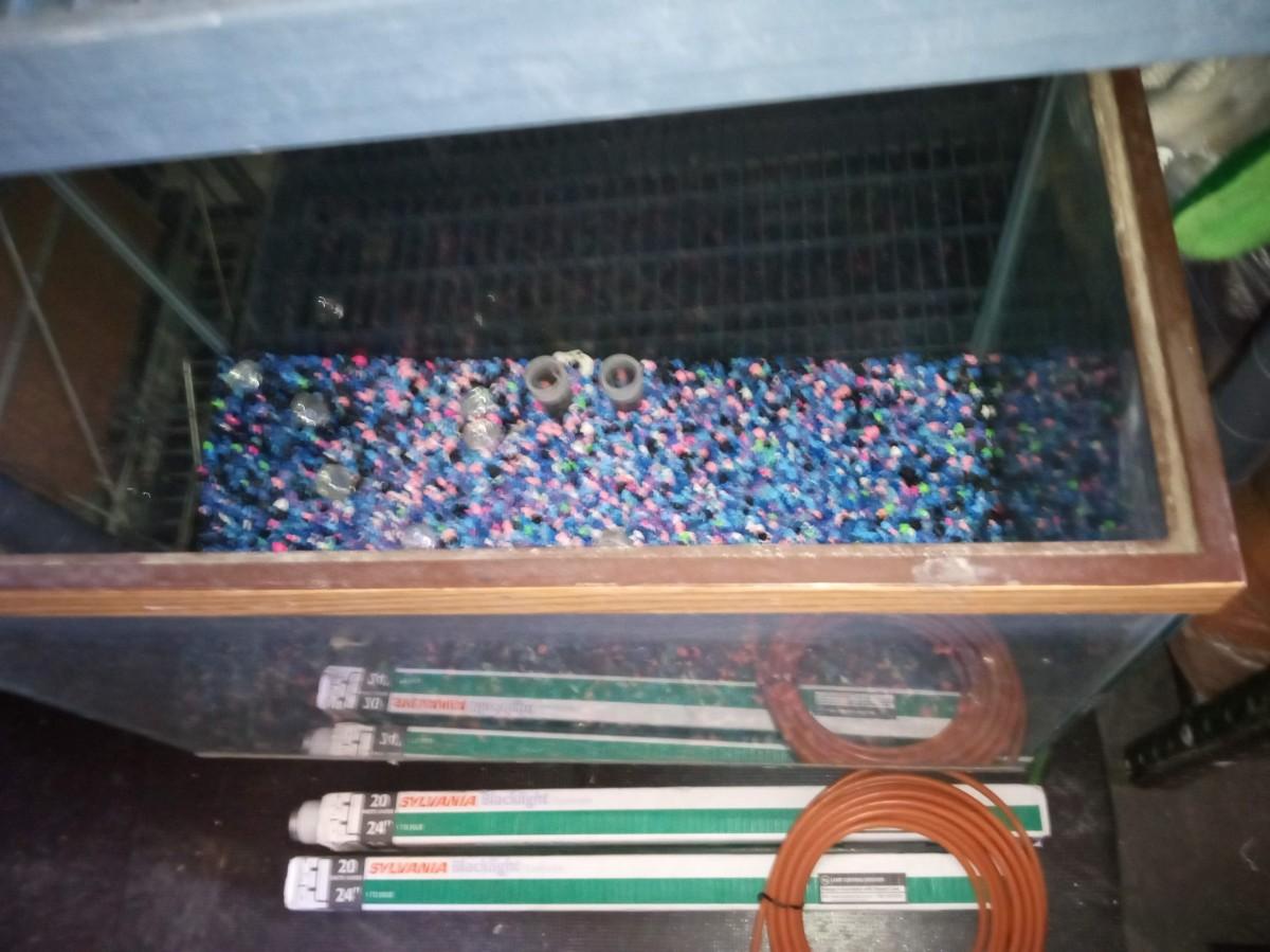 GLASS AQUARIUM, WATER PUMPS, BLACK LIGHTS AND HOSE