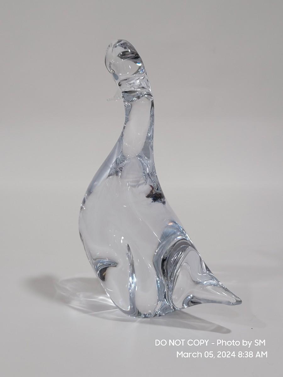 Large glass art, looks like a duckling / chick to me. Has minor surface scratches, no chips and I do not see any signature. It comes out of an estate of a major fashion executive in NYC and Europe (Paris to be specific), so I would assume it is something special and costly. It's on the heavy side.