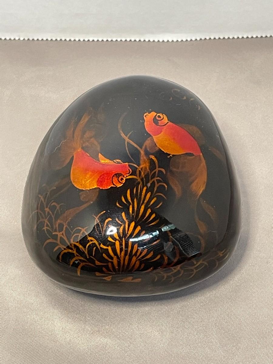 Glass Asian Inspired Paperweight with Painted Koi Fish