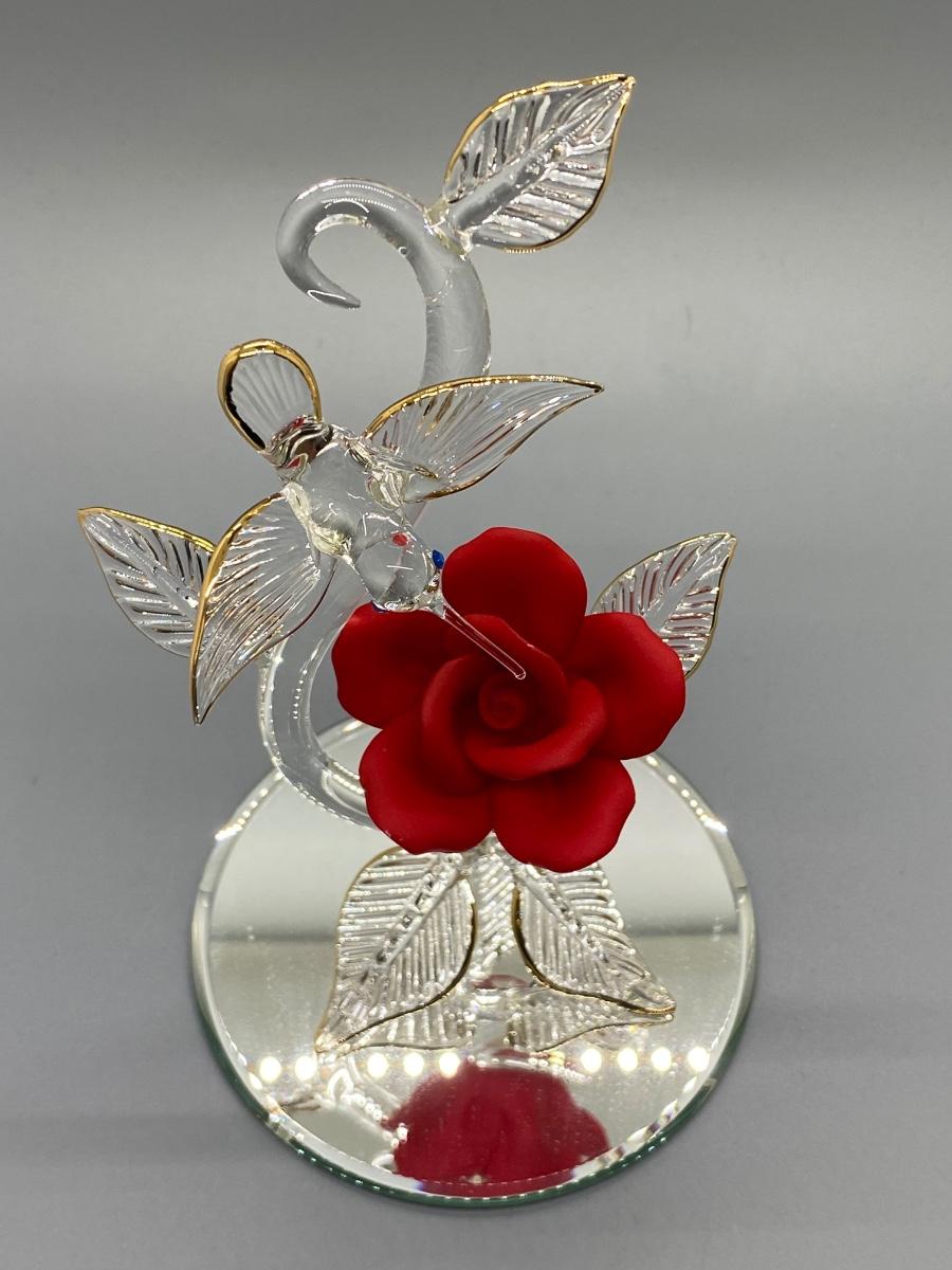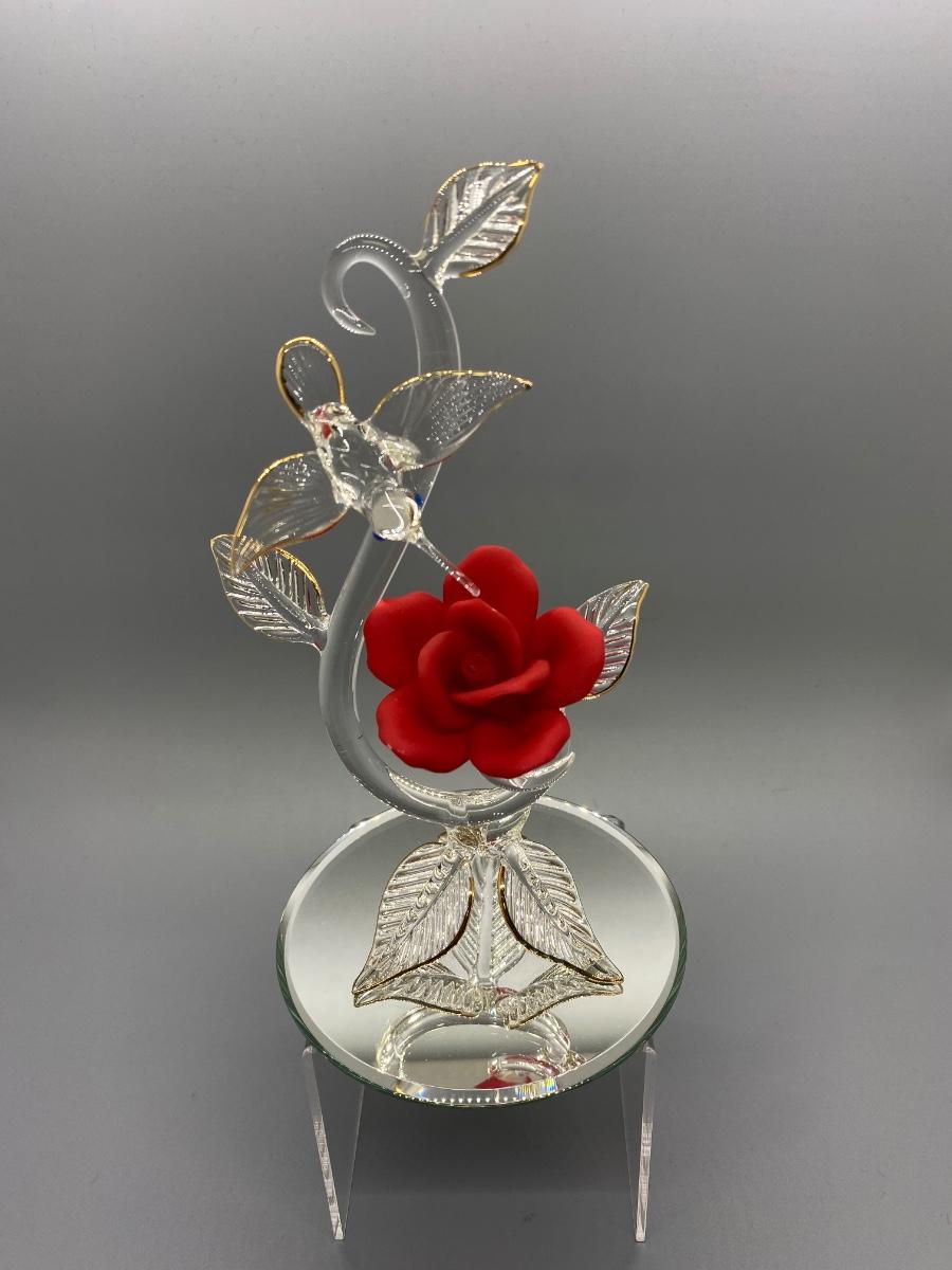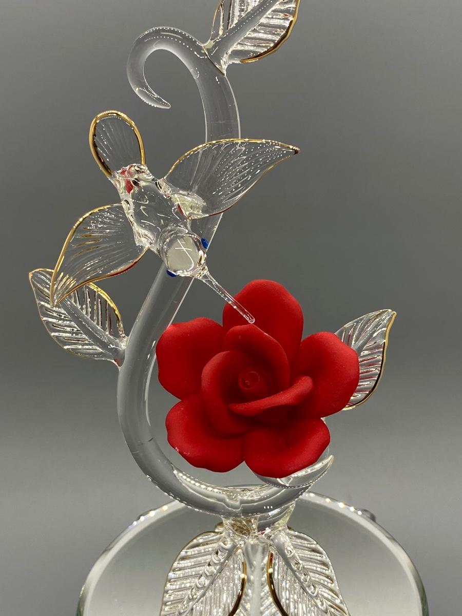 Glass Barn Blown Glass Hummingbird with Red Rose Figurine