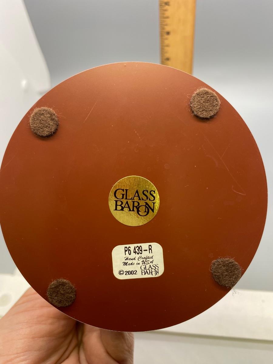 Glass Barn Blown Glass Hummingbird with Red Rose Figurine. In good condition. Hummingbird and leaves have a gold edge with a bright red rose. About 6" size.