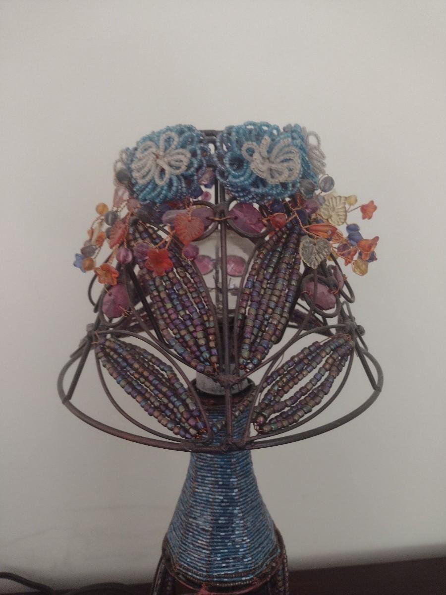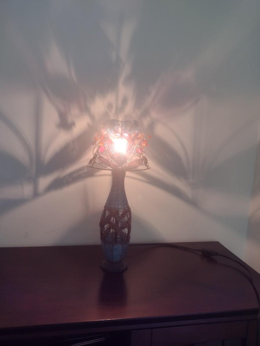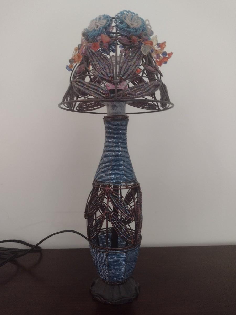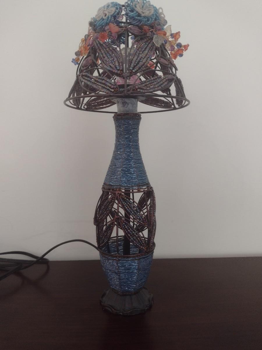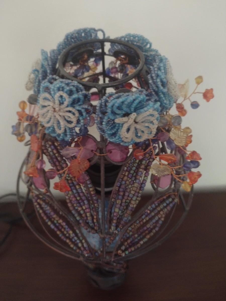Glass Beaded and Metal Wire Floral Design Table Lamp