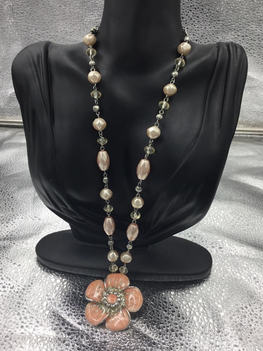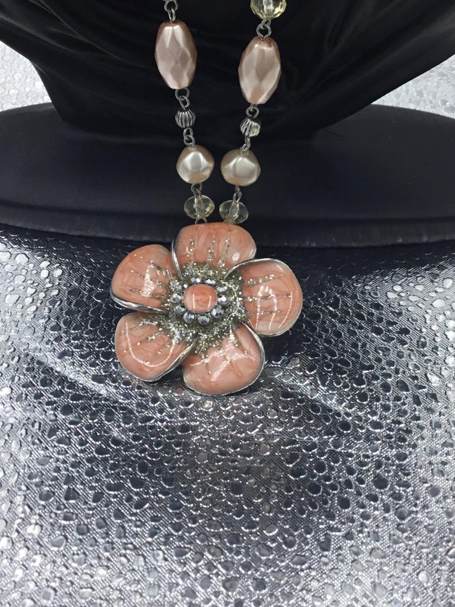 Glass beaded flower pendant necklace