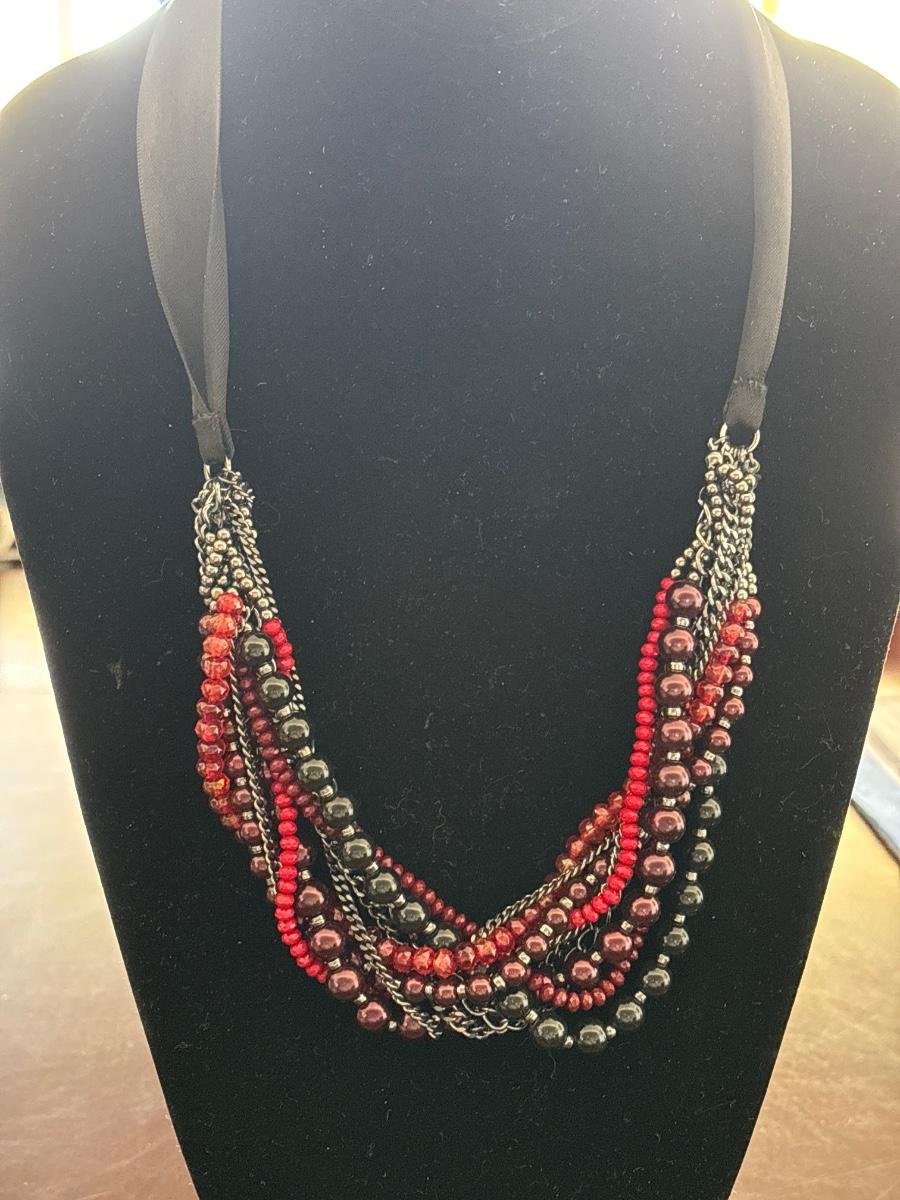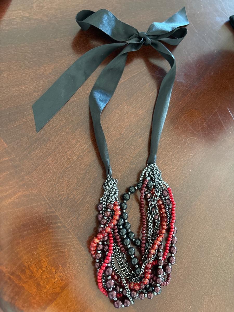 Glass beaded necklace with Silk ribbon tie