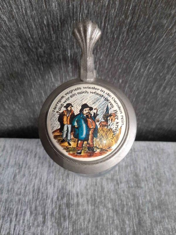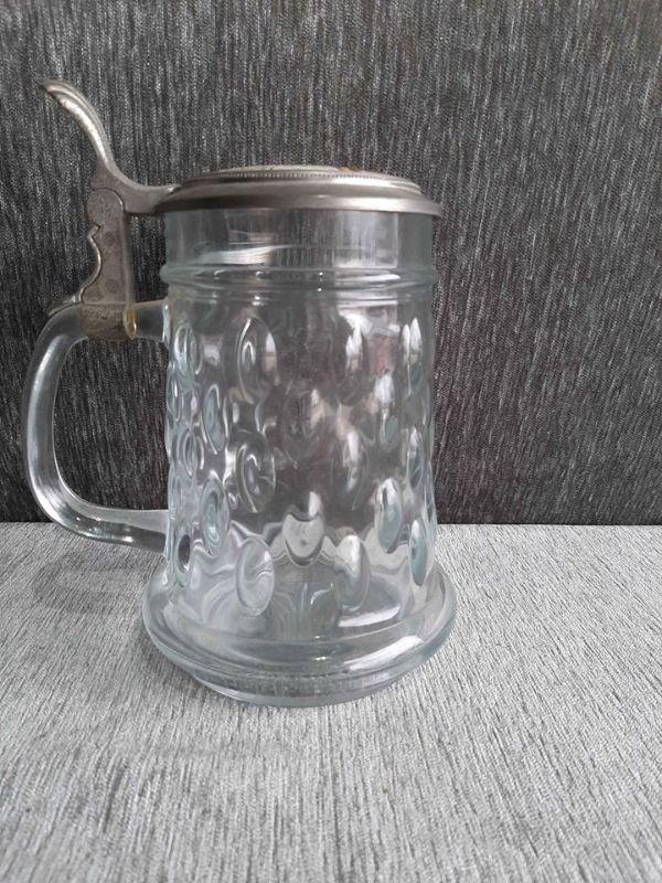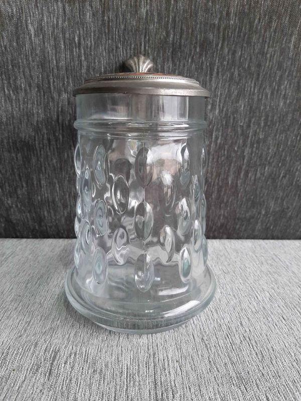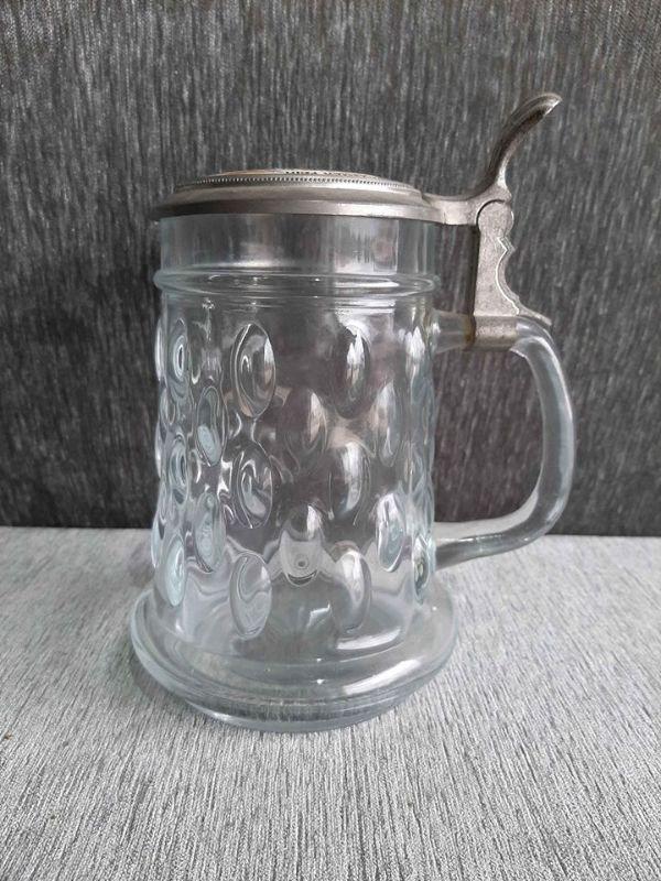 Vintage Pre-owned Glass Beer Stein with Pewter Lid