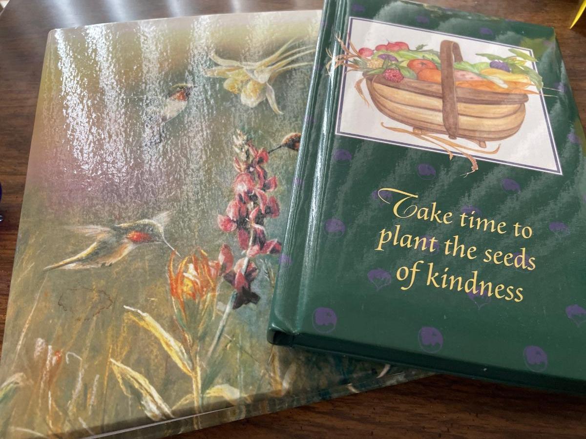 Miniturr glass birds and books
