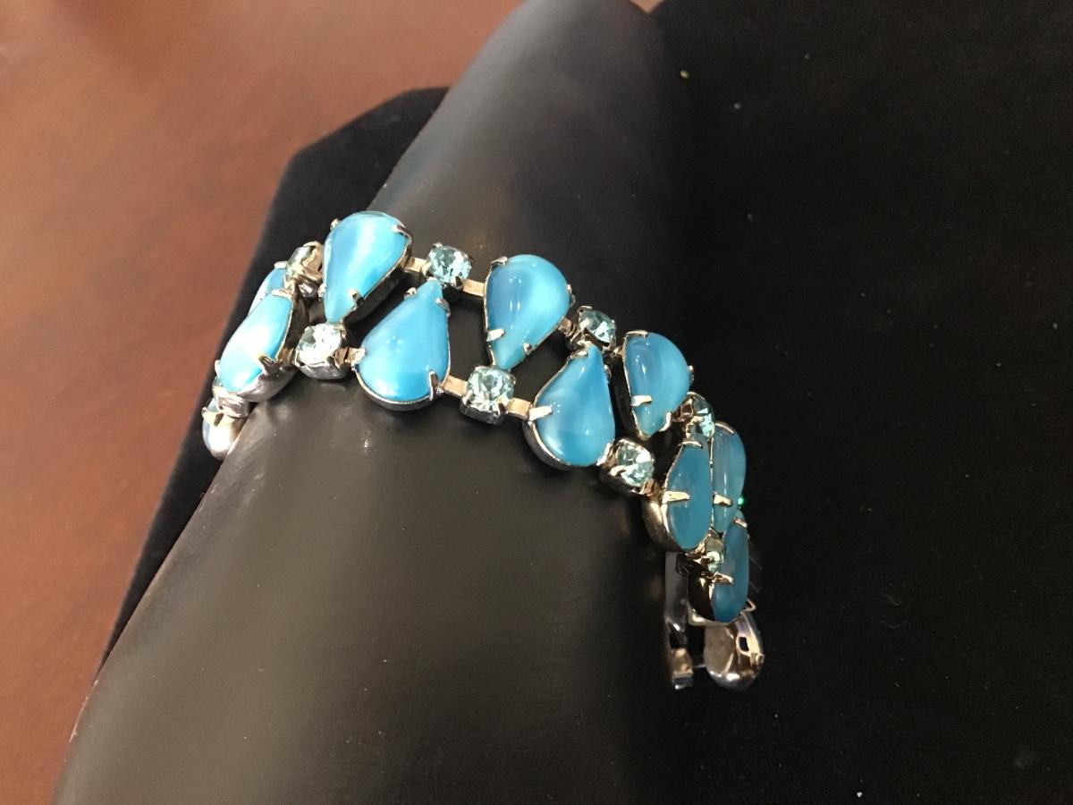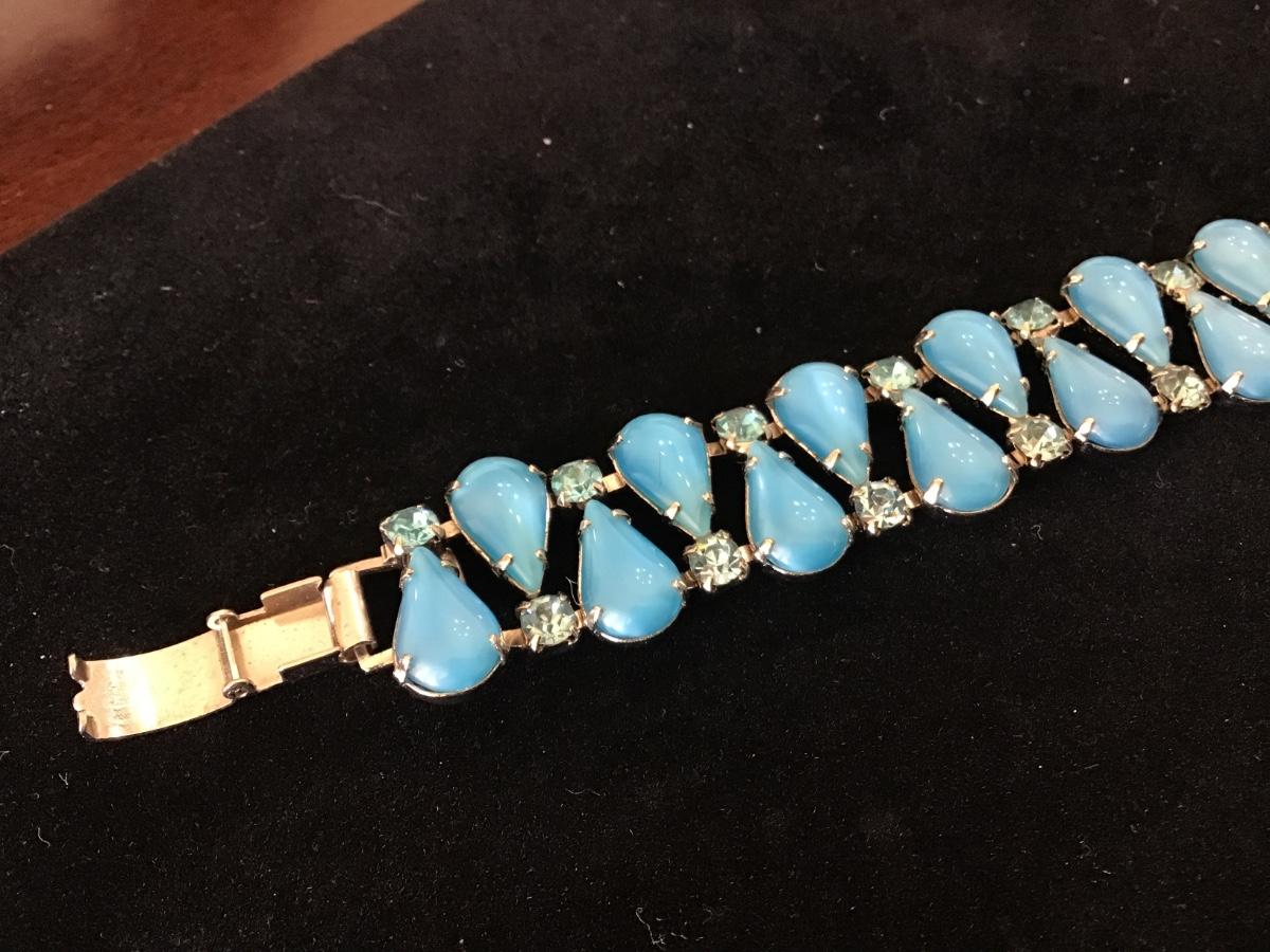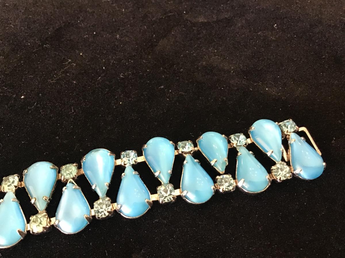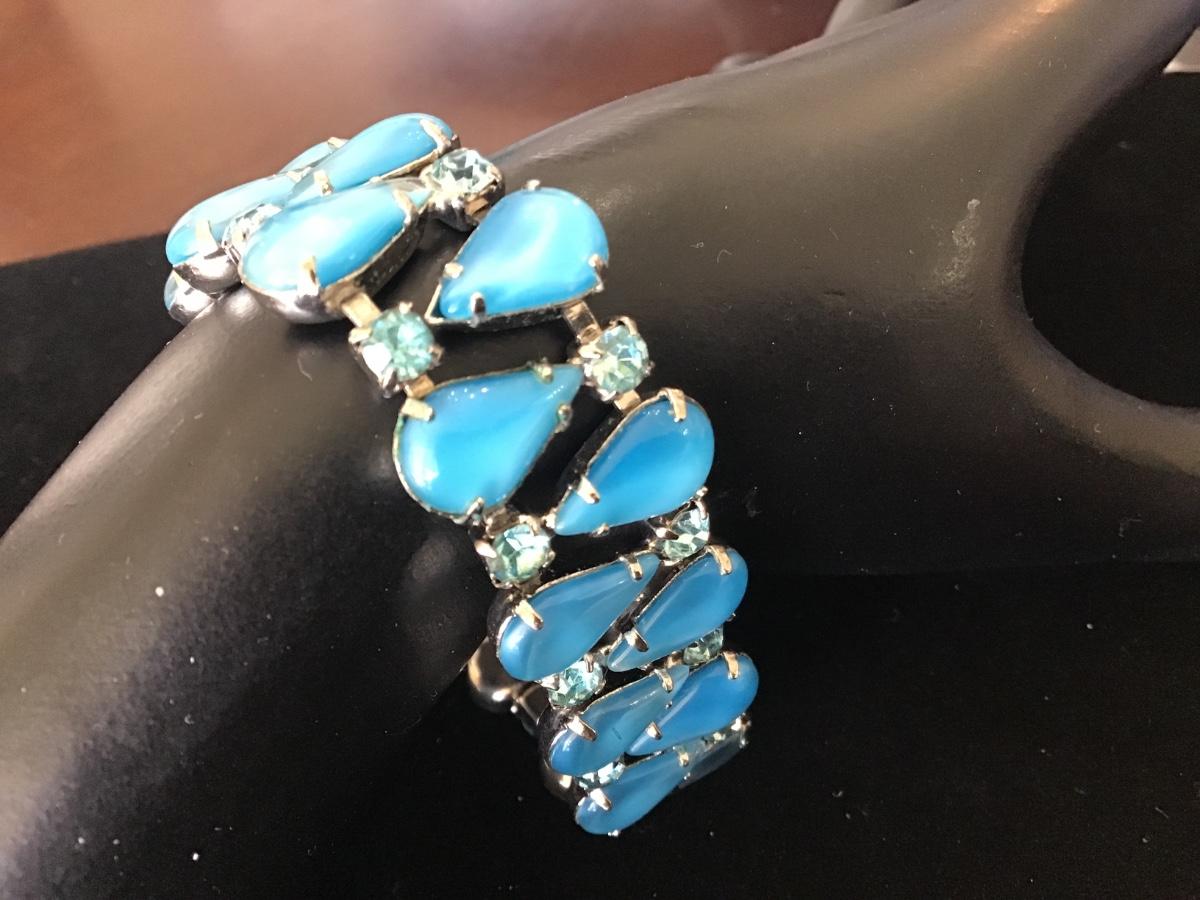 Glass Blue With Baby Blue Rhinestones Locking Vintage