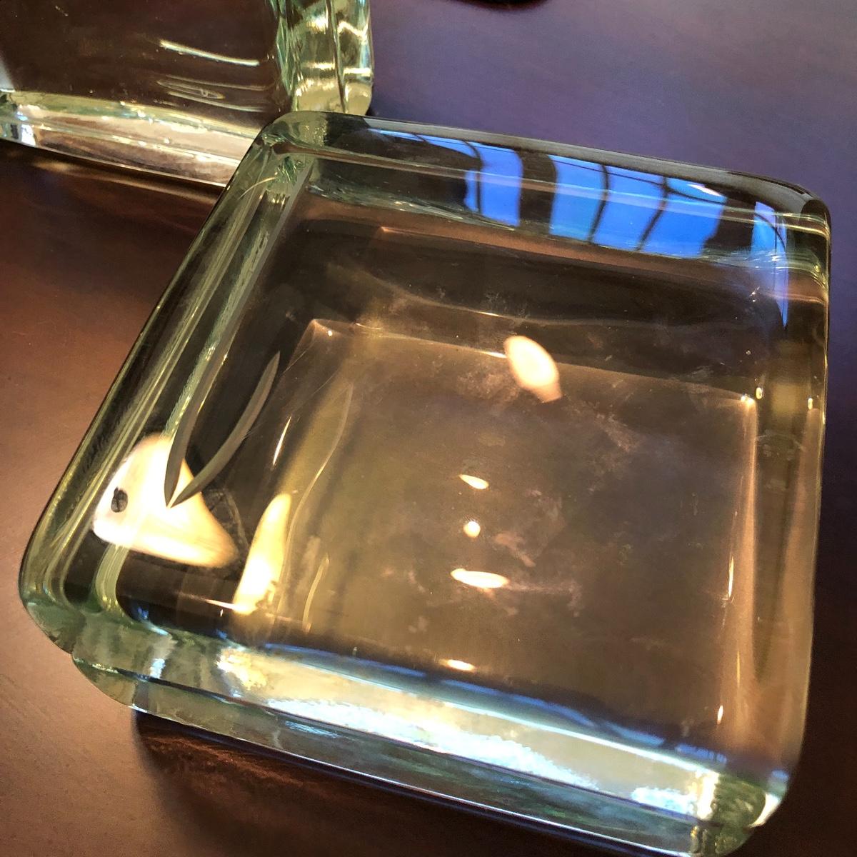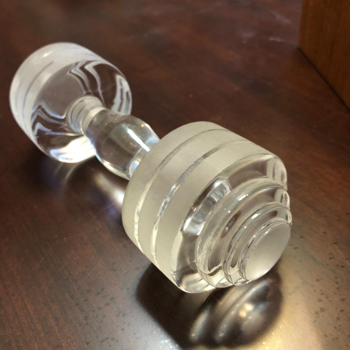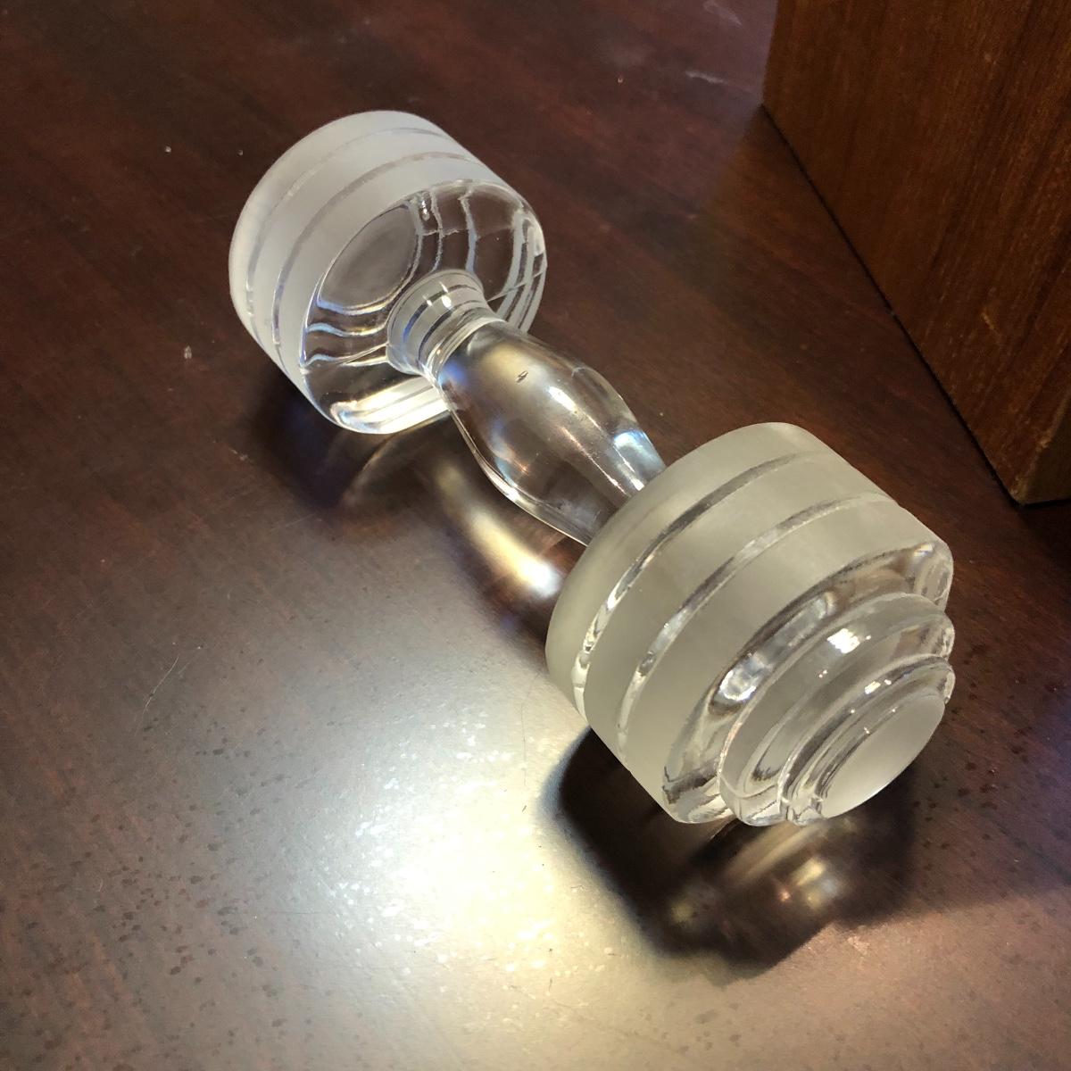 This lot includes four bookends (three of which are glass) and a glass barbell paperweight. Glass block bookends measures 5” x 5”. The wooden bookend filled with sand measures 6” x 7”. The barbell paperweight is 6” long. Shipping Available.