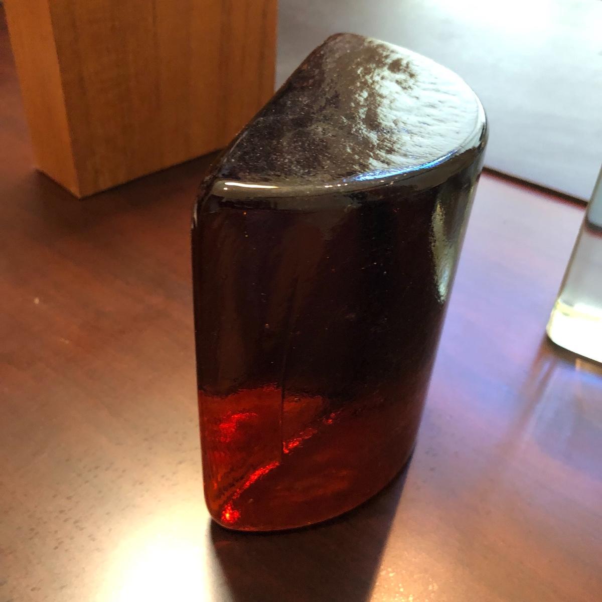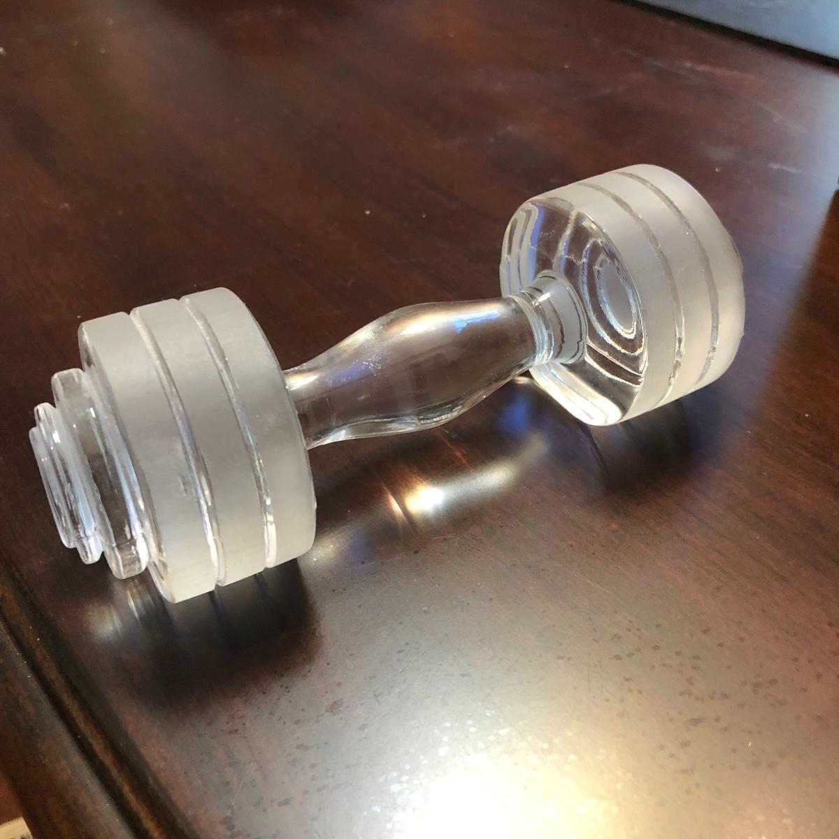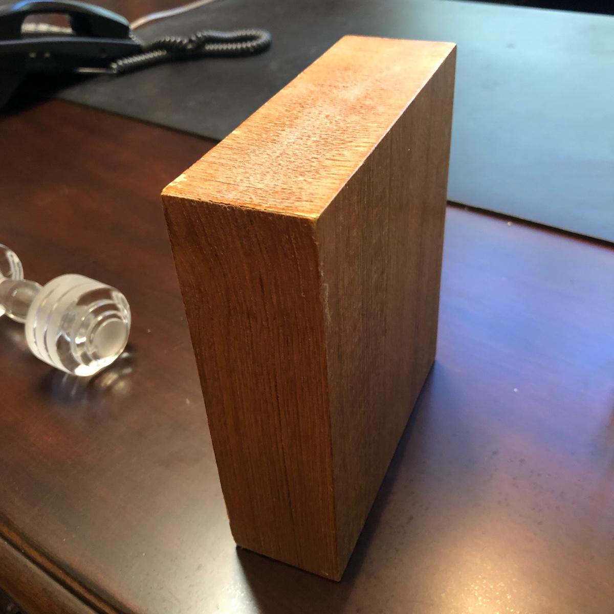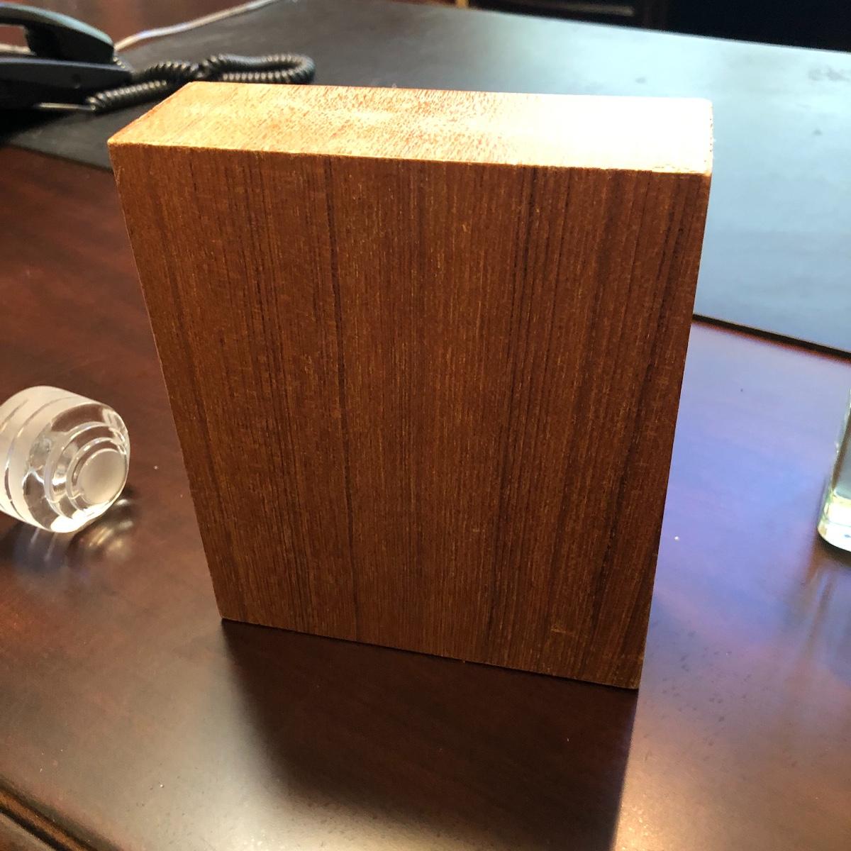 This lot includes four bookends (three of which are glass) and a glass barbell paperweight. Glass block bookends measures 5” x 5”. The wooden bookend filled with sand measures 6” x 7”. The barbell paperweight is 6” long. Shipping Available.