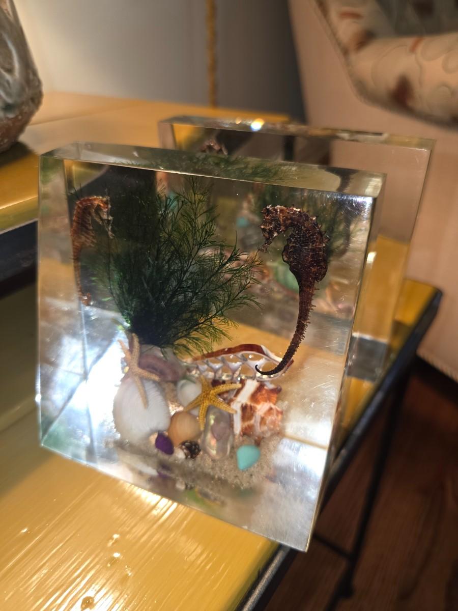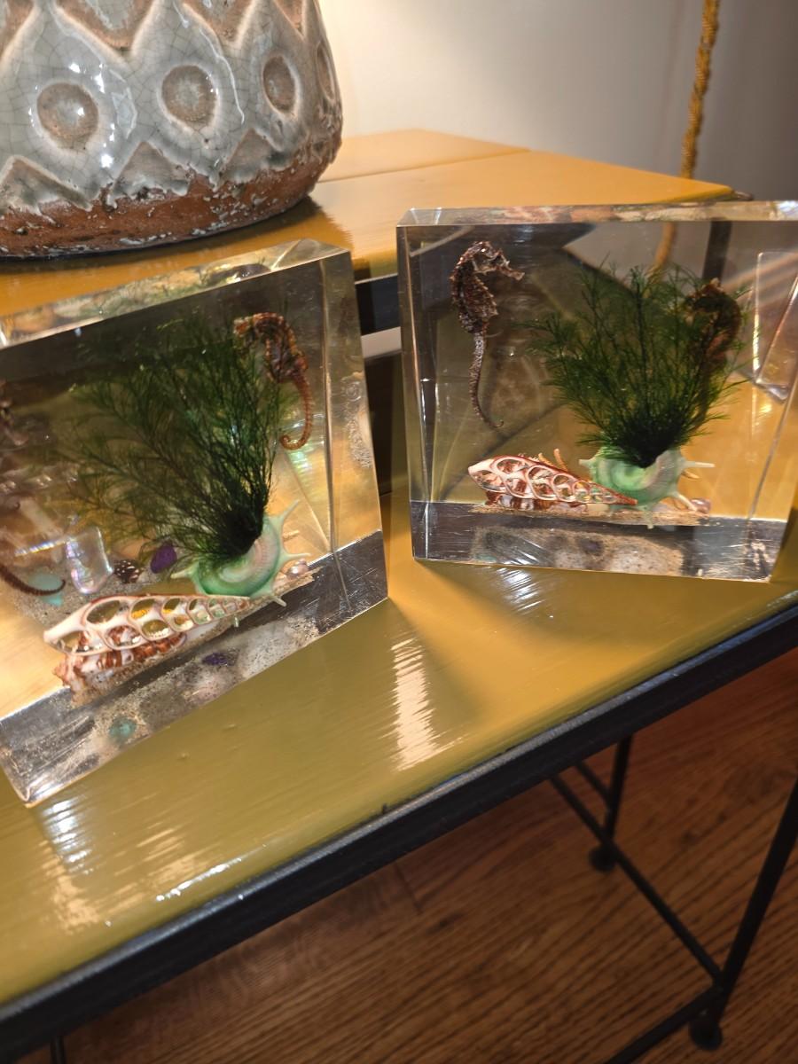 Vintage Lucite Ocean Themed Bookends