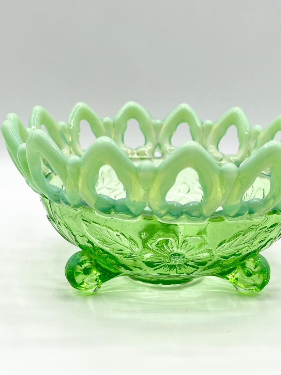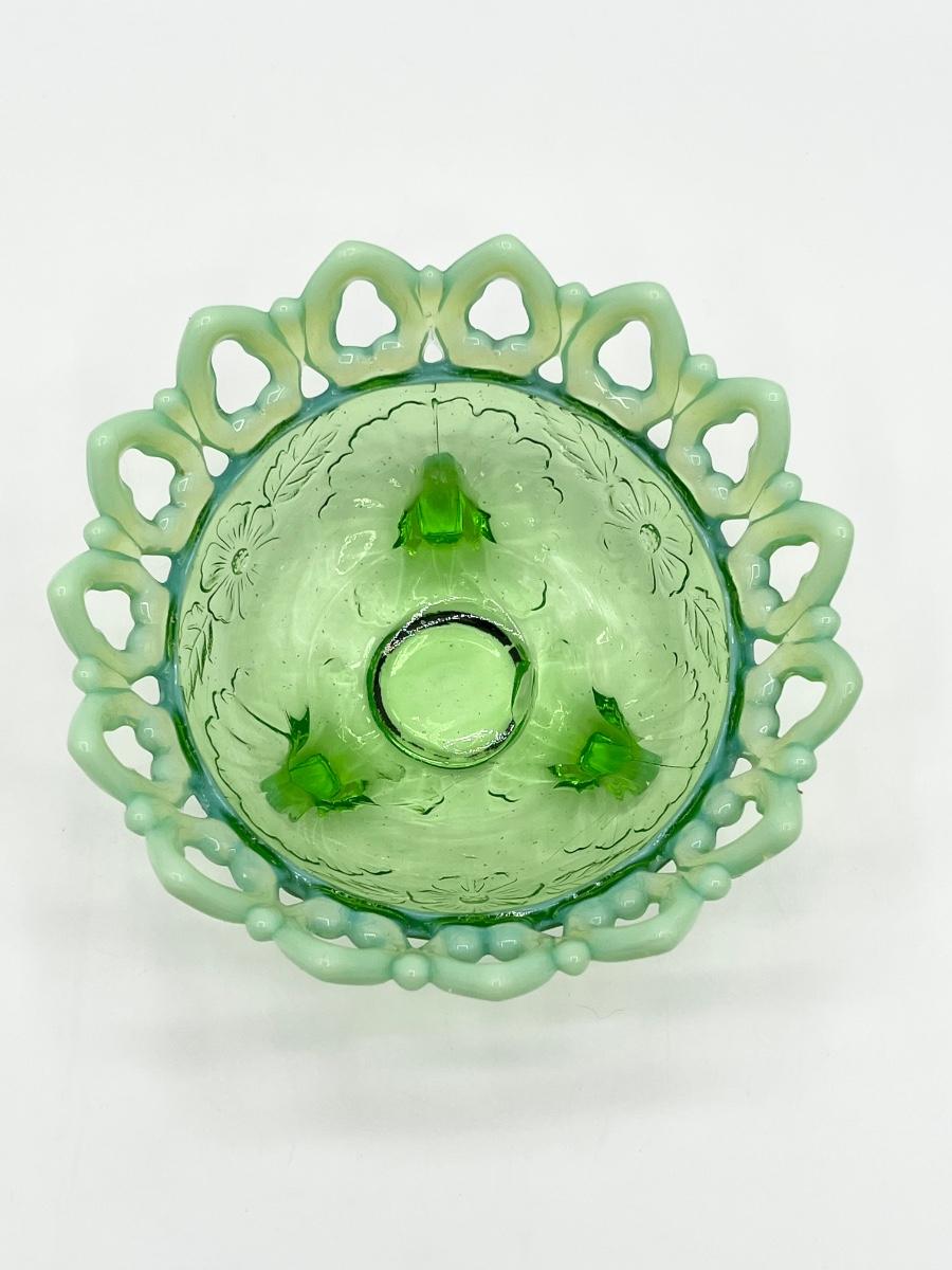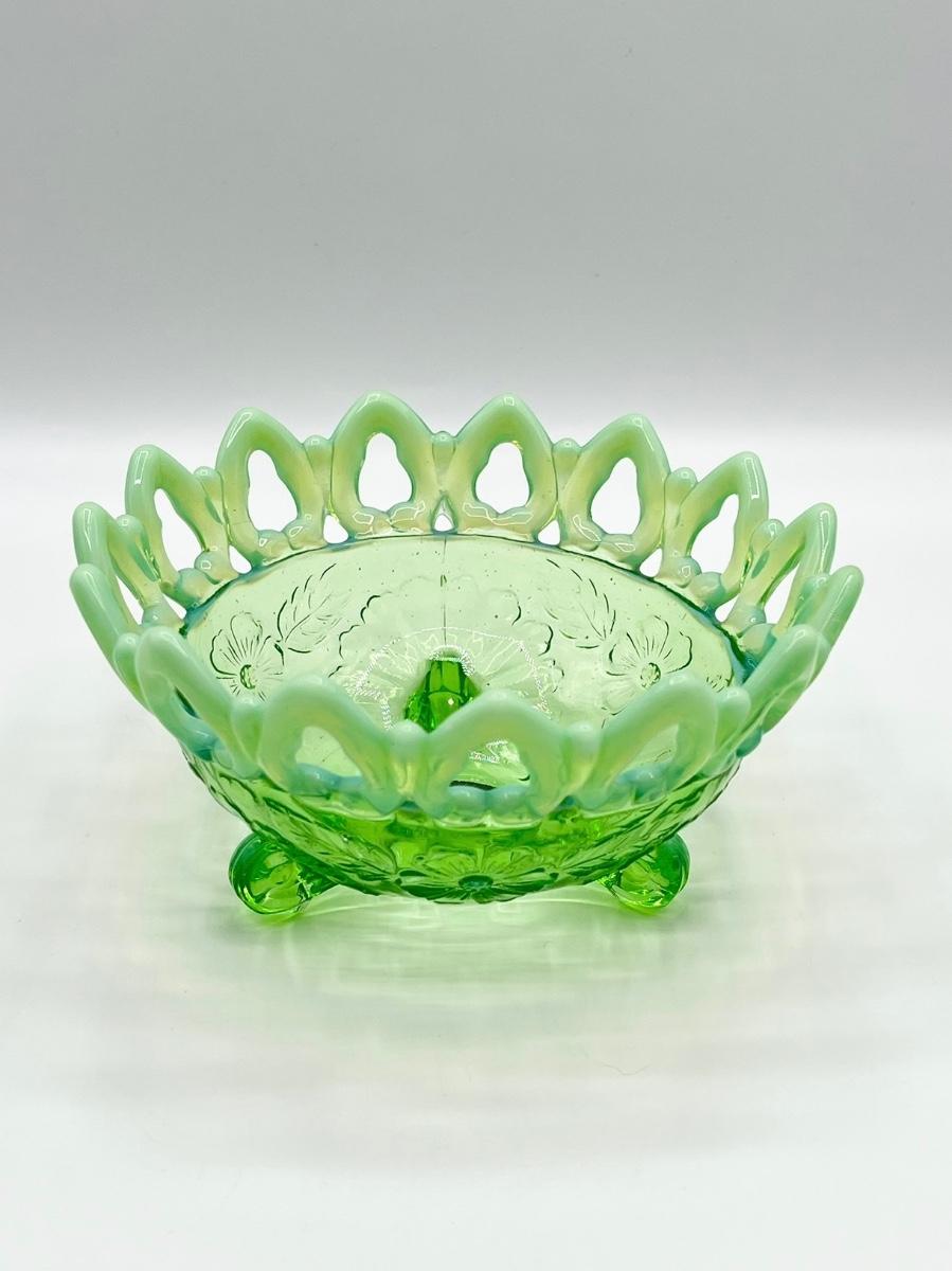 NORTHWOOD ~ Shell and Wild Rose Green Opalescent Glass Bowl