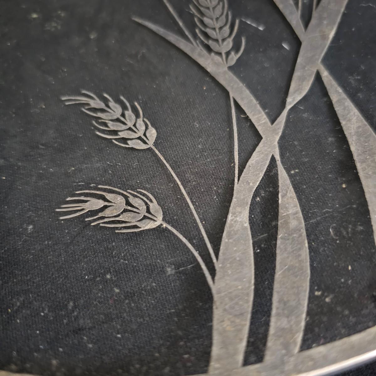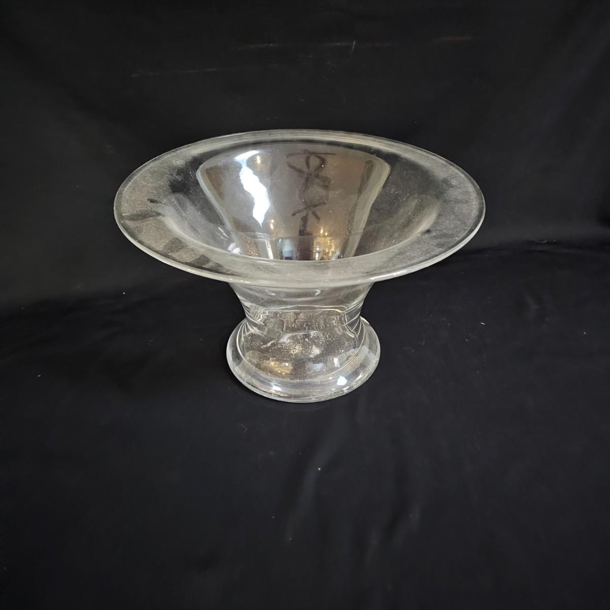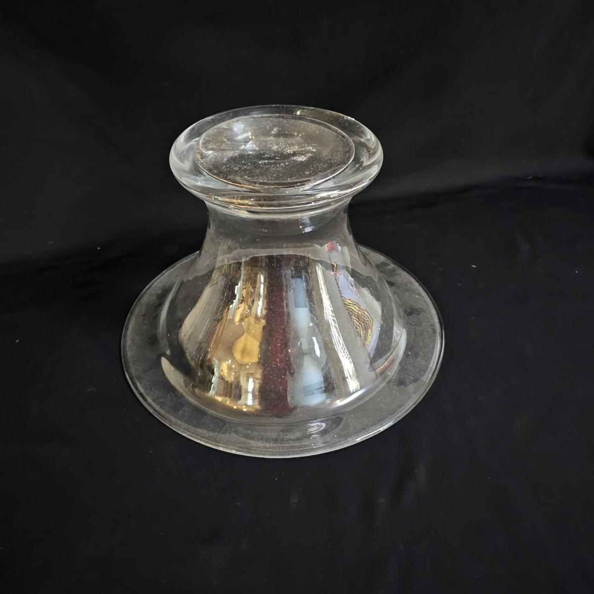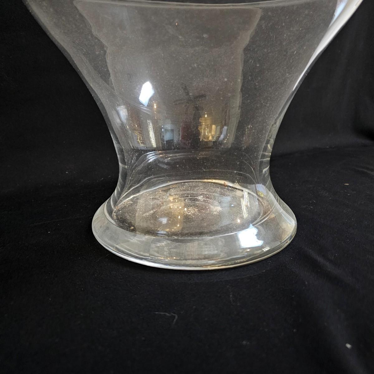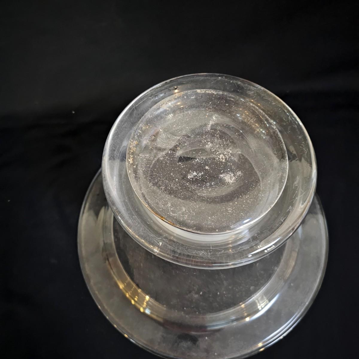 Two large round glass plates and one tall pedestal bowl. Large plate is 15" D, leaf plate is 13.5" D and the pedestal is 14.5" x 9"H. See photos for details. Shipping available.