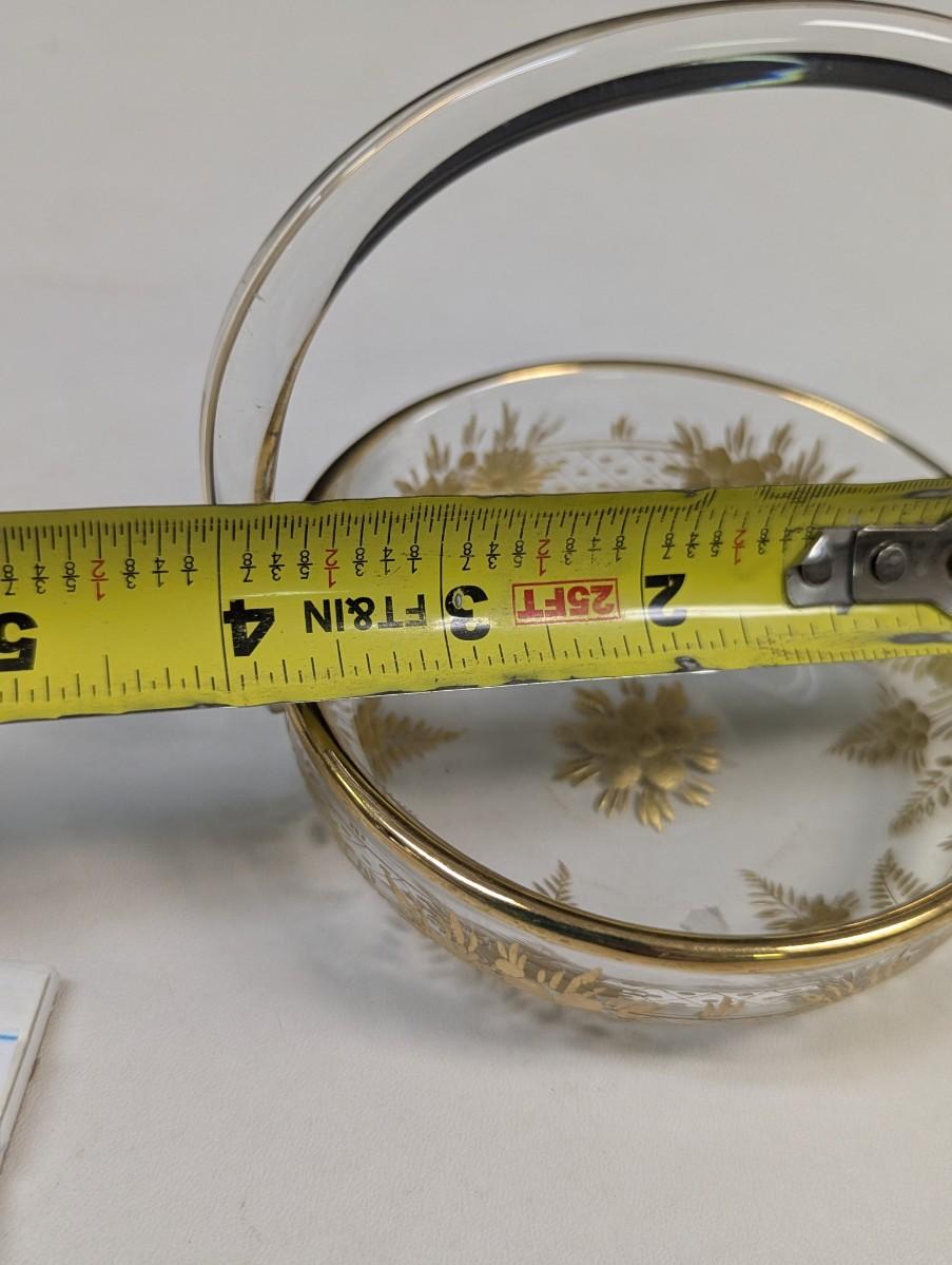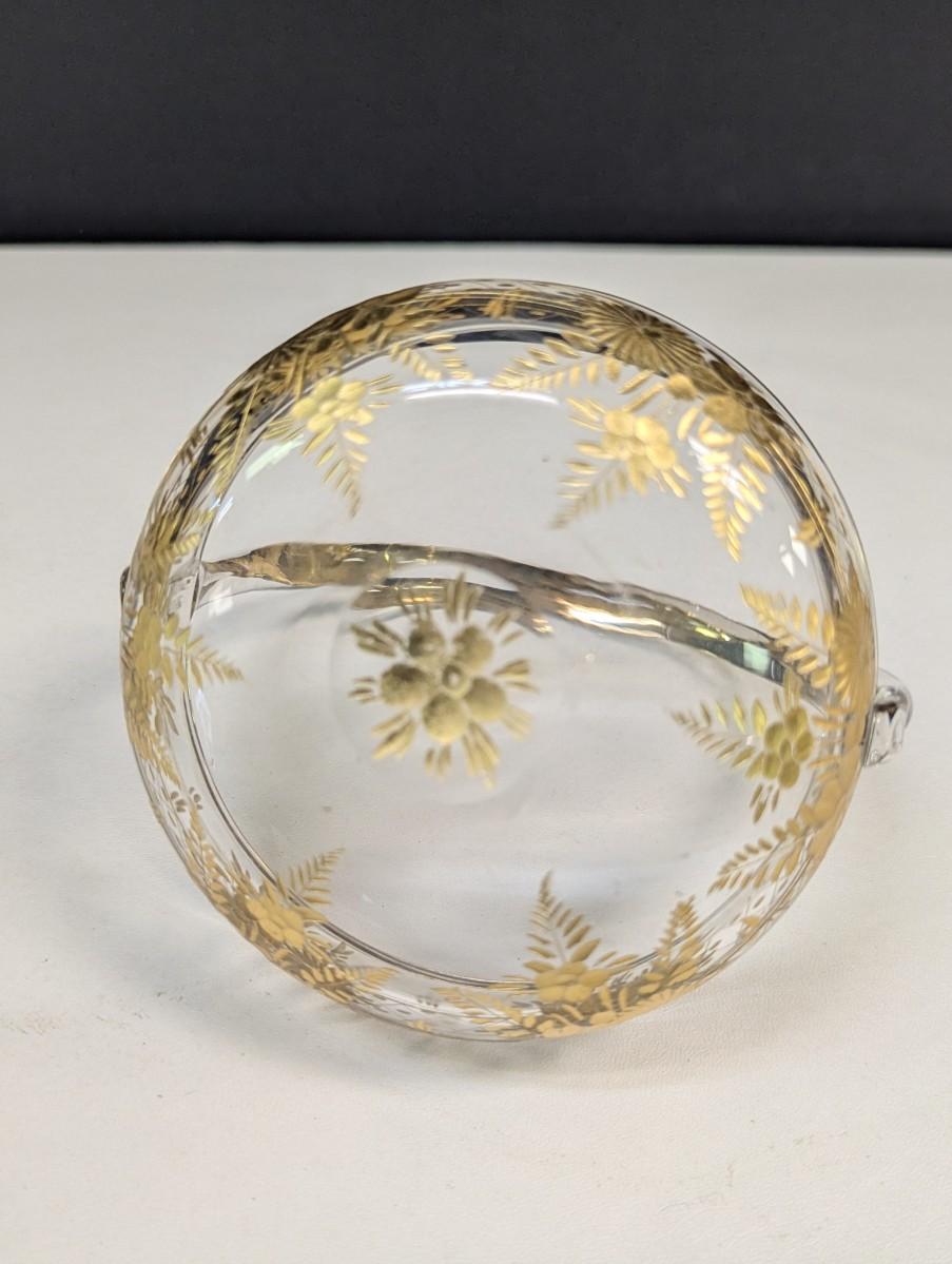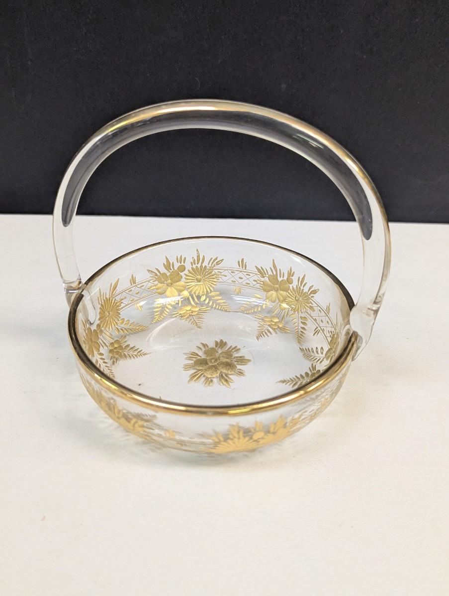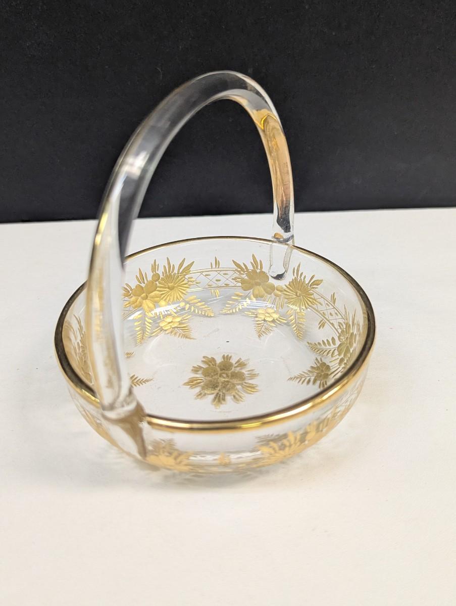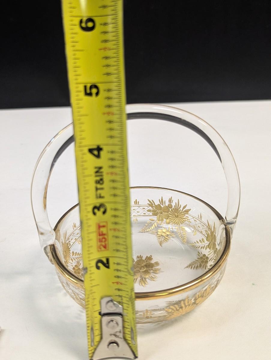 4" Moser glass dish with gold trim and handle