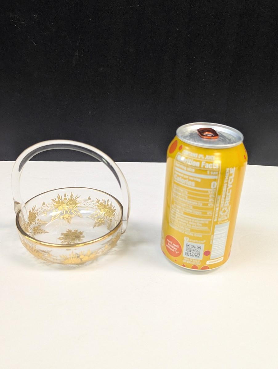 4" Moser Glass Dish With Gold Trim & Handle